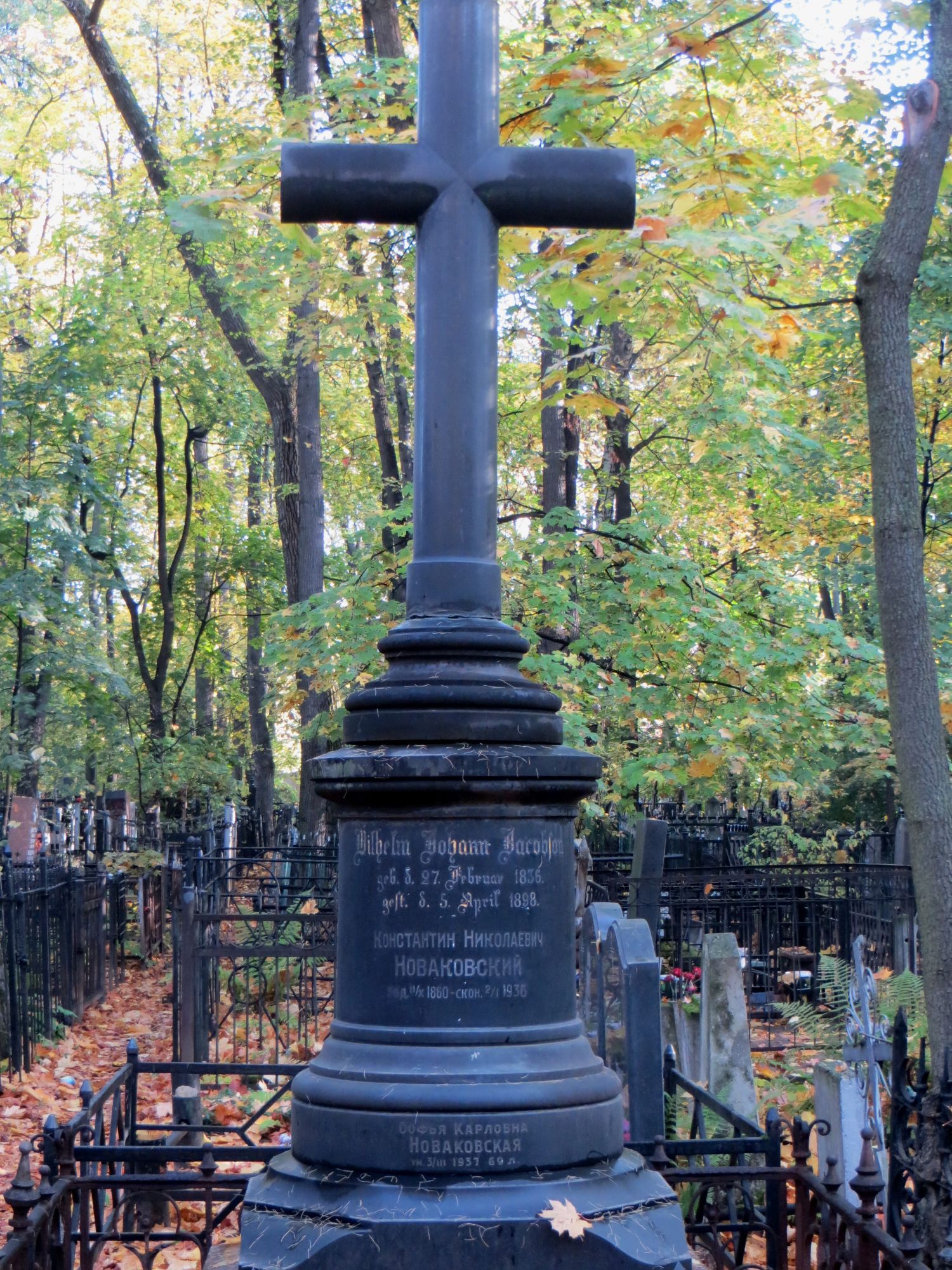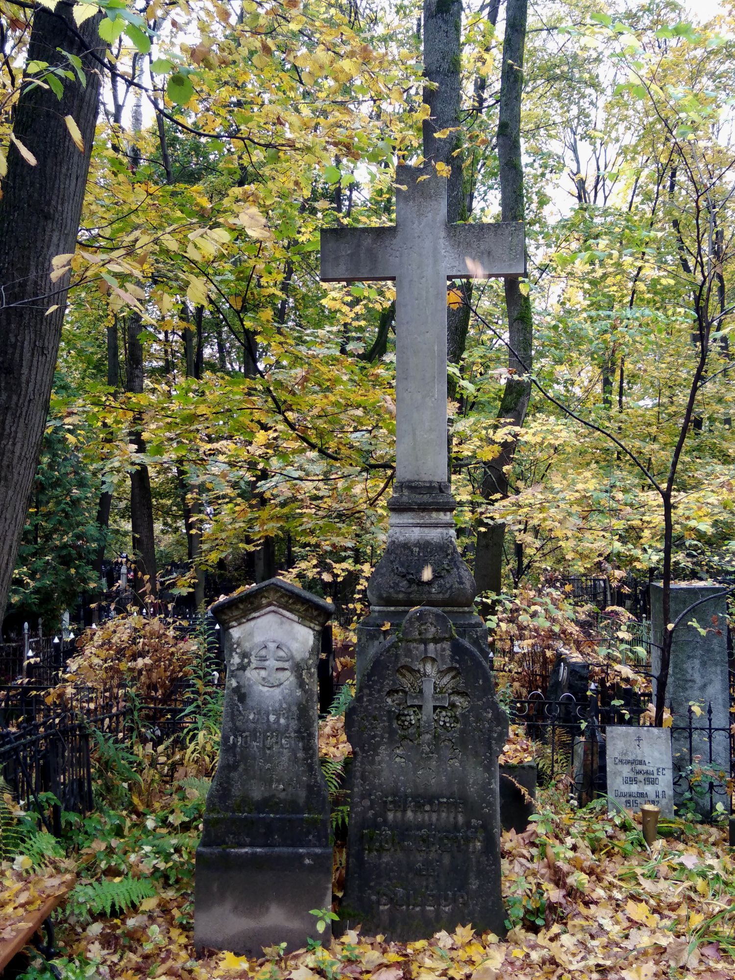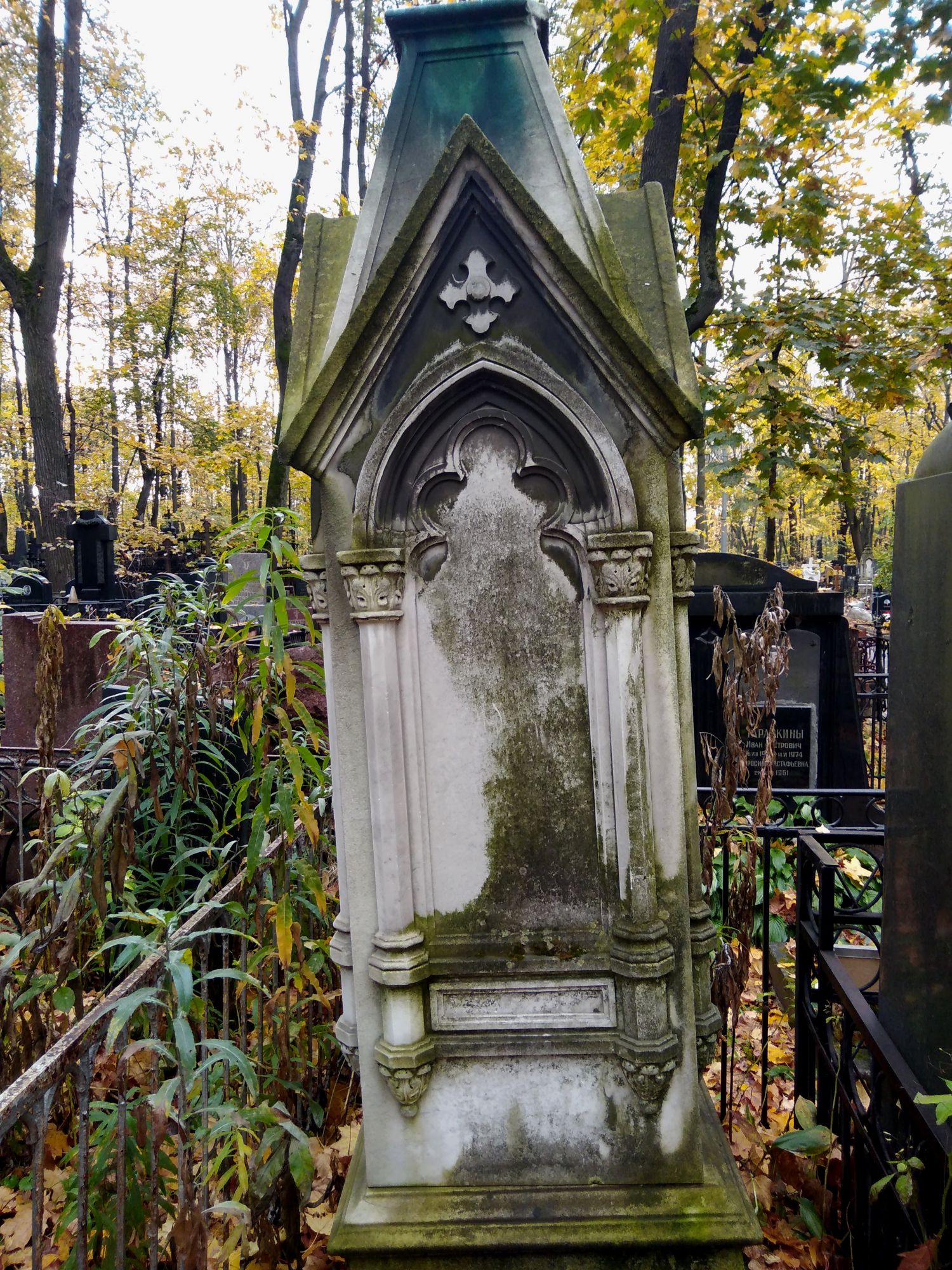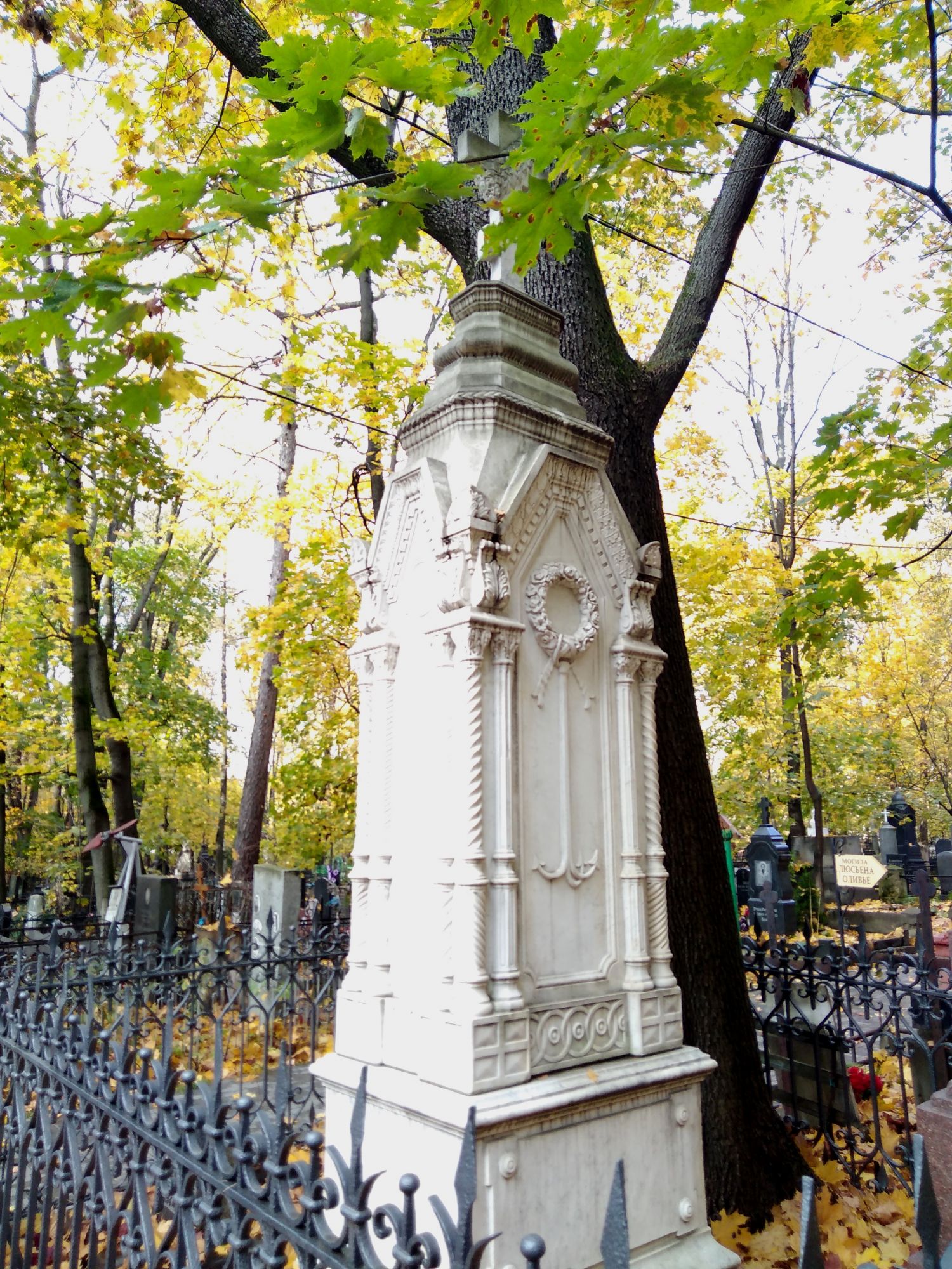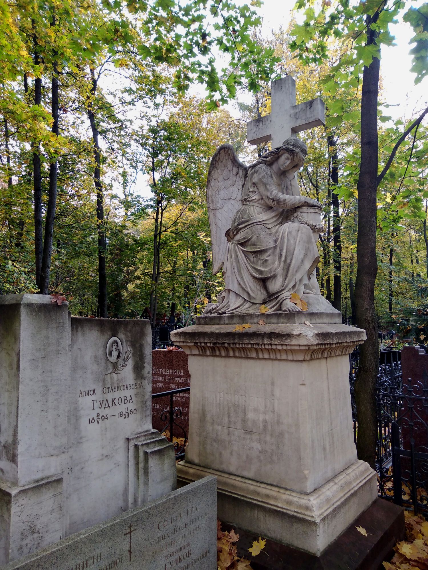 15 марта 2021 Всем доброе утро! Возвращаюсь к октябрю прошлого года. С моста через Яузу я пошла мимо института им. Бурденко на Введенское кладбище, давно хотела там побывать. Дальше, кому эта тем в напряг, можете этот пост не читать и не смотреть. https://ru.wikipedia.org/wiki/Введенское_кладбище Я оказалась не совсем готова, без плана и меток, и увидела, наверное, одну десятую. На входе стая собак я сразу свернула и решила затеряться) Удачно, практически сразу нашла Т.И. Пельтцер (у самой стены со стороны ул. Госпитальный Вал) https://ru.wikipedia.org/wiki/Пельтцер,_Татьяна_Ивановна и Л.Н. Смирнову, а это и было моей основной цельюhttps://ru.wikipedia.org/wiki/Смирнова,_Лидия_Николаевна. дальше бродила бессистемно) Чудесная погода была, последний день золотой осени, на следующее утро был холод, ветер, дождь... Усыпальница семьи Амлонг Яркий пример человеческого дебилизма - корябать на памятниках (как на башне Новодевичьего, к примеру) https://kazved.ru/news/society/12-05-2004/teatr-muzey-i-tyurma-arhitektora-amlonga-4692124 Скрытый текст Амлонг Фёдор Романович Фердинанд-Юлиус Адольф Фридрихович Амлонг. Архитектор Содержание Биография Деятельность Биография 17 сентября 1871 года, Москва – ? Родился в семье прусского подданного, принявшего в 1900 году российское гражданство. В 1893–1900 годах учился в Петербургской академии художеств, по окончании которой получил звание художника-архитектора. В 1900–1903 годах преподавал архитектуру в Казанской художественной школе. Одновременно в 1902–1903 годах архитектор Казанской земской управы. С 1904 года казанский городовой архитектор. С 1915 года владелец строительно-технической конторы «Современное зодчество» и кирпично-известкового завода в Казанском уезде. В связи с обвинением в шпионаже в пользу Германии, выдвинутым против жены, в 1915 году сослан с семьей в Иркутскую губернию. В 1920-х годах жил в Казани и работал в Татарском профессиональном совете. Деятельность Ф.Амлонг – яркий представитель романтического модерна. По проектам Ф.Амлонга построены: Шамиля дом, Подуруевой дом, Командующего Казанским военным округом дом (предположительно), дом П.И.Климова (1909). Автор – Л.М.Муртазина Источник: https://tatarica.org/ru/razdely/kultura/iskusstvo/arhitektura/personalii/amlong-fyodor-romanovich Онлайн - энциклопедия Tatarica Христиан Мейен"Добрый доктор" Гаазhttps://ru.wikipedia.org/wiki/Гааз,_Фёдор_Петрович https://raven-yellow.livejournal.com/277824.html https://www.pravmir.ru/10-faktov-o-blazhennom-doktore/ хорошие профессиональные фото https://sonic-0ff.livejournal.com/13419.html прекрасный очерк https://www.otzyv.ru/review/191131/ статья с Яндекс Дзен прогулка Мои любимые фото (стало традицией их выделять) Я прошла намного меньше, чем хотела бы, потому что разрядился фотоаппарат, пришлось идти назад в гостиницу на зарядку и ждать, притоптывая от нетерпения, так как впереди была большая прогулка по паркам. Большая часть фото здесь с телефона. Кладбище произвело довольно неприятное впечатление - именно здесь почему-то не ожидала такого неуважения к памяти ушедших поколений, когда в ограде условно говоря дворянки воткнут советский генерал, а к нему всё его многочисленное семейство. И так практически на каждом шагу. И на центральных дорожках продолжают по краям копать. Видела в свежих захоронениях известные фамилии, но сняла, а, значит, и не запомнила. Мультифрукт, PrimaN, Catopuma и 21 других сказали спасибо Поделиться сообщением Ссылка на сообщение