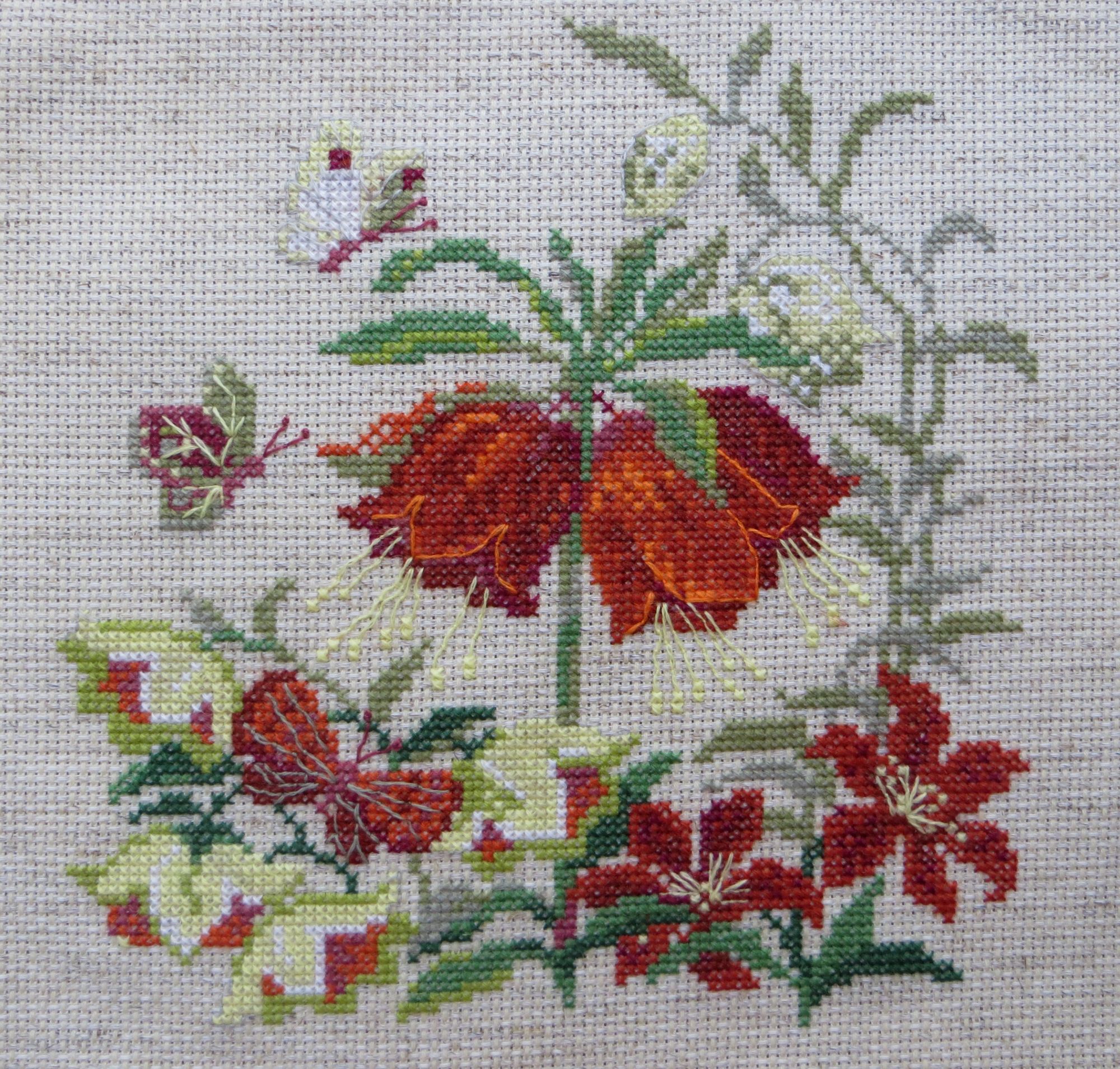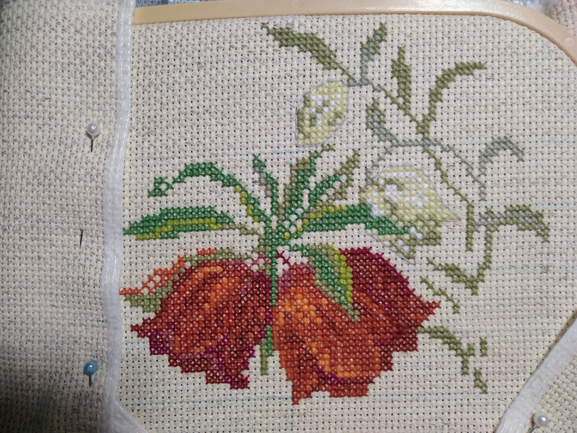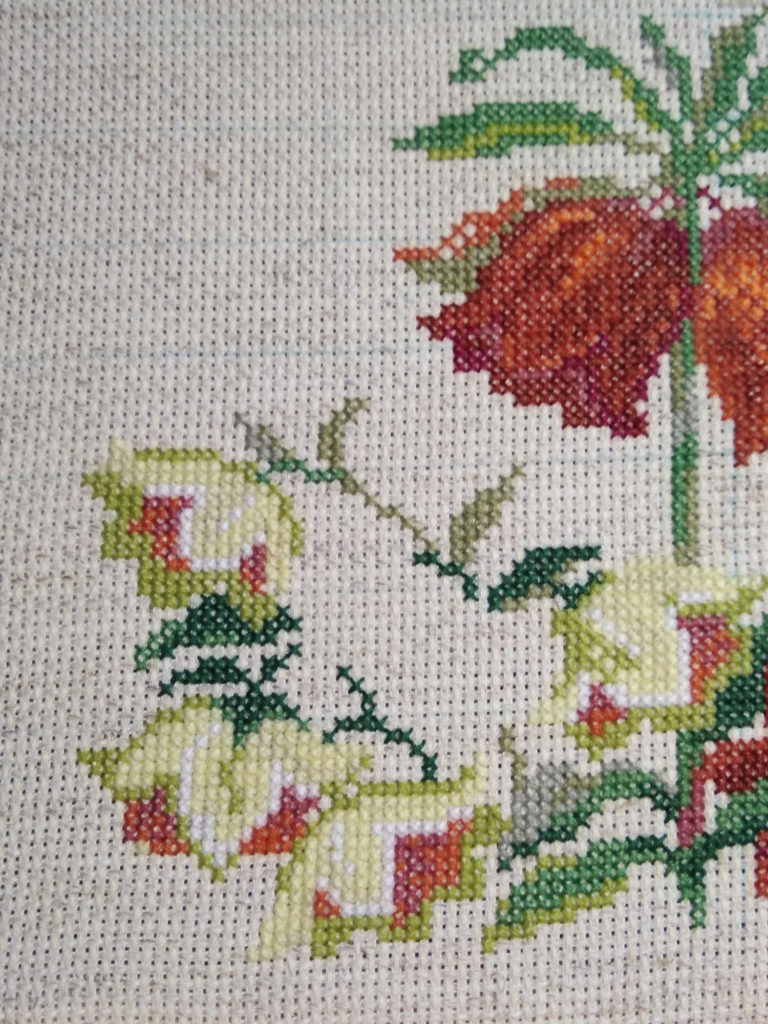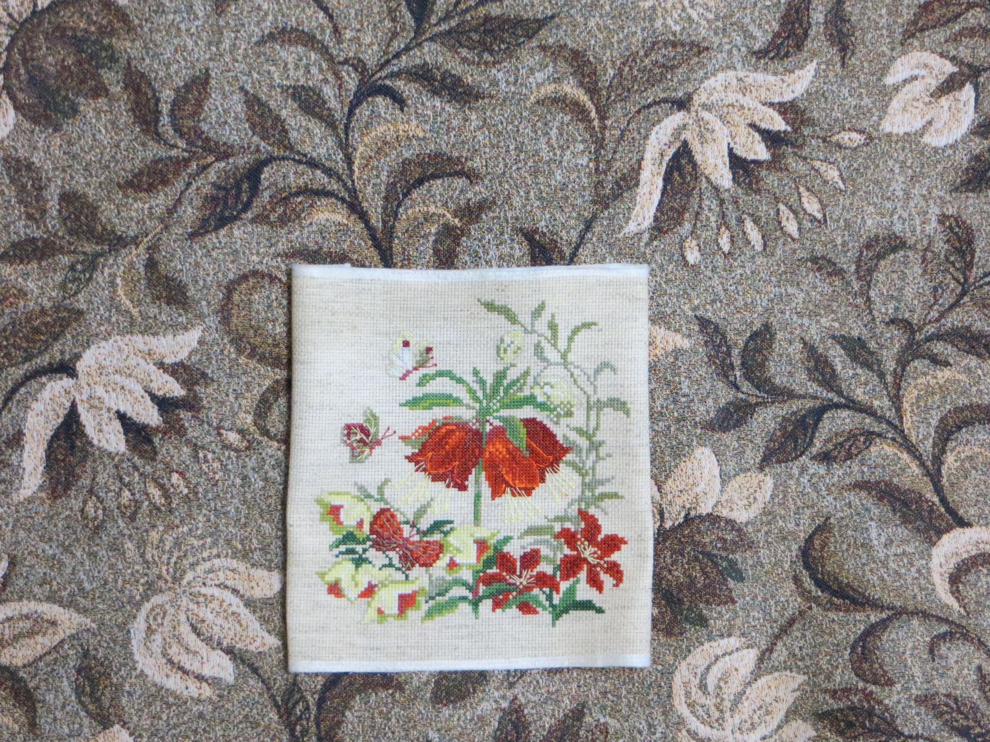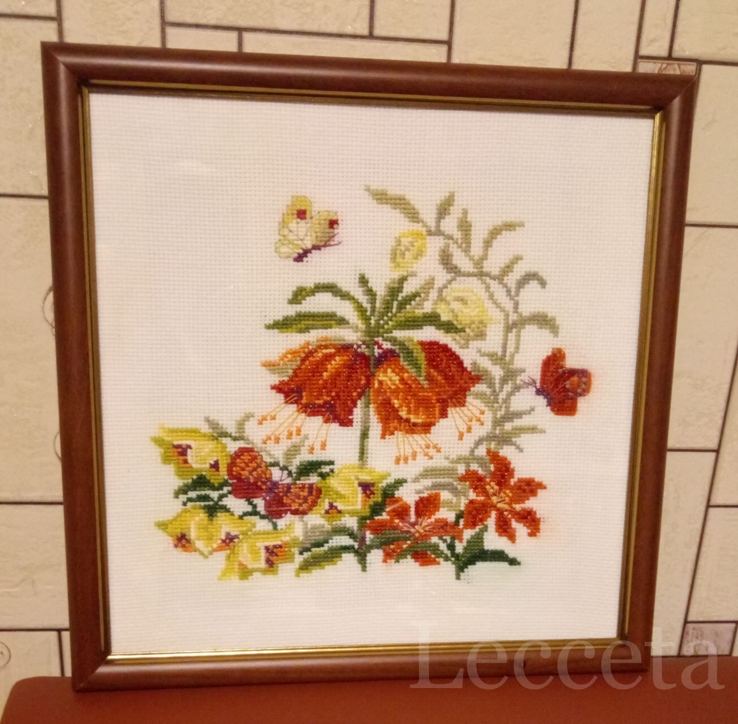 24 августа 2021 Всем привет! Я вышила маленький старый Риолис , давно собиралась, а когда увидела отшив в нашей Галерее, убедилась, что "надо брать". Гамма и композиция немного изменены, вышито в одну шерстяную нить. Итоговый размер 18 на 17 см. Добавила немного бэка. Канва под лён 14-го каунта из американского набора с птичкой , что дарила Ольга @оленек74 в 2017-м году . Для птичек мне показалось толстовато, а канва приятнейшая - плотная, мягкая, с небольшими дырочками. Всё-таки американская канва прекрасна! Использовала оба кусочка - на сапожки и теперь вот на Рябчик императорский. Ольга, благодарю ещё раз! Риолис (Сотвори сама) 704 шерсть, 13 цветов, ПОДБОР (в базе нет) ВСЁ!! Рябчик императорский Интересно, что на наших покрывалах в зале я заметила что-то отдаленно напоминающее этот цветок, а также лилейник. Вышивала довольно медленно с 16 по 23 августа, кое-что распускала, в том числе бабочку справа (перенесла её влево, заодно изменила цвета в ней). Инна @Zlatodara, ты видишь, продолжаю использовать твои ленточки для обработки края, большое спасибо! pepita, Iharu, СветланаМ и 26 других сказали спасибо Поделиться сообщением Ссылка на сообщение