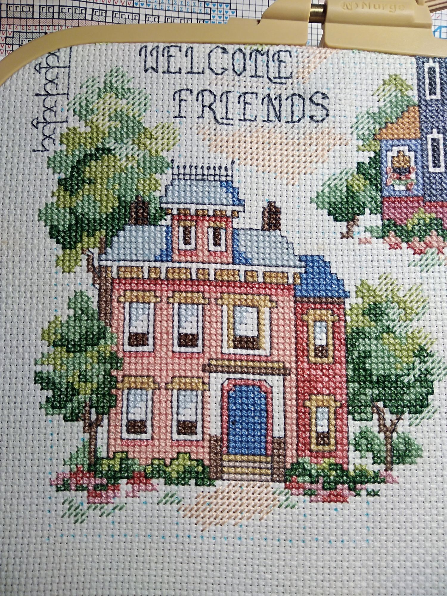 18 мая 2022 Всем доброе утро! Вышился третий домик - два дня на сам домик и два вечера + утро на бэк и сердечки Было стало Верхняя часть домика мне напомнила вот этот очень смешно) А ещё вот что - цитата из любимой книги любимого Даррелла Скрытый текст Землянично-розовый дом Этот небольшой квадратный дом стоял посреди маленького садика с выражением какой-то решимости на своем розовом лике. Зеленая краска на его ставнях побелела от солнца, растрескалась и вздулась кое-где пузырями. В садике с живой изгородью из высоких фуксий были разбиты цветочные клумбы самой разнообразной формы, обложенные по краям гладкими белыми камешками. Светлые мощеные дорожки узкой лентой вились вокруг клумб в форме звезд, полумесяцев, кругов, треугольников размером чуть побольше соломенной шляпы. Цветы на всех клумбах, давно оставленных без присмотра, буйно заросли травой. С роз осыпались шелковые лепестки величиной с блюдце — огненно-красные, серебристо-белые, без единой морщиночки. Ноготки тянули к солнцу свои пламенные головки, точно это были его дети. У самой земли среди зелени скромно сияли бархатные звездочки маргариток, а из-под сердцевидных листьев выглядывали грустные фиалки. Над небольшим балконом пышно раскинулась бугенвиллея, увешанная, будто для карнавала, фонариками ярко-малиновых цветков; на сомкнутых кустах фуксий, как маленькие балерины в пачках, застыли в трепетном ожидании тысячи распустившихся бутонов. Теплый воздух был пропитан ароматом вянущих цветов и наполнен тихим, мягким шелестом и жужжанием насекомых. Нам сразу захотелось жить в этом доме, как только мы его увидели. Он стоял и будто дожидался нашего приезда, и мы все почувствовали себя тут как дома… Отрывок из книги "Моя семья и другие родственники" Колонка натуралиста Гнездо опустело! Сегодня увидела какой-то неподвижный серый шарик на стволе клёна и метнулась на холоднющий балкон. Снимала через стекло, чтобы не спугнуть, качество на 2+ На работе в одном из кабинетов цветёт герань На улице зацвел новый для меня кустик по определителю вроде бы алыча, сильный запах и непривычный цвет. Начали ландыши цвести, сирень набрала бутоны, яблони цветут. Славно, но совсем холодно. Утром первый раз услышала соловья недалеко от работы, жаль, окна пока не откроешь - холодно. Каори, АлёNка, PrimaN и 22 других сказали спасибо Поделиться сообщением Ссылка на сообщение