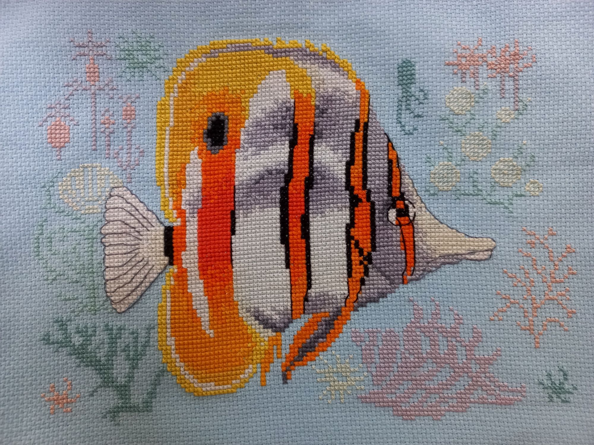 30 сентября 2024 Всем доброе утро! Закончила рыбку с неожиданным даже для меня результатом)) Было стало ВСЁ!! Сначала собиралась вышить угловую кучку кораллов по схеме, потом захотелось заполнить углы, потом решила все углы делать в одном духе Нашла морской сэмплер в журнале "Формула рукоделия" за 2019 год. Цвета взяла бледненькие, чтобы рыбку не "забить". Было интересно . Не стала делать стебельчатый шов на хвосте, вообще не поняла в нем надобности, тем более линии почти все несчётные. Погоды BlueeYeS, vodonika, PrimaN и 20 других сказали спасибо Поделиться сообщением Ссылка на сообщение