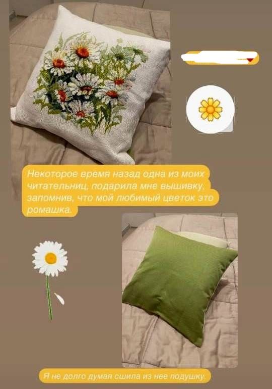 28 марта 19.09.2024 в 12:12, irisheckin сказал(а): Сестра попросила вышить ромашки для женщины из Италии, которая скучает по "нашим" травкам. Типа сюрприз, передадут с кем-то. Вообще не знаю дальнейшую судьбу, может, ей и не надо совсем) Всем привет! Никак не доходят руки показать судьбу этих ромашек. Понятно откуда (я там не бываю). Не знаю, надо было оставлять ники или нет, вдруг какие авторские права нарушила. Полное фото тоже сохранила. Это обрезанное фото добавила к ромашкам . АлёNка, Камма80, Bogdan и 9 других сказали спасибо Поделиться сообщением Ссылка на сообщение