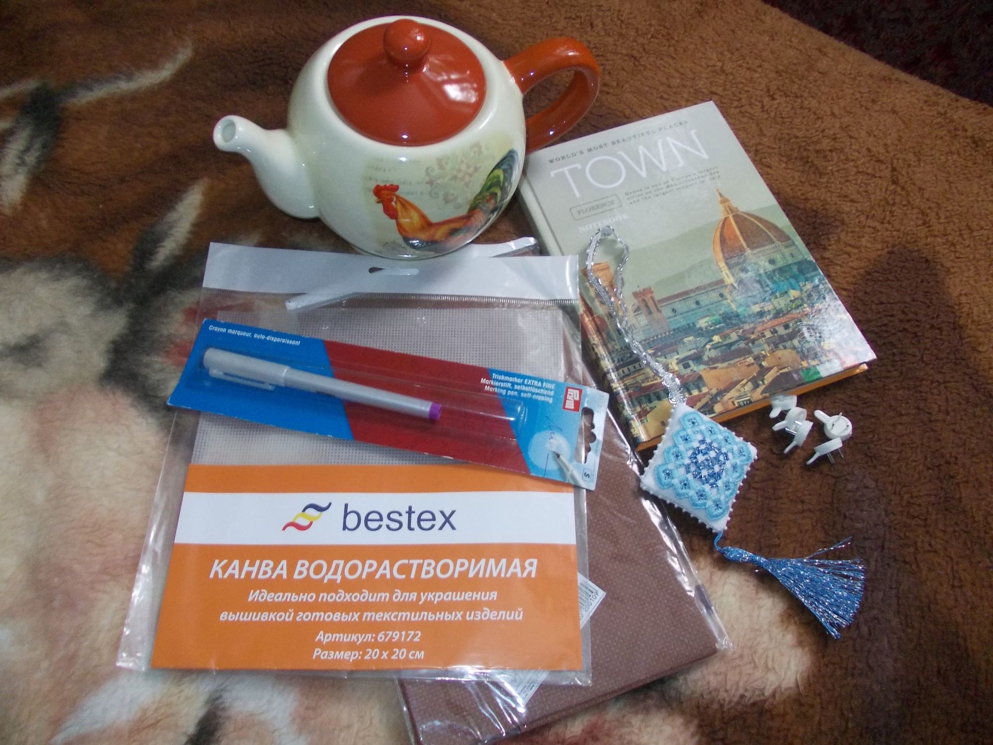 5 декабря 2016 Я с небольшим подарочным отчётиком. Во-первых, от Инны @Zlatodara кружными путями добрался вот такой кораблик и магнитик с птичкой . Инна, большое спасибо! Во-вторых, мы еще раз увиделись с Олечкой @оленек74. День пролетел незаметно, наговориться опять не успели. Приятнейший, лёгкий в общении человек. Ну, а щедрость Олину многие на форуме знают, и я тоже, но каждый раз удивляюсь. Вот такой чайник с петухом мне подарила , изумительную елочную игрушку . Как сделано!!! Какие шовчики, как аккуратно бисер пришит, какая серебристая тесёмочка, какая кисточка!! А тканюшка какая прелестная, сразу видно, что это не гаммовская линда. Еще канвушка коричневая и водорастворимая (легкий пиночек мне в сторону вышиванки), исчезающий маркер для ткани, багетные крючки, красивый ежедневник с видом Флоренции (оптимистка! верит, что куда-то еще можно выбраться). Общий вид А до этого еще мне был подарен набор с колокольчиками РТО , опять он появился у меня. Олечка, спасибо тебе за такие чудесные подарки и прекрасное теплое общение!! В-третьих, Олечка в Леонардо высмотрела уцененный Дим "с горшками", пришлось не устоять "Как же быть, как быть /запретить себе тебя любить /Не могу я это сделать, не могу" (с) Гулять так гулять! на радостях купила еще и гаммовский маркер наконец. Gala83, курочка, Mara_ и 18 других сказали спасибо Поделиться сообщением Ссылка на сообщение