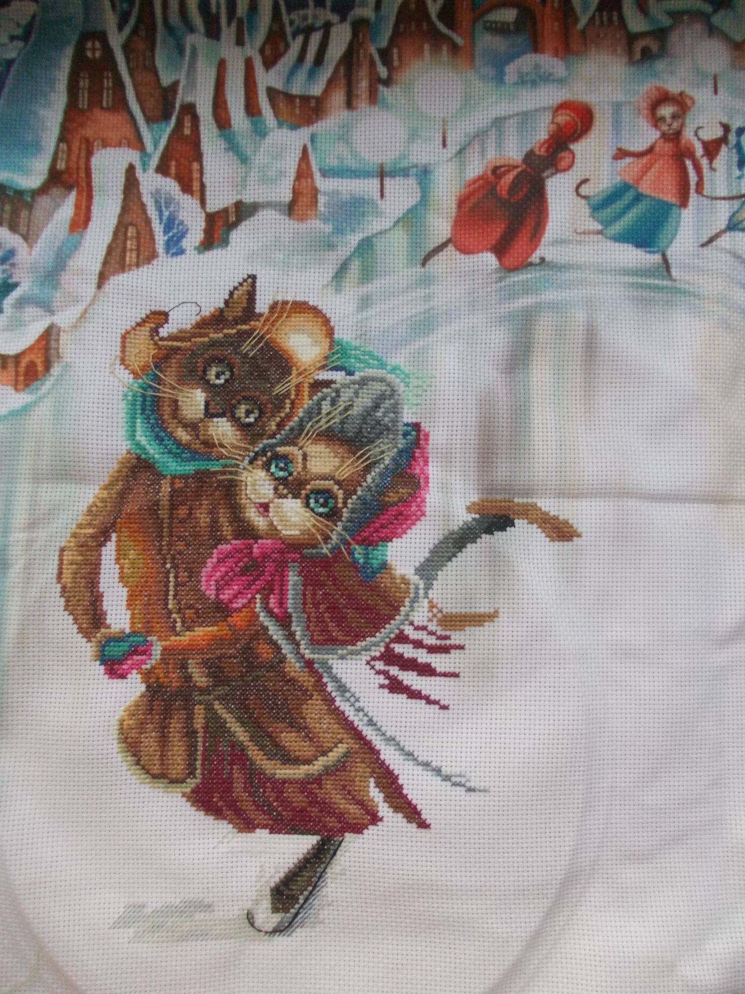 8 декабря 2016 Всем доброе утро! Показываю прирост котов, вернее, кота. До выходных вышилась только лапка в варежке у кошки, не стала её отдельно фотографировать. Как приехала, один день отдохнула с греческим горшком и больше его не касалась. У кота почему-то сначала вышились полосатые шаровары, а потом уже низ тулупчика. Хотела вышить оба конька и уже заснять, но не осилила, так что кот катится пока на одной лапе. Вышила маленькую частичку фона полукрестом, вся нижняя часть работы- сплошная зашивка полукрестом 4-х цветов, особенно ужасно шить белым по белому, просто мозг сводит от усилий понять, где я сейчас относительно схемы.Терпеть не могу полукрест. Размечать не рискую. Эти два кота будут огромными, я даже не думала, что кот получится от кончика уха по конёк включительно 22 см. Пока так выглядит. Welt, PrimaN, татьяна0674 и 17 других сказали спасибо Поделиться сообщением Ссылка на сообщение