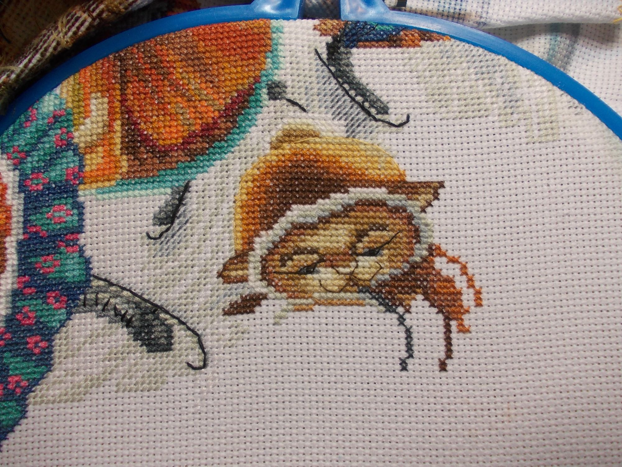 7 января 2017 Привет, всех с праздником. Три дня меня не было дома, набрался маленький отчёт. Во-первых, в Самаре мы виделись с Галей @Дичок, как она упоминала в своей теме. Я очень рада, хоть виделись совсем недолго. Галочка передала мне свой подарок , наборчик с поползнем, а ниточки в нём просто праздник какой-то, бокал с петухом, вкусные и полезные мармеладные конфеты, шоколадки, набор косметики. Два огромных куска прекрасной ткани белого и молочного цвета, это уже королевская щедрость! На фото еще нет большой коробки самарских шоколадных конфет, она сразу попала на большой стол, где собрались три семьи почти в полном составе. Спасибо огромное за такой весомый и красивый подарок!! Вот Галин бокал стоит рядом с Олиным чайником. Во-вторых, "звери" мои одаряемому понравились, чему я тоже рада. В-третьих, увидела оформленными "буцилльные башмаки" багет под старую "почирканную" медь с розовым отливом и красивым резным краем. Лилии в подушке увидеть не удалось, потому что у портнихи за полгода руки до них так и не дошли. В-четвертых, ночью на свой день рождения я начала старенький шерстяной Риолис и по чуть-чуть его ковыряю. Риолис (Сотвори Сама) 931 Пейзаж с мостиком, 21х30, 12 цветов, нитки шерсть, счетный крест . Про котов помню, но раз я к отъезду не успела, то и торопиться перестала, но надо брать себя в конечности и заканчивать. BlueeYeS, Mara_, kreolka и 24 других сказали спасибо Поделиться сообщением Ссылка на сообщение
