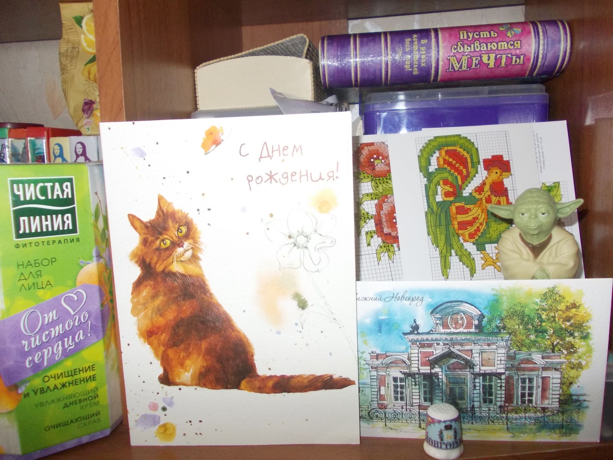 9 января 2017 Пришла посылка от Анечки @Камма80, с большим старанием собранная и продуманная (я так не умею). Физалис из моего списка желаний . Обожаю физалис, весной собираюсь посадить такой. Спасибо!!! Чудесная открытка с Нижним Новгородом, шоколадка, открытка со схемой, сувенирный наперсток с Нижним Новгородом, раскраска для взрослых (ничего не раскрашивала с детства). Все эти прекрасности лежат на цветном палантине)) . Придётся приличную работу искать, а то выгуливать его негде будет. Анечка, большое тебе спасибо за доброту, ты меня очень порадовала Вот у меня в стеллаже на полке, почти напротив моего места на диване, мини-выставка, в этом "отсеке" стоят все коробочки. Наташина кошка смотрит прямо в душу, даже мой Йода смирился. Галя тут узнает часть своего подарка)) Саша, твои снегири стоят полкой ниже, но на ней опять всё в кучу сбилось, снимать такое неудобно. Вот продолжение по мостику- было стало. Mara_, Хорошуля, оленек и 19 других сказали спасибо Поделиться сообщением Ссылка на сообщение