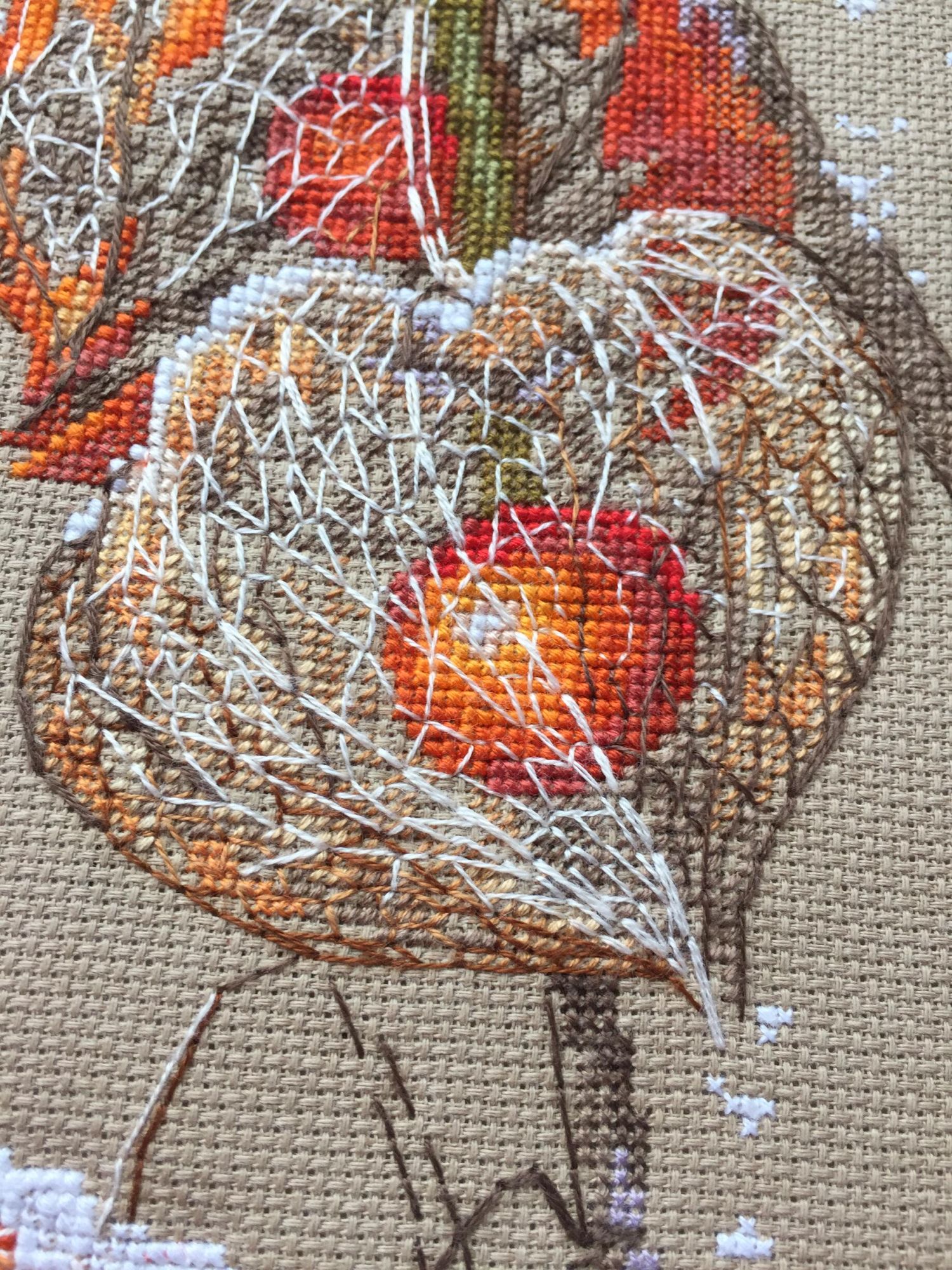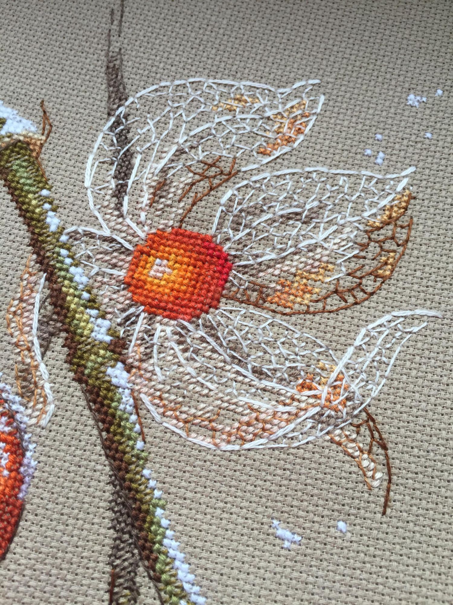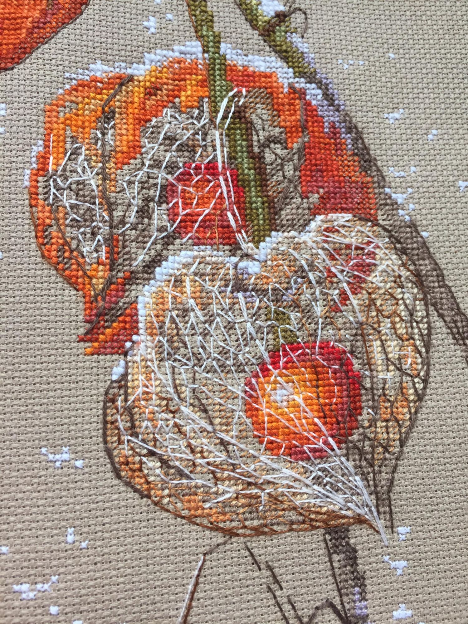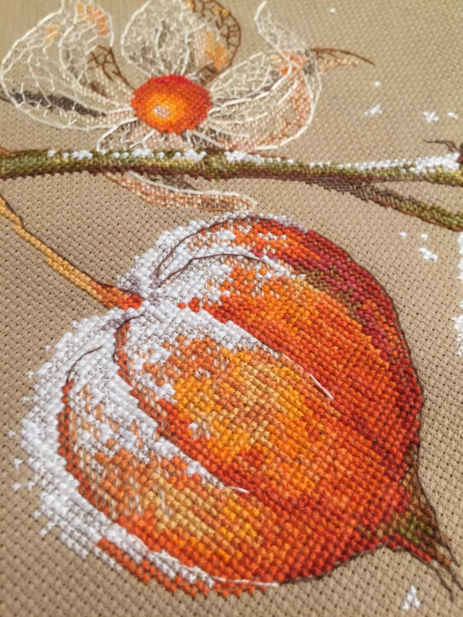 8 февраля 2016 Девочки, приветики! Я очень рада, что вы про меня не забываете и заходите в гости В 5 февраля 2016 г. at 20:46, turu сказал: Мне жуть как нравится рассматривать детальки!!! Макрики отличные! 23 часа назад, Molly21 сказал: Детальки просто изумительные. 11 час назад, вишенка аллая сказал: Олеся физалис бесподобен, все детальки так здорово сфотографировала! Поздравляю с завершением! Надя, Маша, Света, я сама люблю рассматривать детали в процессах других. Особенно, когда вышиваю что-то и возникают вопросы (например, в какую сторону полукрестик наклонить или еще что-то), а по инструкции не указано или я туплю. Я тогда стараюсь найти процесс, где можно посмотреть Поэтому и сама стараюсь делать фото такими, чтобы можно было рассмотреть подробности. Информативные, так сказать В 5 февраля 2016 г. at 01:01, Taisiya сказал: Теперь осталось оформить и на стену на самое видное место! А я решила тоже потом приобрету обязательно эту красоту! И посажу возле дома! Влюбилась я в него!) Спасибо тебе!) Тая, я вот тоже уже задумалась посадить дома в горшок А по поводу оформления - очень хочу! Но вешать не знаю куда. В 7 февраля 2016 г. at 06:26, Fcmrf сказал: Олесик, фонарики просто волшебные! А какой там бэк! Преклоняюсь перед твоим мастерством! А с какой скоростью ты шьешь! Планируешь в ближайшее время оформлять? Негоже ведь такой красоте в тумбочке валяться, это срочно нужно вешать на стену славы! Колдунью начинай поскорее, очень хочется посмотреть на рождение такой красоты. Я на свою облизываюсь постоянно, но чет как-то страшновато пока. Трудной очень кажется. А у тебя полюбуюсь, глядишь - и созрею морально. Аленчик, это ты верно подметила, что негоже такой красоте в тумбочке пролеживать! Надо-надо оформлять! А потом уже думать, куда вешать Бэк там весь по клеточкам. Просто надо внимательней следить за переплетениями паутинки и все! Ничего особенно сложного Колдунью может тоже начнешь? Вместе шить веселее будет В 5 февраля 2016 г. at 21:08, Zlatodara сказал: Красивый физалис! Но рассмотрев фото, поняла, что я бы не стала вышивать, такое количество бека... А полюбоваться - это можно бесконечно, он как настоящий! А мне кажется, что бэк придает еще бОльший объем и создает некую хрупкость цветочку Но мнения у всех разные В 5 февраля 2016 г. at 16:23, Nadinka-Blondinka сказал: Олеся, Физалис такой шикарный!!! Прямо прожилочки видны!!!! Натуральный цветок получился!!!! Здорово смотрится!!!! Колдунью начинай, очень интересно посмотреть!!!! Насчет ниток не заморачивайся, там такая разнообразная цветовая палитра, если что, можно будет заменить похожими.. И вообще, что переживать о том, что еще не случилось? Если закончатся, то наверняка у кого- нибудь на форуме такие ниточки будут, многие ж Дим вышивают... Ой, Надюша, буду надеяться, что все обойдется. Я еще никогда не сталкивалась с проблемой нехватки ниток в наборах. Шью вот до таких хвостиков (эти фото НЕ для процесса): И там, где написано в пять ниток, шью в четыре. Поискала, почитала, что многие так делают. Внешне не заметно, что вышито в четыре, а не в пять. За выходные немного вышила. Сегодня еще поколупаю и начну показывать процесс. Всех целую! Ксен40, Хозяйка смешных зверей, Цыпа и 4 других сказали спасибо Поделиться сообщением Ссылка на сообщение