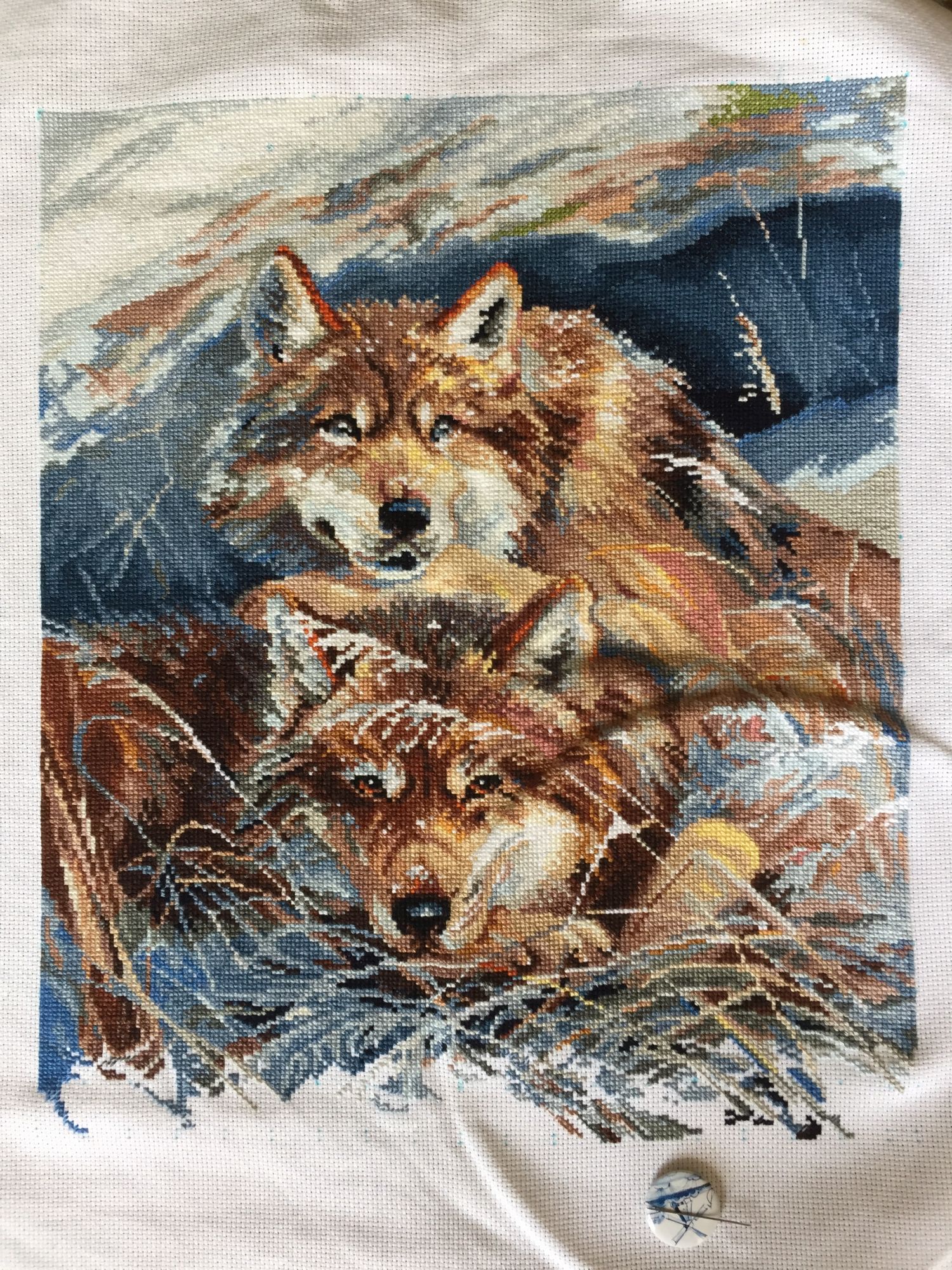 2 августа 2023 Всем привет! Сегодня отчет будет незапланированным, просто не могу не поделится. Я завершила "Идиллию", бэк делала три дня, крестики шила больше двух лет. Мои красавчики Просьба добавить это фото в уже зеленую гаечку по этому процессу. Взгляд у нижнего волка после бэка стал неотразимым, глазки у верхнего (предположительно волчицы) мне нравятся существенно меньше, мультяшные они какие-то. Колоски в основном делала выкладной, местами стежками вприкреп. Ну и чтобы клюковке было не скучно и обидно быть единственной красной гаечкой, покажу первую 1000 в моем новом процессе, встречайте "Переполошник" по дизайну Ирины Даргель. Превью и моя первая тысяча крестиков (точнее чуть больше) очень мне нравится цветовая гамма, неяркая, но очень приятная глазу. Путешественница, Аментет, relax_cross_stitch и 14 других сказали спасибо Поделиться сообщением Ссылка на сообщение