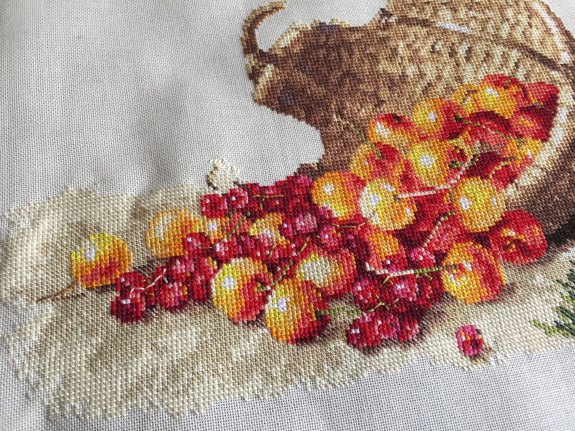 5 ноября 2024 Всем привет! Не буду тянуть кота за это самое. А покажу моего красавца Бывалого во всей красе. Финиш: - с усами мне кажется он даже помолодел. процесс мне очень понравился, самое сложное место глаза - там есть даже четвертинки, все остальное вышивалось легко и непринужденно, берешь ниточку и чаще всего до конца ею вышиваешь. В выходные отнесла котика в багетку. Выбрала темный багет, и тут мне приемщик говорит, а давайте попробуем вот этот новый багет - широкий, светлый, с вставкой из кожзама. Я повелась на уговоры, теперь переживаю как получится. У нас почти зима, уже все вокруг белым бело, снежинки красиво кружатся, но через пару дней все растает. А у меня в это время вышиваются яркие черешенки: Было Стало Ягодная часть завершена, вышито почти 80 %, остались птички. Я еще я получила спойлер подарка на ДР, хочу синичек закончить и начать Физалис от Золотых ручек (если меня не обманут ). Мишкам и цветочкам от Ланартэ придется подождать. А еще у меня большая радость - Макар в выходные получил третий юношеский разряд по шахматам, попутно выиграв турнир среди второклассников. Второклассники играли с третьеклассниками, Макар проиграл только одну партию из 9. Был очень доволен собой. С ровесниками играет хорошо, а если турнир смешанный, со взрослыми, то как правило Макар тушуется. Макар с очередным кубком и тренером: Камма80, Tata44, оленек и 15 других сказали спасибо Поделиться сообщением Ссылка на сообщение