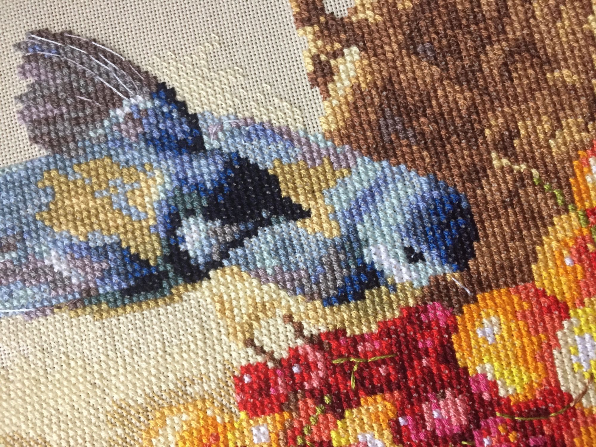17 декабря 2024 Всем привет! А у нас уже зима-зима. Я даже снегирей уже видела, прилетала стайка в кормушку во дворе работы и дятла. И в продолжение птичьей темы покажу финиш "Синичек и черешни" от Алисы: было стало Чудесная вышивка, мне очень понравилось вышивать птичек, теперь понимаю фанатов птичьих вышивок. А еще я умудрилась на предфинишном этапе поставить пару пятен от сока граната. Как меня угораздило ума не приложу. После обычной стирки они чуть побледнели, но были все равно видны. Меня спасло хозяйственное мыло - чуть намылила проблемные места, замочила на часик, потом прополоскала - и ни пятнышка. Я переживала что полиняют нитки на ягодах, но этого не произошло, ниточки повели себя чудесно. Наташа @Дикая белочка, спасибо еще раз за этих прекрасных птичек! В рамках традиционного новогоднего минисюрприза я вышила пинкип "Льдинка" по схеме из ВК. Группа Arfen Mires. Автор схемы Евгения Ташкина. Основа - Равномерка Murano 32 ct, 3984/100, бисер Preciosa, биконусы Swarovski. Лицевая сторона - это я пыталась блеск биконусов поймать Обратная сторона Висюльку сделала из бисера, используемого в вышивке, пинкип собрала с добавлением бисеринки в каждый второй стежок. очень довольна результатом - получилось очень зимняя вышивка, переливающаяся и искрящаяся на свету. И конечно долгожданные старты. "Физалис" от Золотых ручек. Вышивать на канве из набора я изначально не собиралась, сейчас такой шикарный выбор основ, я видела отшивы на темной основе, но мой выбор пал на Murano 3984/3009, это мокко неоднотонный. Подготовка и как-то незаметно вышилось почти 10 % Я перед началом вышивки нашла где-то на просторах Интернета перенабор, стала сверять со схемой - тихий ужас, куча ошибок. Погрустила. Решила "подправить" перенабор в ПМ. И тут подумала, а может набор скомплектован электронной схемой? Конечно не верилось, ведь разработка довольно старенькая. Но, чудо - код был. - примерно так я прыгала от радости, муж к моим заскокам привык, только косится и глаза закатывает на тему "как человеку мало надо для счастья". В общем ниточно-иголочный органайзер в помощь и вперед. Оторваться от вышивки очень сложно, я действительно получаю удовольствие от процесса. Как же мне нравятся яркие пятна крестом, чуть пострадавшие от непогоды участки полукрестом! А оторваться есть на что - "Обожатели" от РТО. начало положено - девушка почти готова, котика оставила на сладкое. Вчера увидела новый дизайн от Парижских вышивальщиц - очередную Ботанику "Фиалки" . Понятно хочу-не могу. Всем тепла! Дикая белочка, Ксен40, cozy_stitch и 15 других сказали спасибо Поделиться сообщением Ссылка на сообщение