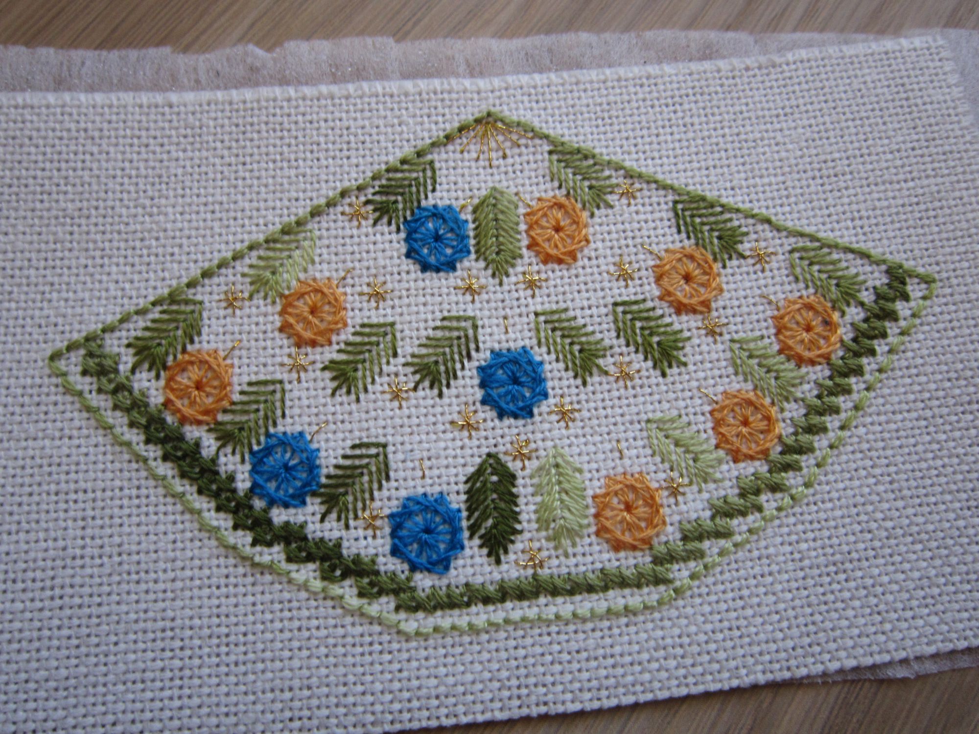 6 июля 2018 Всем привет! Погода сегодня вечером нелетная - периодически моросит мелкий дождик и прогулка с ребенком отменилась. Пока он увлекся машинками я, пожалуй, отчитаюсь. Сегодня с утра на почте забрала чудесную конфетку от Маши Molly21. Помимо наборчика с маяком Маша прислала мне милую душевную открытку и вкусную шоколадку. Давно мечтала вышить маяк и теперь точно не удержусь от размножения. Канва в наборе мне не очень понравилось. Заменю-ка ее моим недавним приобретением винтажным льном и заодно попробую его - на льне я еще не вышивала. Мои крупные работы - Маки и Оранжевая река вышивались, но не настолько чтобы их показывать, поэтому я покажу парочку недавно вышитых и собранных новогодних игрушек. Игрушка номер раз - очаровательный пингвин по авторской схеме Ксении Дмитриевой. Основа - дизайнерская канва, подаренная мне Леной B.unny в новогоднем обмене подарками. Нитки - смесь ДМС и Гаммы. Моя подготовка Канва 18 каунта и я как обычно долго металась вышивать в 1 или 2 нити. Пару раз начав и распоров вышивку, я решила остановится на 1 нити. Вот так мой пингвин появился на свет: Вышивался легко. Единственный минус - несчетный бэк. Оформила его в пинкип. Материалы для сборки - вышивка, флис для задника, картон, самоклеящийся поролон и тесьма с шариками Получилось две вот таких заготовки - . Я специально сделала задник чуть больше, чтобы тесьма с шариками имела основу и чуть ближе Я не очень собой довольна - видно пару складочек из-за довольно жесткой канвы. Пинкипы мне пока не удаются на все 100, поэтому буду делать их еще и еще. Игрушка номер два. Миниатюрная шовчиковая елочка по схеме Валентины Шаповаловой. Основа - равномерка, нитки и бисер на глазок. Добавила металлика и бисера Елочка собралась, низ прикрыла зеленым фетром А в завершении угощу всех вкусными кексами с изюмом Taisiya, Sky026, Ветер и 18 других сказали спасибо Поделиться сообщением Ссылка на сообщение