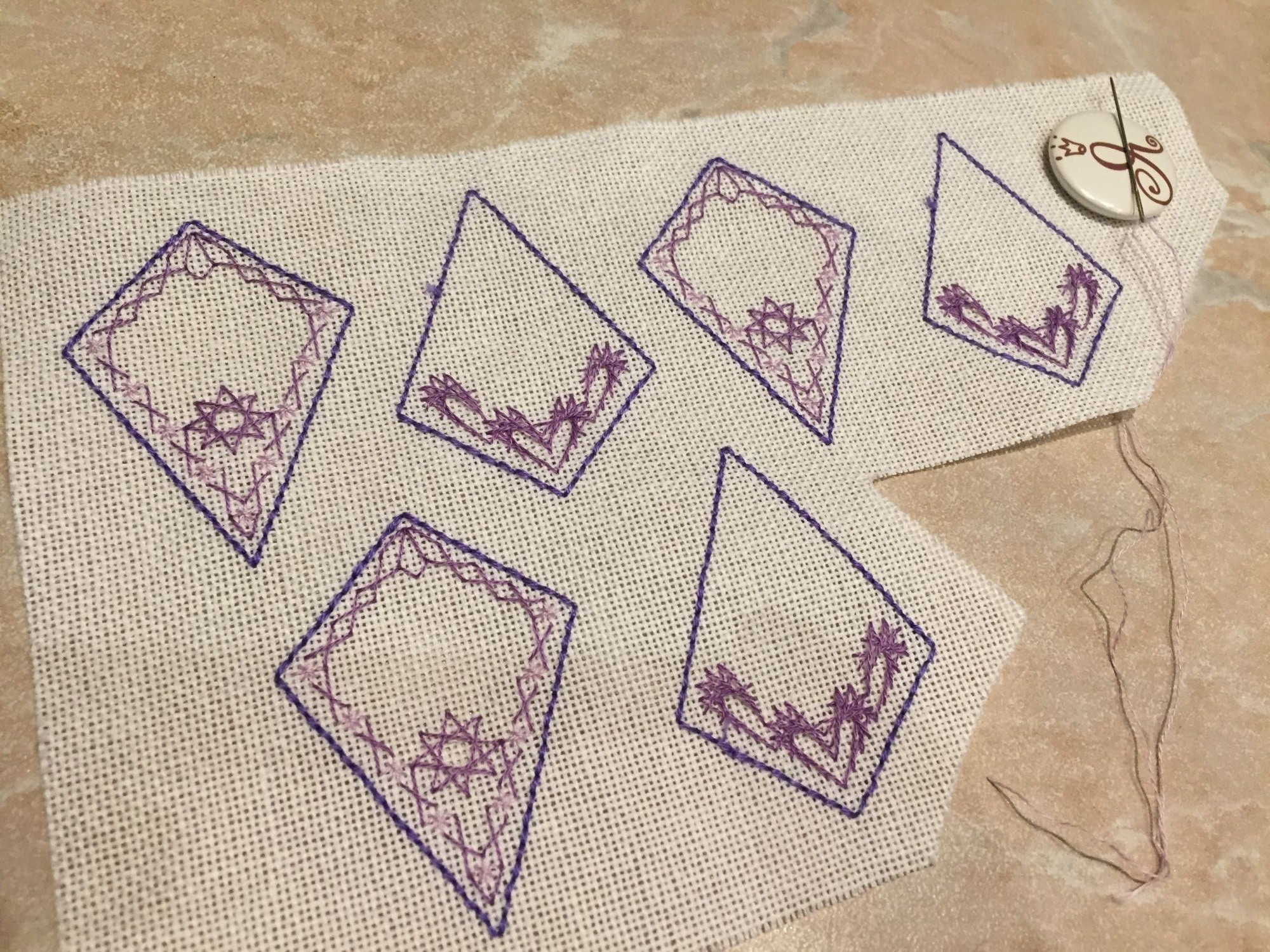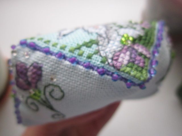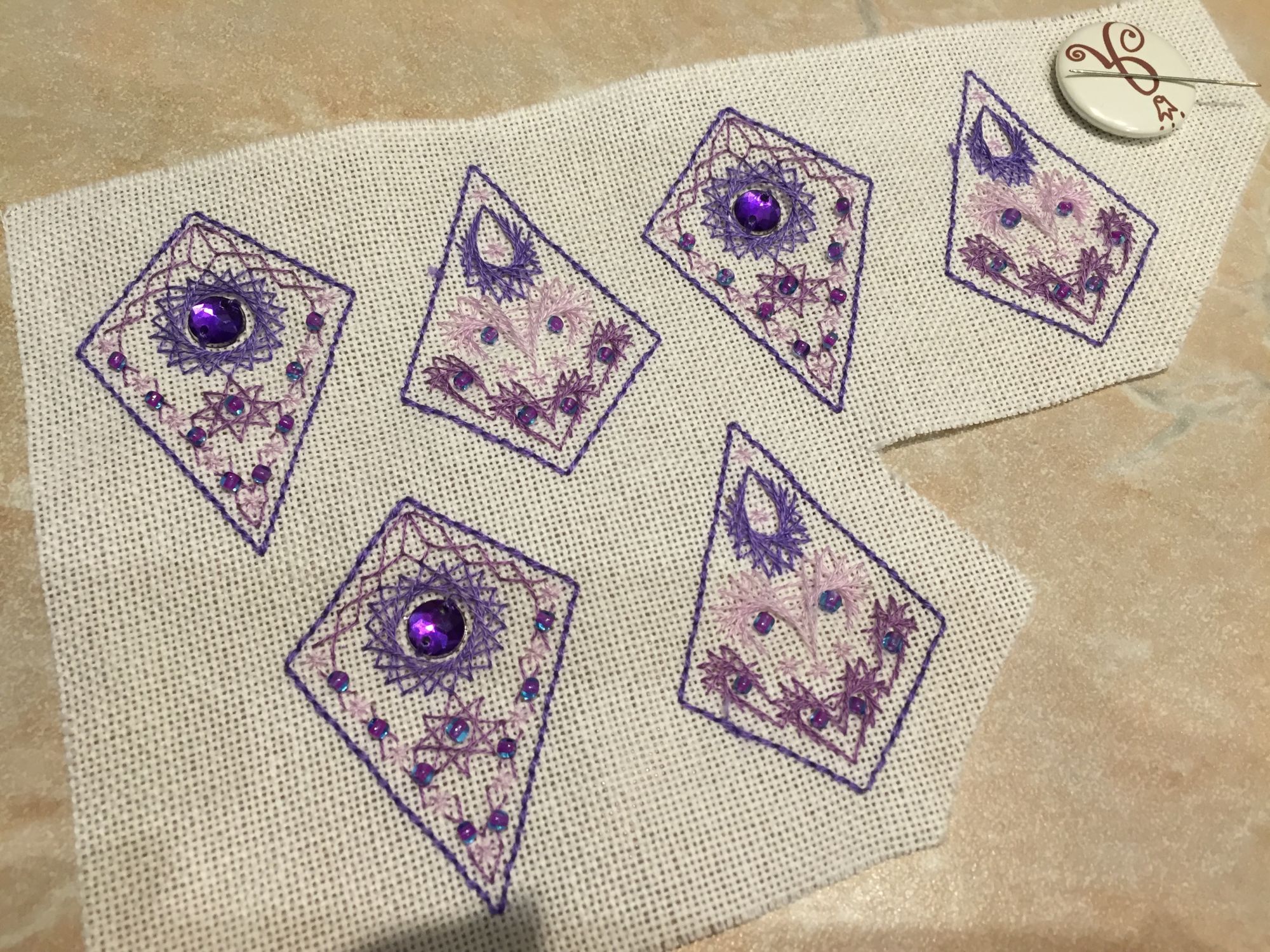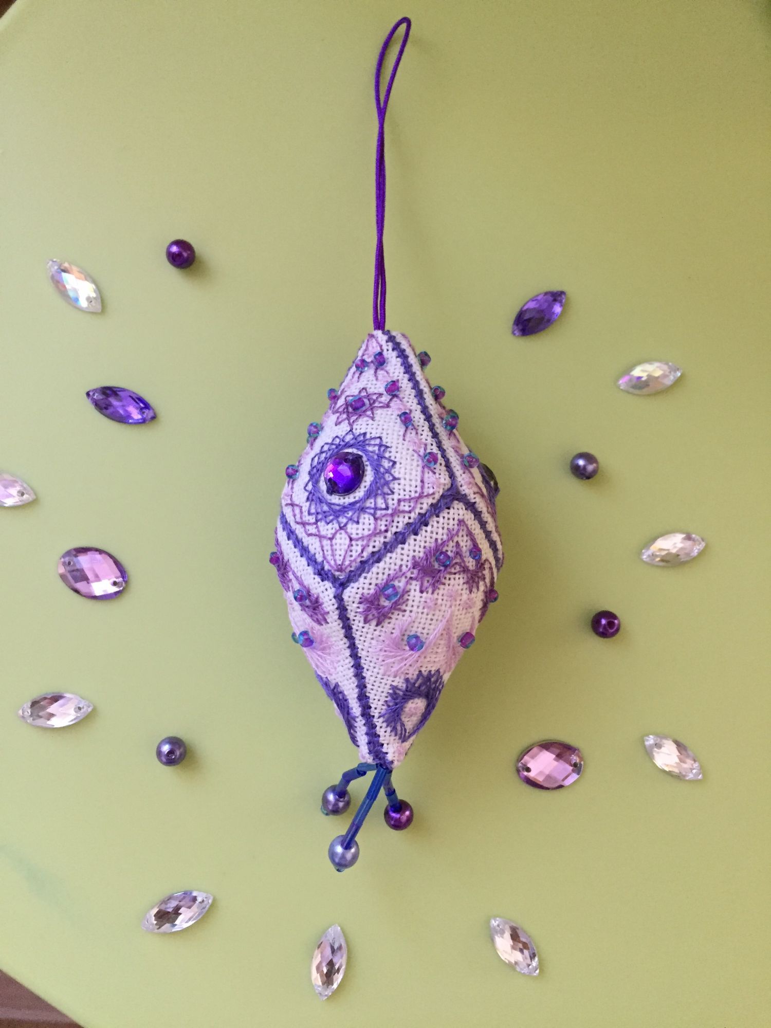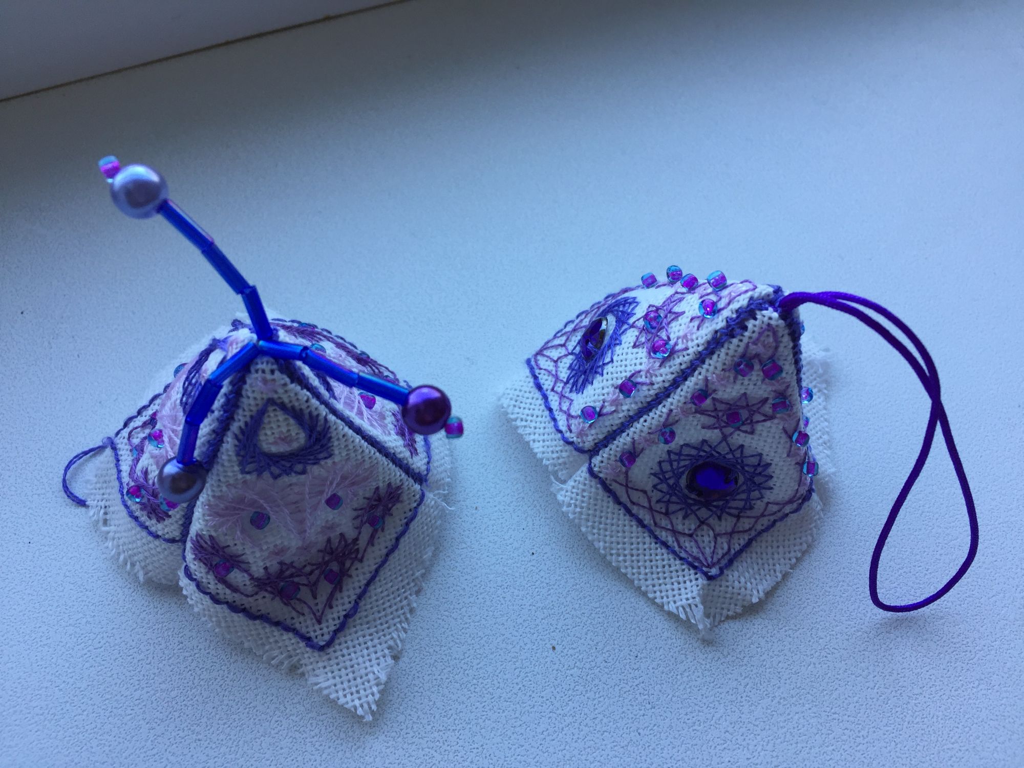 30 октября 2018 Всем привет! Если пару недель назад я радовалась необычно теплой осени, то сейчас у нас уже стадия "мороз и солнце". Температура держится около -2, а в выходные уже любовались первыми пушистыми снежинками. Я завершила бискорню с зайчиками. Я побоялась наносить разметку, хотя вроде после покраски ткани я ее и полоскала и утюжила, но все равно решила, что лучше размечу ниткой, так как мне нужно было найти центр детальки:Вторая половинка без бисера: и с бисером немного ближе Еще при вышивке я обратила внимание, что мои половинки-квадратики не совсем квадратики - этот кусок Линды оказался не совсем удачным, но и сама схема имеет нечетное количество крестиков по стороне 61*61, до этого я вышивала бискорню с четным числом крестиков. В результате при сборке одна сторона бискорню на 1 крестик больше другой. На сборку это конечно не повлияло, но осадочек какой-то неприятный остался. Итак, готовое бискорню с зайками и нижняя половинка В каждый третий шов вшила бисер И конечно, новая игрушка, опять сосулька. Так как сосулька уже была, то эту назову сосулька-шестиклинка по схеме Ирины Юровой. Цветовая гамма - этюд в лиловых тонах. Как всегда в начале самое скучное - край деталек который постепенно наполняется тут меня озарило, что я давно не использовала стразики и решила это исправить добавила бисер . При сборке меня слегка переклинило и я сначала сшила детальки по короткой стороне и поняла, что сосулька какая-то совсем не сосулька, все распорола и сшила их уже правильно - по длинной стороне, в одну половинку будущей сосульки вшила подвеску из бусинок и бисера, в другую - шнур и готовая игрушка . А теперь я ухожу в подполье, так как буду готовить сюрпризы в рамках Лавки желаний и подумываю о участии в новогоднем мини-сюре. Хозяйка смешных зверей, Путешественница, Taisiya и 19 других сказали спасибо Поделиться сообщением Ссылка на сообщение