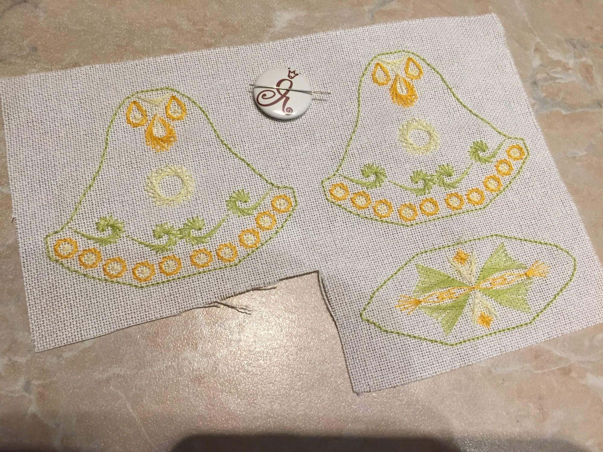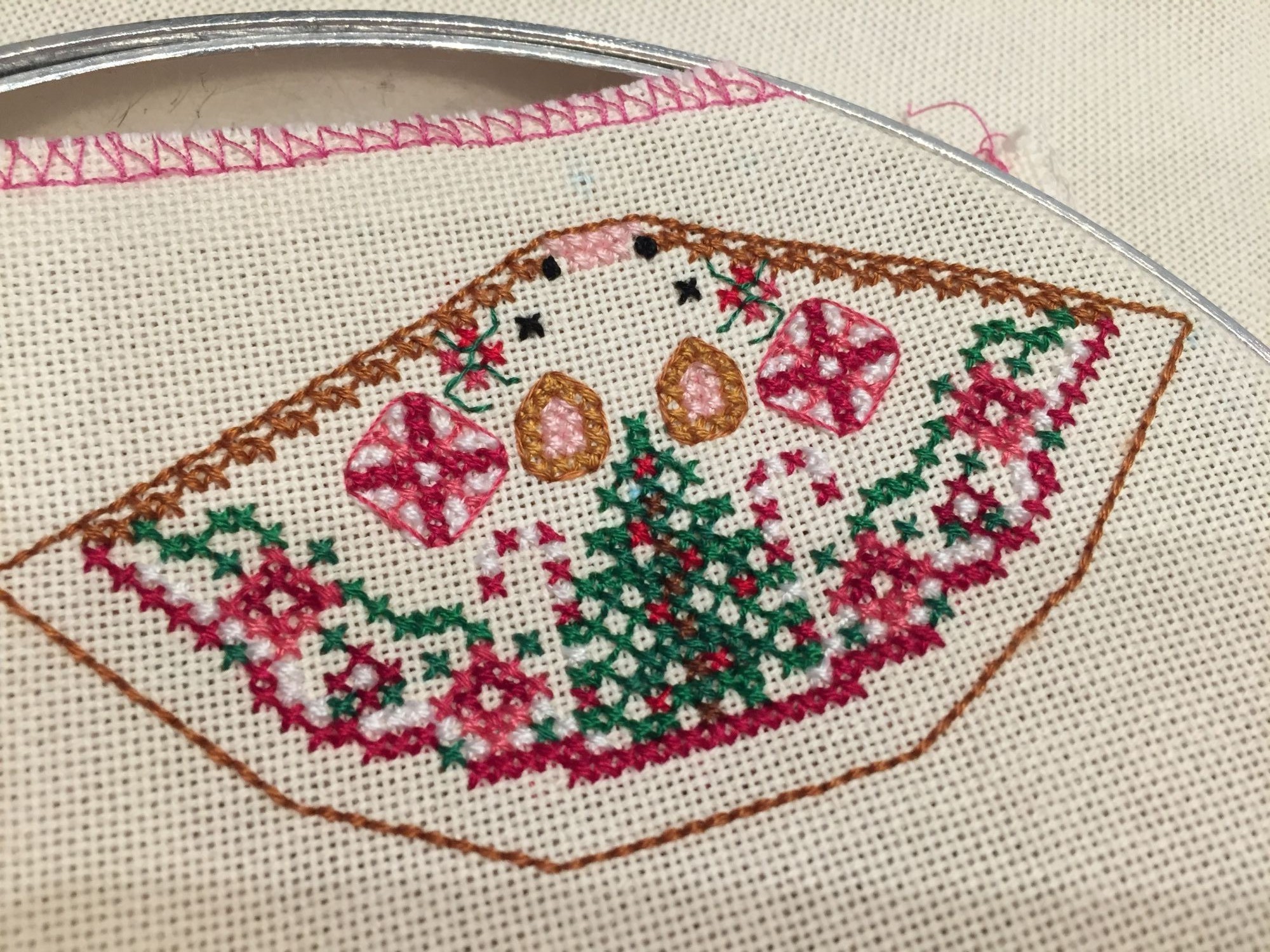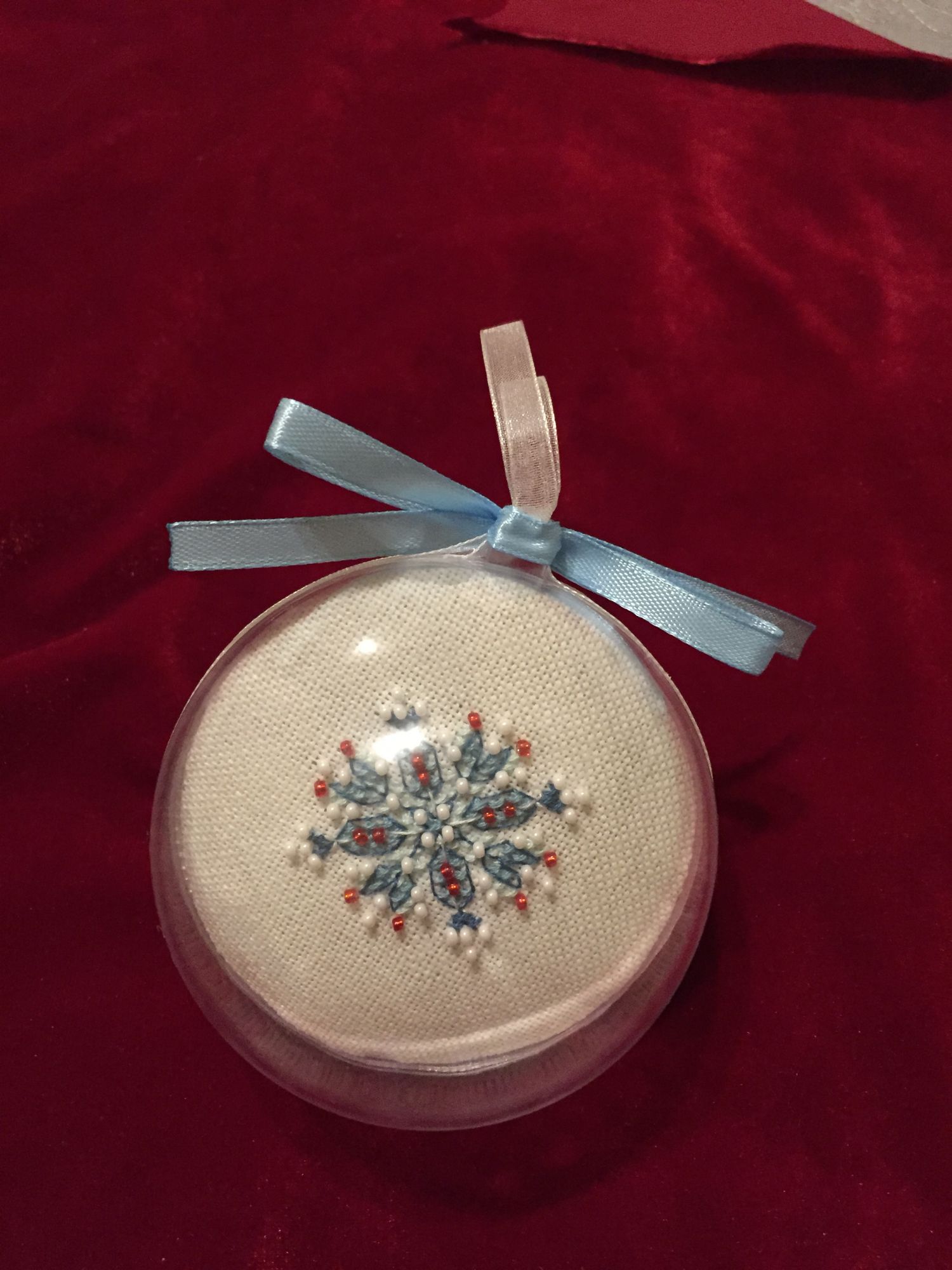 12 декабря 2018 Всем привет! И пока работа не захватила меня, выгляну из подполья и отчитаюсь. Шовчиковая авантюра подошла к концу и у меня появилось еще 2 игрушки. Колокольчик по авторской схеме Ирины Юровой. В этот раз я решила взять готовую палитру и довериться людям, которые ее подбирали. У всех палитр очень романтические названия, но я так и не смогла найти ресурс где же я откопала такой подбор цветов. Мною были выбраны совсем не зимние цвета - мне захотелось яркости и солнышка . Как всегда вначале самое скучное - границы деталек которые постепенно стали заполнятся вышивкой добавился бисер детальки вниз колокольчика я смастерила вот такую висюльку из бисера и бусин и готовая игрушка . Сборка была элементарной (благо всего три детали) и игрушка получилась какой я хотела - солнечной и яркой. Последней (седьмой!!!!) игрушкой был шарик. Я давно хотела попробовать вышить шарик и как говорится "бойся своих желаний". Опыт использования палитры мне понравился и я решила продолжать, но в этот раз запомнить название. Итак, Новогодний шар по схеме Ирины Юровой в цвете "елочка припорошенная снегом". Самый скучный этап создания границ я совместила с постепенным заполнением трех элементов в середине Схема высылалась в 3 этапа, завершаешь один этап, отчитываешься, получаешь продолжение. Итак, продолжение . После этого наступил треш - надо было вышить 12 одинаковых элементов, было тяжело, но я справилась Бисер добавил яркости и немного ближе Сборка по сравнению с вышивкой была просто легкой прогулкой и получился вот такой шар и вид сверху . Все игрушки в сборе В выходные мы уже поставили елочку и сейчас постепенно наряжаем ее игрушками. Как я писала в прошлом отчете, я решила поучаствовать в мини-лавочке желаний. И так как мой подарок уже получен я могу рассказать о процессе его создания. Как всегда вначале меня терзали муки выбора. Моя получательница хотела что-то прикладное, но лавочка была вроде как предновогодней и мне хотелось все это совместить в результате мой выбор пал на очаровательную новогоднюю бискорню-клубничку от Just Nan по имени Gingerbread Mouse или переводя на русский Пряничная мышка. Нитки и канва бежевого цвета были найдены в запасах и процесс пошел - сначала елочка потом другие элементы - глазки, ушки мышки а елочка обзавелась игрушками и гирляндой ( не обошлось без бисера и металлика) Перед сборкой я изучила все возможные МК в Интернете и все оказалось не так и страшно. Хвостик был сделан из проволоки для бисероплетения и дважды обмотан нитками. Донышко А в завершения взяла у папы леску и сделала усики, без них ведь мышка не мышка . На этом все, до конца года буду однопроцессницей и буду ковырять маки. По ним годовой план еще на сделан. Nadinka-Blondinka, Molly21, Ivi и 13 других сказали спасибо Поделиться сообщением Ссылка на сообщение