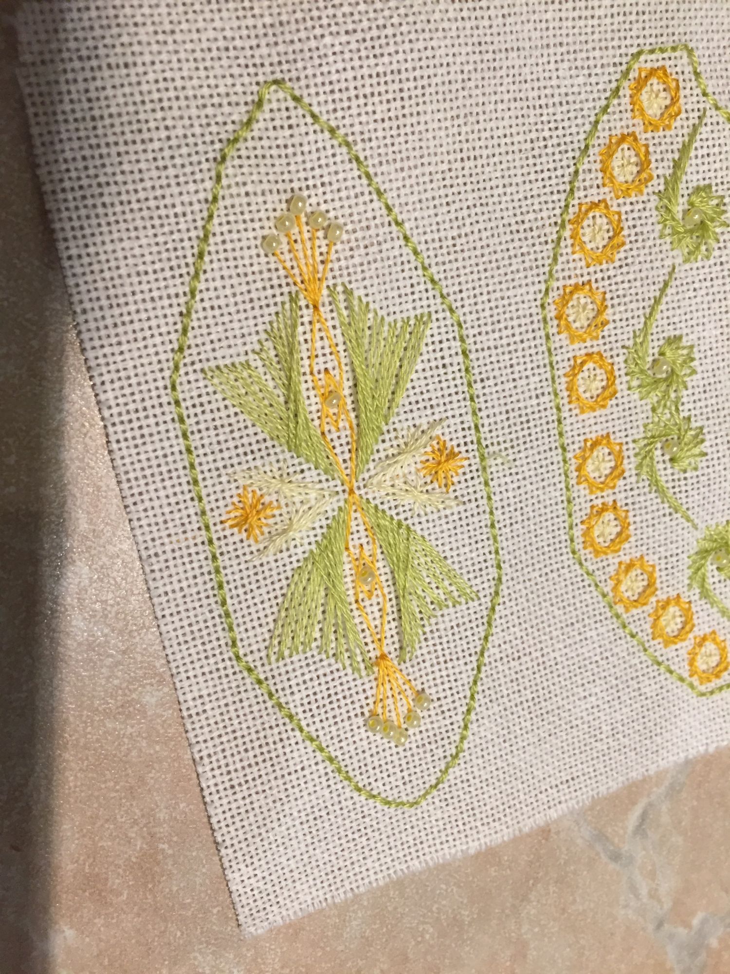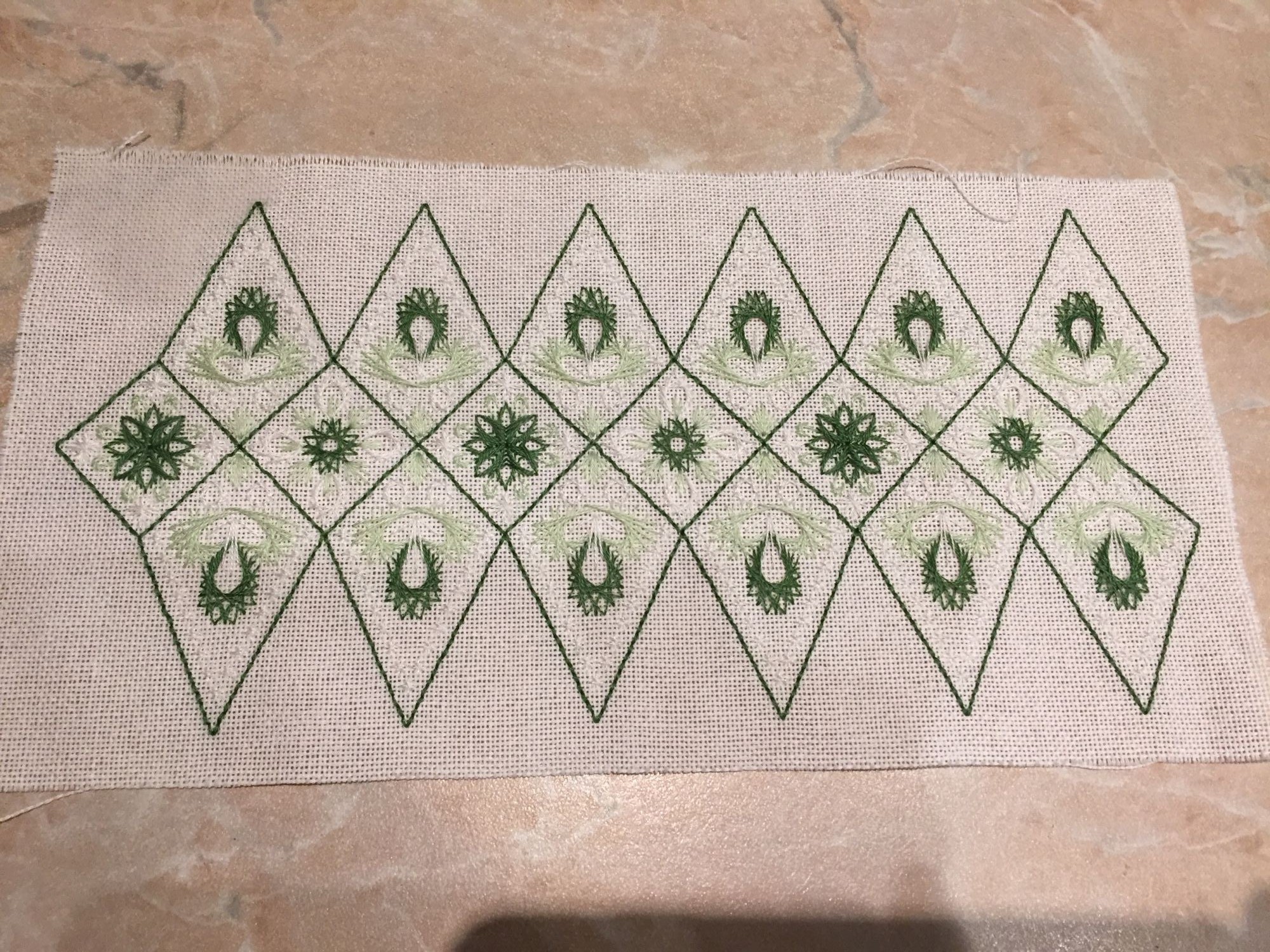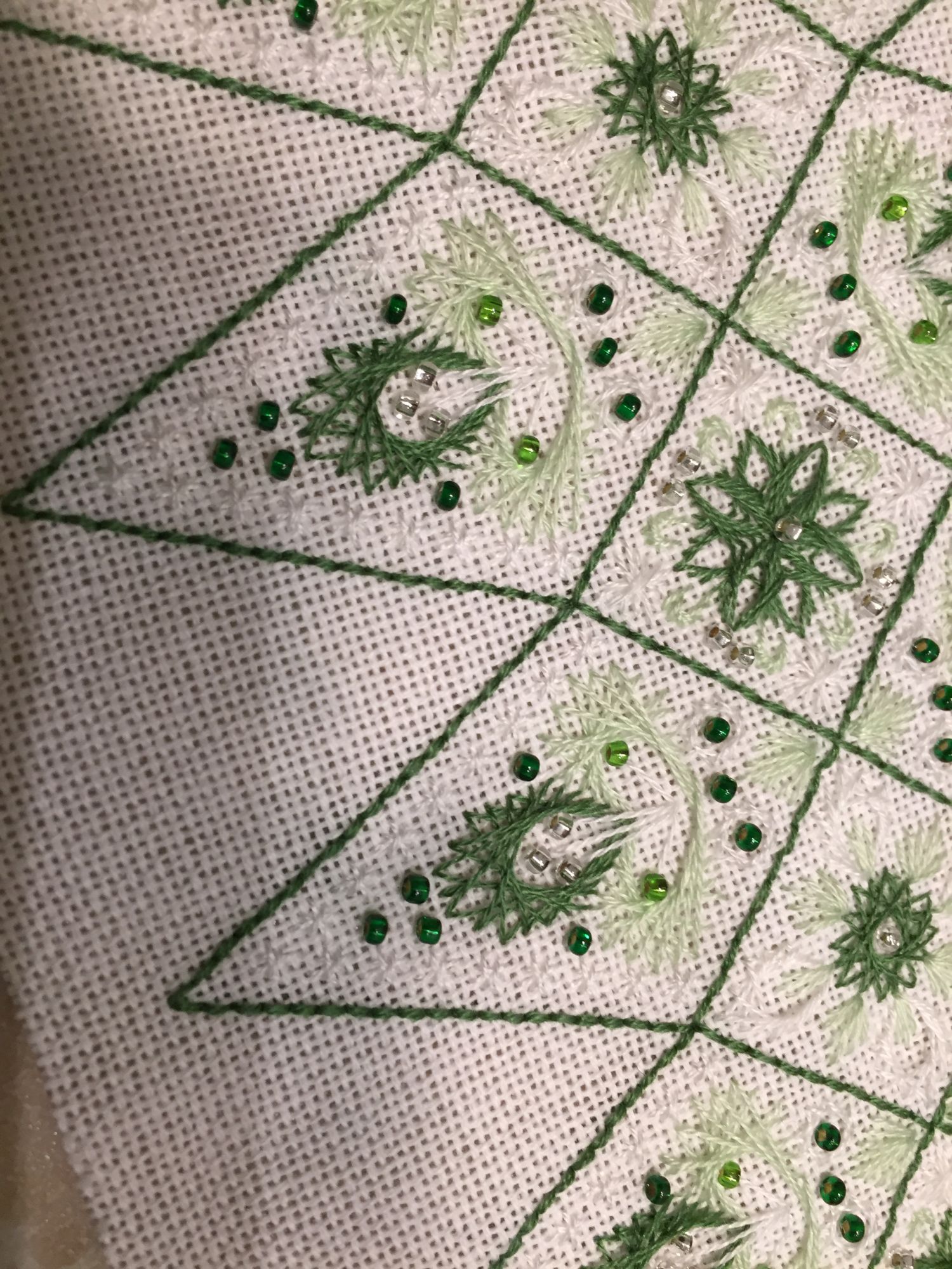 12 декабря 2018 Всем привет! И пока работа не захватила меня, выгляну из подполья и отчитаюсь. Шовчиковая авантюра подошла к концу и у меня появилось еще 2 игрушки. Колокольчик по авторской схеме Ирины Юровой. В этот раз я решила взять готовую палитру и довериться людям, которые ее подбирали. У всех палитр очень романтические названия, но я так и не смогла найти ресурс где же я откопала такой подбор цветов. Мною были выбраны совсем не зимние цвета - мне захотелось яркости и солнышка . Как всегда вначале самое скучное - границы деталек которые постепенно стали заполнятся вышивкой добавился бисер детальки вниз колокольчика я смастерила вот такую висюльку из бисера и бусин и готовая игрушка . Сборка была элементарной (благо всего три детали) и игрушка получилась какой я хотела - солнечной и яркой. Последней (седьмой!!!!) игрушкой был шарик. Я давно хотела попробовать вышить шарик и как говорится "бойся своих желаний". Опыт использования палитры мне понравился и я решила продолжать, но в этот раз запомнить название. Итак, Новогодний шар по схеме Ирины Юровой в цвете "елочка припорошенная снегом". Самый скучный этап создания границ я совместила с постепенным заполнением трех элементов в середине Схема высылалась в 3 этапа, завершаешь один этап, отчитываешься, получаешь продолжение. Итак, продолжение . После этого наступил треш - надо было вышить 12 одинаковых элементов, было тяжело, но я справилась Бисер добавил яркости и немного ближе Сборка по сравнению с вышивкой была просто легкой прогулкой и получился вот такой шар и вид сверху . Все игрушки в сборе В выходные мы уже поставили елочку и сейчас постепенно наряжаем ее игрушками. Как я писала в прошлом отчете, я решила поучаствовать в мини-лавочке желаний. И так как мой подарок уже получен я могу рассказать о процессе его создания. Как всегда вначале меня терзали муки выбора. Моя получательница хотела что-то прикладное, но лавочка была вроде как предновогодней и мне хотелось все это совместить в результате мой выбор пал на очаровательную новогоднюю бискорню-клубничку от Just Nan по имени Gingerbread Mouse или переводя на русский Пряничная мышка. Нитки и канва бежевого цвета были найдены в запасах и процесс пошел - сначала елочка потом другие элементы - глазки, ушки мышки а елочка обзавелась игрушками и гирляндой ( не обошлось без бисера и металлика) Перед сборкой я изучила все возможные МК в Интернете и все оказалось не так и страшно. Хвостик был сделан из проволоки для бисероплетения и дважды обмотан нитками. Донышко А в завершения взяла у папы леску и сделала усики, без них ведь мышка не мышка . На этом все, до конца года буду однопроцессницей и буду ковырять маки. По ним годовой план еще на сделан. Nadinka-Blondinka, Molly21, Ivi и 13 других сказали спасибо Поделиться сообщением Ссылка на сообщение