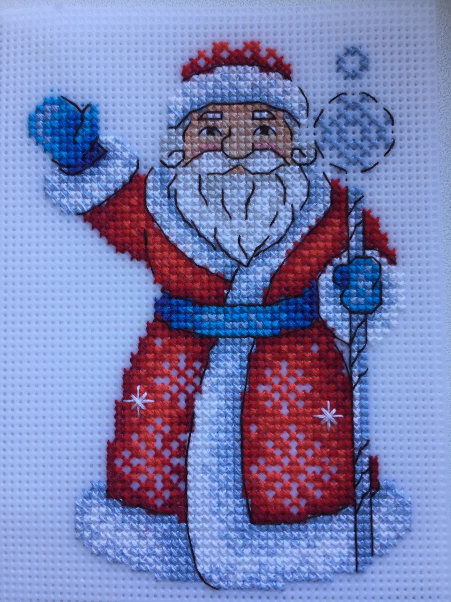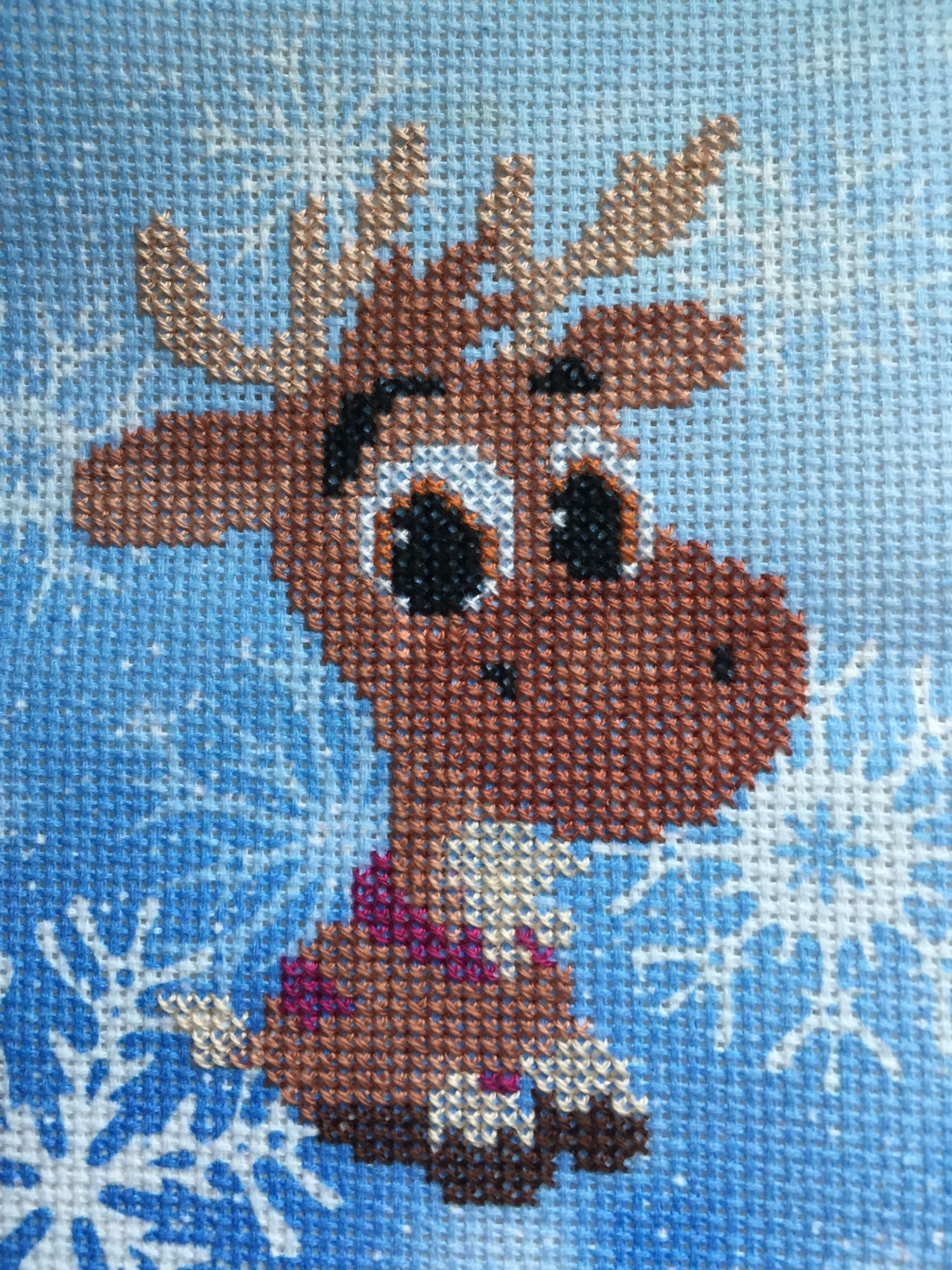 9 апреля 2019 Всем привет! Прошедшие дней 10 для выдались на редкость суматошными. Сначала заболел Макар, причем соплей и кашля почти не было, на горлышко он не жаловался, но температура упрямо держалась у отметки 39,5. Сбивалась на 4-5 часов и по новой. Пришлось пить АБ. Только сынульке стало лучше как пришла ошеломляющая новость из детского сада - он закрывается на ремонт на месяц. Сообщено об этом было за пару дней до начала ремонта. Пришлось слезно просить заведующую предоставить замену садика на период ремонта. Вчера пошли в новый садик, вроде все нормально играл с другими детками, кушал и спал. Я очень переживала - в этот садик ходят детки постарше. Нас определили в группу 3-4 леток, а нам всего 2,8. Теперь о вышивальном. Котик таки обзавелся вторым глазиком: Было стало У дедули готова одна половина и начата вторая А еще я тоже стала жертвой "гирляндомании". Я положила глаз на маленькие бесплатные схемки на зимнюю тему: Вышить их планирую на дизайнерской канве от МП-Студии - у меня остался кусочек канвы со снежинками и голубая канва в горох. Итак, мое апрельское начинание - первый элемент гирлянды - олень Свен по схеме Марии Бровко: Начало положено: Кисуля, Фро-J, AngelN и 18 других сказали спасибо Поделиться сообщением Ссылка на сообщение