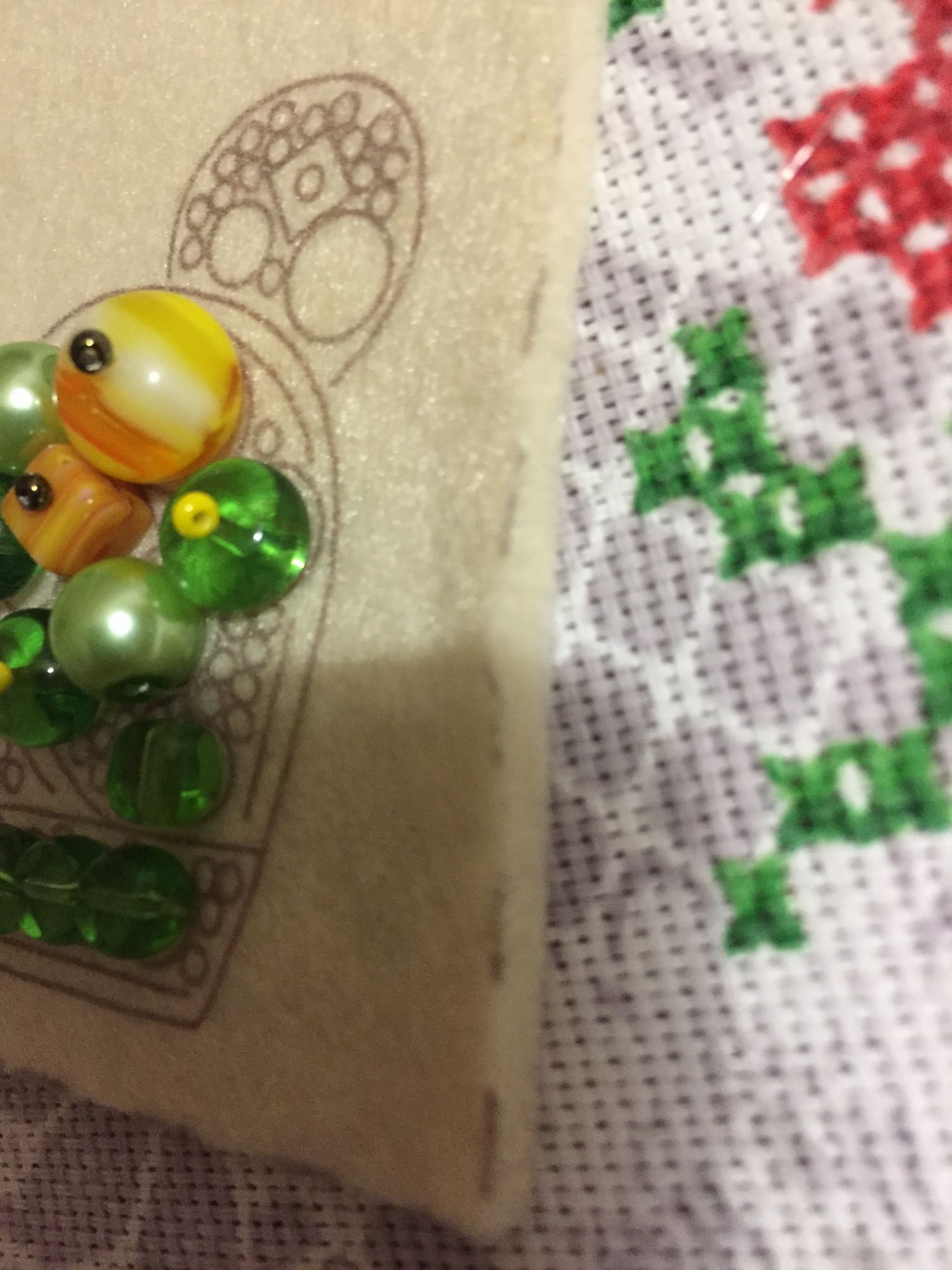 24 сентября 2019 Всем привет! Когда я пару недель назад выбирала смайл с листочками чтобы всех поприветствовать и поздравить с осенью я и подумать не могла что к следующему отчету мне понадобится смайл со снежинками. У нас в выходные летел снег!!! 21 сентября! В средней полосе! Сейчас мое состояние можно описать так: На улице температура колеблется от +2 до +5, периодически летит снег с дождем, а отопление так и не дали (причем не дали даже в детсад). День Х сегодня, но пока глухо. Из моего рабочего кабинета хорошо видно трубу нашей котельной - я ее гипнотизирую второй день. Но дымком она меня радует примерно раз в два часа на пять минут. Я победила пятый лист маков. Остался еще один. Было Стало И как предполагалось я немного размножиласьИбо негоже гайке быть зеленой. Продолжение новогодних миниатюрок - "Подарок" по схеме Анны Петуновой Пока вышито Основа - дизайнерская канва в горох, нитки - смесь Гаммы и ДМС, Моя давняя хочушка - "Василек" по схеме Екатерины Гафенко Начало положено Основа - Линда молочного цвета, нитки - смесь Гаммы и ДМС. Меня давно не отпускает мысль сшить ролл для хранения и переноски вышивок и мне кажется что ролл для вышивок должен непременно быть с вышивкой. А этот василек просто создан для него. Для ролла были приобретен набор из двух тканей-компаньонов в голубых тонах - одна ткань в цветочек, вторая в клеточку. Ткань в клеточку использована мной для создание карусельки с мышатами. Поэтому я решила для начала вышить василек, а потом решу для чего его использовать. Мною была выиграна конфетка от Аси-Каори - Набор для изготовления броши "Яркий кактус" от Crystal Art. Я очень люблю такие приятные мелочи. Поэтому как только забрала посылку на почте стала ее потрошить. В набор входят 2 кусочка фетра разной толщины, игла, чешский бисер, бусины, застежка, цветная схема и инструкция: . Пробежав инструкцию по диагонали, я решила что бисер и бусины я пришиваю не впервые и по ходу разберусь. Фетр, который является основой для броши достаточно толстый - 5-6 мм точно Фетр размечен где что пришивается , где отдельный бисер, где линиями, даже даны рекомендации каким швом что лучше пришивать. Процесс пошел По схеме край вышивается красивым блестящим бисером графитного цвета, я решила (зачем же читать инструкцию?) что он нужен для скрепления деталей, поэтому выполняется в самом конце и приклеила картон к обороту фетровой основы На этом этапе я решила все-таки еще раз ознакомится с инструкцией и увидела, что детали сшиваются бисером салатового цвета, поэтому вышила недостающий бисер , приклеила на картон застежку, вырезала фетр для задника согласно инструкции (вырезала маловато - надо было сделать запас в 1-2 мм с линии отреза) Меня очень удивил тот факт, что надо было сделать только вертикальные надрезы для застежки, на мой взгляд разрез должен быть с трех сторон, чтоб красиво прикрыть металлическое основание застежки. Я это не сделала, поэтому основание прикрывала отдельным малюсеньким кусочком фетра. Завершающий этап - сшивание толстого фетра основы (к которому пришиты бусины и бисер) и тонкого фетра закрывающего все стежки. В шов вшивается салатовый бисер. Готовая брошь и обратная сторона . Процесс изготовления броши мне понравился - я очень люблю работать с бисером и бусинами, но впредь буду думать на пару шагов вперед, прежде чем лишний раз щелкнуть н