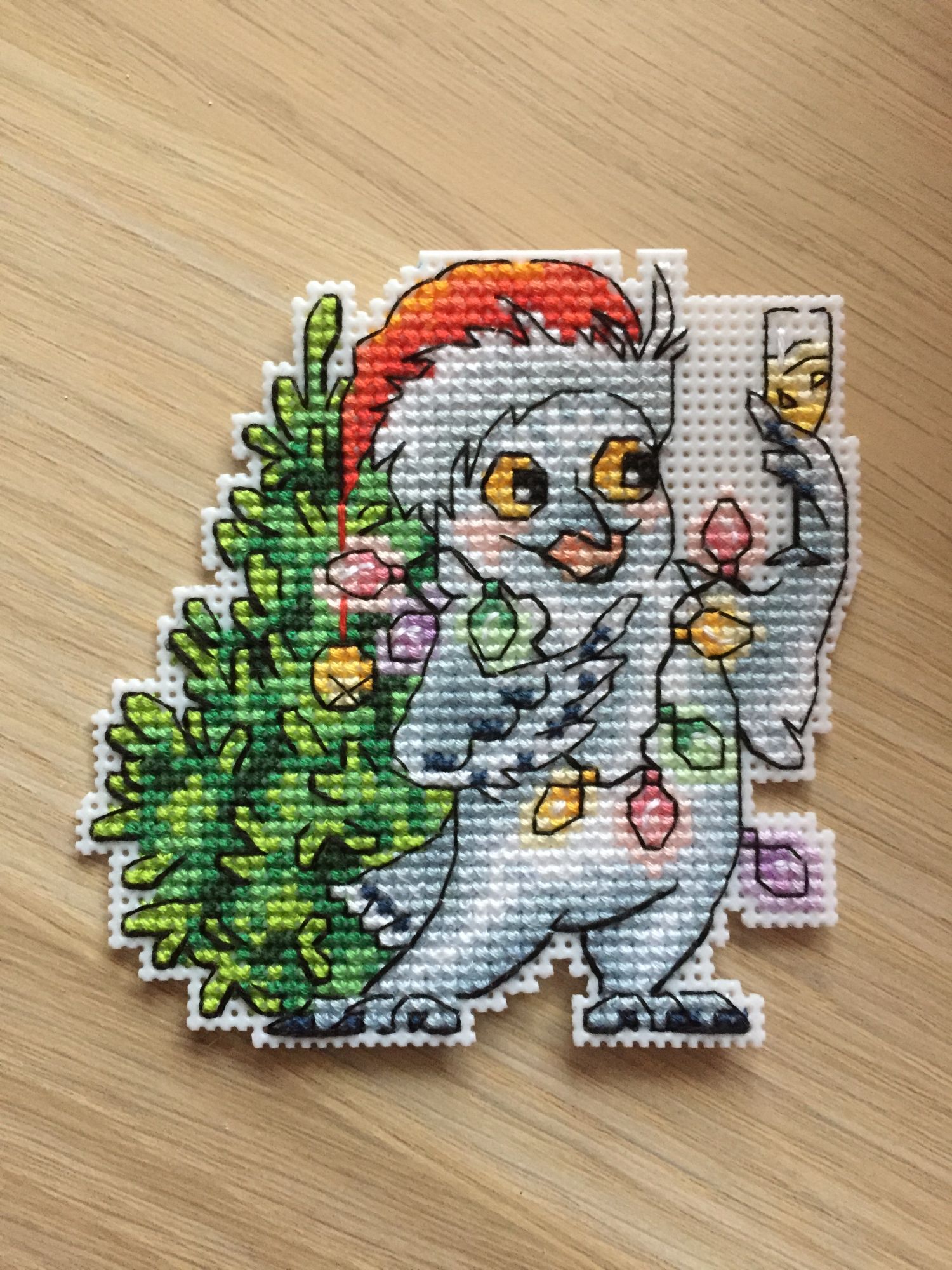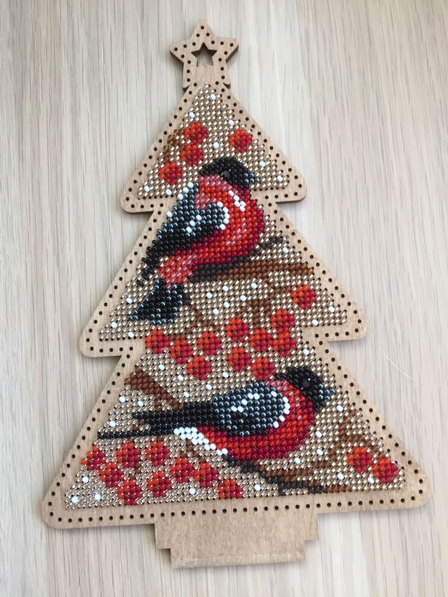 21 декабря 2021 Всем привет! Мой декабрьский отчет начну с декабрьского старта. Им стал Олень от Фрузелка с романтическим названием "Серебряное копытце". Крестиком по дереву я еще не вышивала, то есть у меня дебют. Заготовка вышивается с одной стороны, а задник закрывается ветром. Комплектация выглядит следующим образом:и начало от которого я в полнейшем восторге Скорее всего буду вышивать по цветам, цвет который я начала доминирует. В Снегирях от волшебной стороны у меня готова одна половина: Было стало Нежно люблю снегирей!Эти определенно будут у меня в любимчиках. Воодушевленная одной половинкой я включила форсаж, который Вин Дизелю даже и не снился и начала вышивать вторую половинку, но довольно быстро поняла, что завершить к этому НГ ее у меня вряд ли выйдет, а удовольствия от процесса я не получаю никакого и бросила эту затею. На данный момент вышито Белый бисер ложится не очень ровно IMG_3186.JPGно мне кажется, что даже круто - создается иллюзия хорошенько припорошенных снегом елочных ветвей. Первую половинку я поставила в основу и определила в прихожую (не для гаечки) и у меня закралась крамольная мысль поискать подставку и из одной игрушки сделать две, а задники прикрыть фетром. Мое ноябрьское начинание - шар "Лиственница" завершен. Было Стало с бэком и пришитый к деревянной основе вид сбоку Мой сюрприз, который я шила в ноябре, преодолел не одну тысячу километров и обосновался во Владивостоке, и стало быть его можно рассекретить. В этой году мой выбор пал на Сову "За Новый Год" по схеме Катерина Бесперстовой. Основа - пластиковая канва, нитки ДМС по ключу. Вот такая немного выпивающая птичка у меня получилась: Фото с подвесом я не нашла. Всех в наступающим Новым Годом! Постараюсь в каникулы подвести вышивальные итоги 2021. Ксен40, Гало4ка, Камма80 и 11 других сказали спасибо Поделиться сообщением Ссылка на сообщение