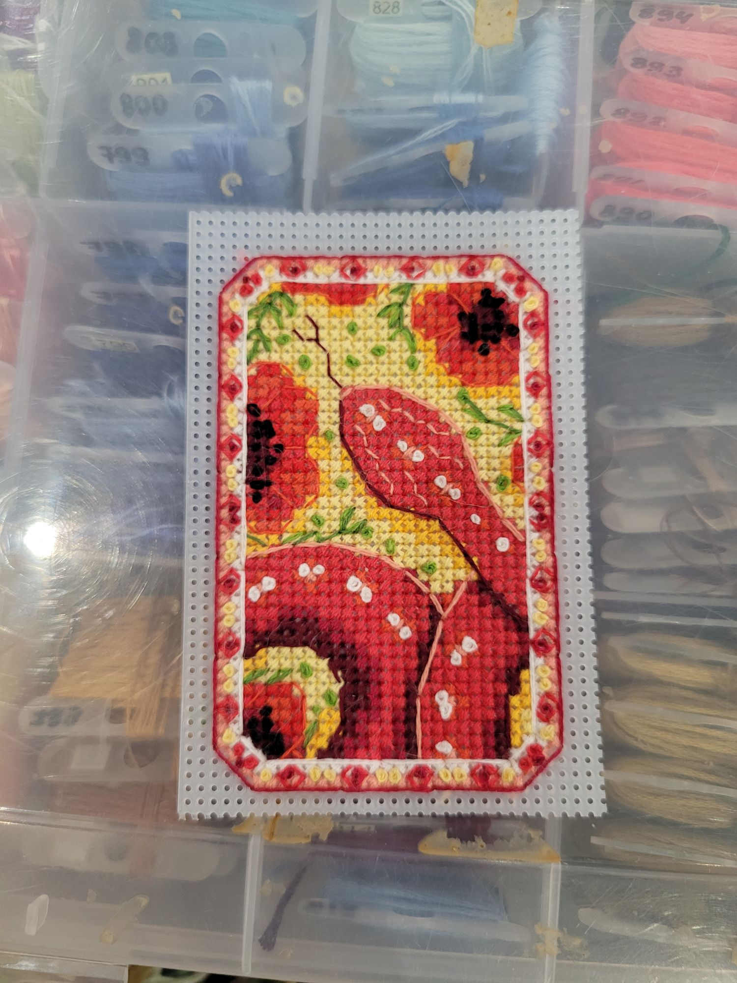 17 августа Давненько не было насыщенной недельки, чтоб прям хорошенько продвинуться и побольше показать. А в этот раз внезапно 8,5к нашито, 2 финиша, 2 старта, прелесть же, ну Поехали по порядку: 1. Флоренция. Уже понятны очертания города. И, да, я нагнала график, хотя это казалось практически невозможным (вроде 11к отставания было) 2. Гальштат. Скромненький прогресс, но лучше, чем ничего. минус пробел и плюс к синей воде 3. Пустыня. Тоже прирост скромный, но имеющийся 4. Рыбачок. Более-менее что-то вырисовывается. Даже без бэка 5. Утро нового дня. Половина елки, чуть орнамента и искорок плюсом 6. Пиалы. Практически финишная прямая перед подвыпертами. Ура! А теперь самое интересное. Финиши! 7. Мышата в колокольчиках. Изобретала я велосипед, изобретала, и ведь изобрела! Есть живые ммышиные пальчики, есть колокольчики, некоторые даже чуть более выпуклые, чем другие. Поначалу ориентировалась чётко на схему, а потом решила, что колокольчики выходят слишком светлые и теряются. То ли из-за белого фона, то ли потому что у глади другая логика. Поэтому посидела, подумала, открыла оригинал иллюстрации и стала шить по нему. Цвета остались, по факту, те же, что в схеме, но вот пропорции поменялись. Цвета стало больше. В паре колокольчиков даже подобрала ещё цвет, на поярче. Стало похоже на исходник. Итог нравится. Разве что иногда думаю, что теперь потерялась трава 8. Сова. Не слишком выездное лето вышло, а это именно был процесс "на выезд". Добивала уже так. Добила и даже собрала. Все ещё не понимаю, как на превью перья на голове гораздо чётче, чем у меня. Впрочем, так тоже вроде хорошо) Ииии старты! 9. Змейка июнь, М.Рудаковская. Пятая змейка в серии, маковая. Яркая и красивая. И даже скоро будет готова, наверное 10. Петя 2, А.Окнеас. Второй птыц в пару предыдущему. чтоб потом разом и оформить Вроде бы было что-то ещё по мелочи, но пока рановато показывать. Шьем дальше! Adamiss, Забава_, Хозяйка смешных зверей и 5 других сказали спасибо Поделиться сообщением Ссылка на сообщение
