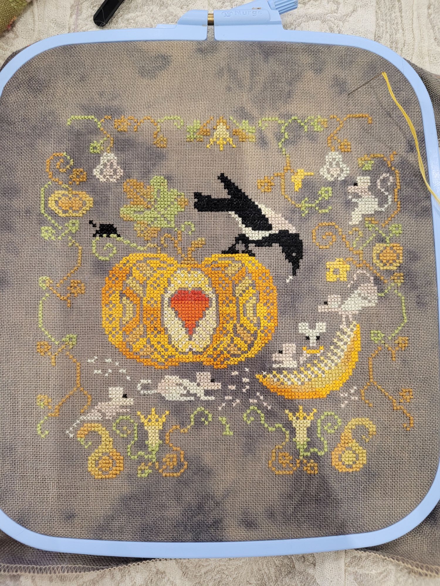 12 октября Как и обещала, продолжение банкета, или часть 2 сдвигов по фазе 1. Вина Франции. Сдвиг кажется небольшим, но по факту я исправила приличный косяк с листочком. И добавила чуть-чуть рамочки 2. Пион. Не помню, честно говоря, что я в нем показывала последний раз, но вроде как пора бы что-то показать сейчас. Там тоже был косячок на где-то 100х, которые отшились не тем цветом. Исправлено 3. Подсолнухи и лаванда. Кулечек фактически готов. Еще чуть-чуть и снова погрузимся в эээээксперименты с непредсказуемым пока что итогом 4. Огни старого города. Приросла синяя плямба. Не то чтоб много, но пыль стряхнуть с него пора, как по мне 5. Золотые колоски. Прошу пардону, шерсть честно пыталась убрать. Как и по раз 5 за отчёт на 500х. Но почему-то именно в этот раз ткань особенно любит её притягивать, даже на драконе так не было. А так - уже приличный кусок фона будто бы готов 6. Манул, Совиный лес. Новый старт. Красив, усат и пушист, хотя пока есть только кусок травы. 7. Венок Мабон, А.Берг. Ещё стартик, осенний и изобильный. Будут подвыперты 8. Символ удачи, А.Ершова. И еще стартик. Отдыхалочка по бумаге (как давно я этого не делала!). Ожидаю очаровательный результат Вроде все. Но это не точно, а то развелось процессов, сама уже путаюсь П.С. Я теперь со станком. Даже с двумя. И оооо как это круто! Руки свободные, шить удобнее, кайф да и только! Проворные лапки, Alinia, nogres и 5 других сказали спасибо Поделиться сообщением Ссылка на сообщение