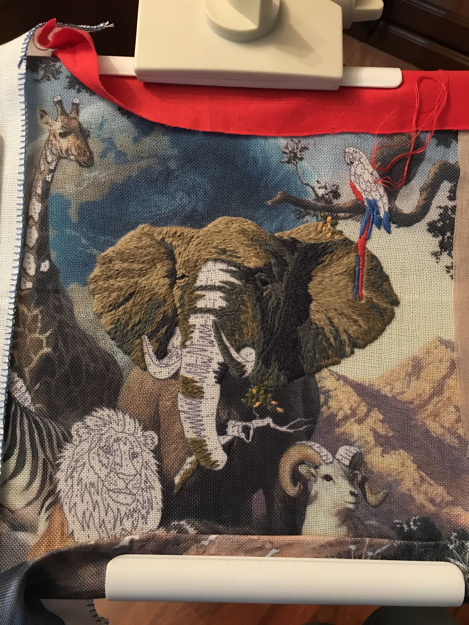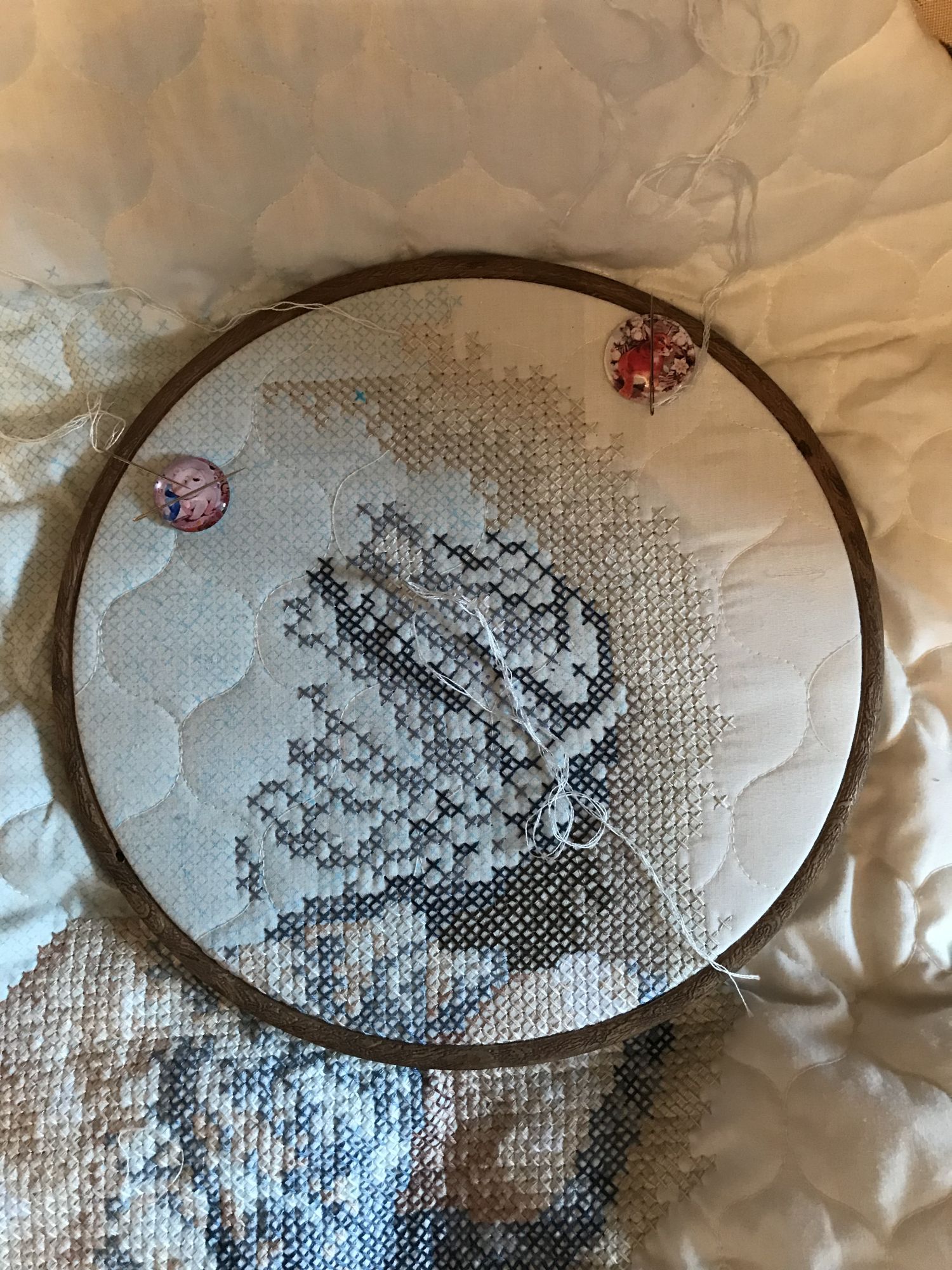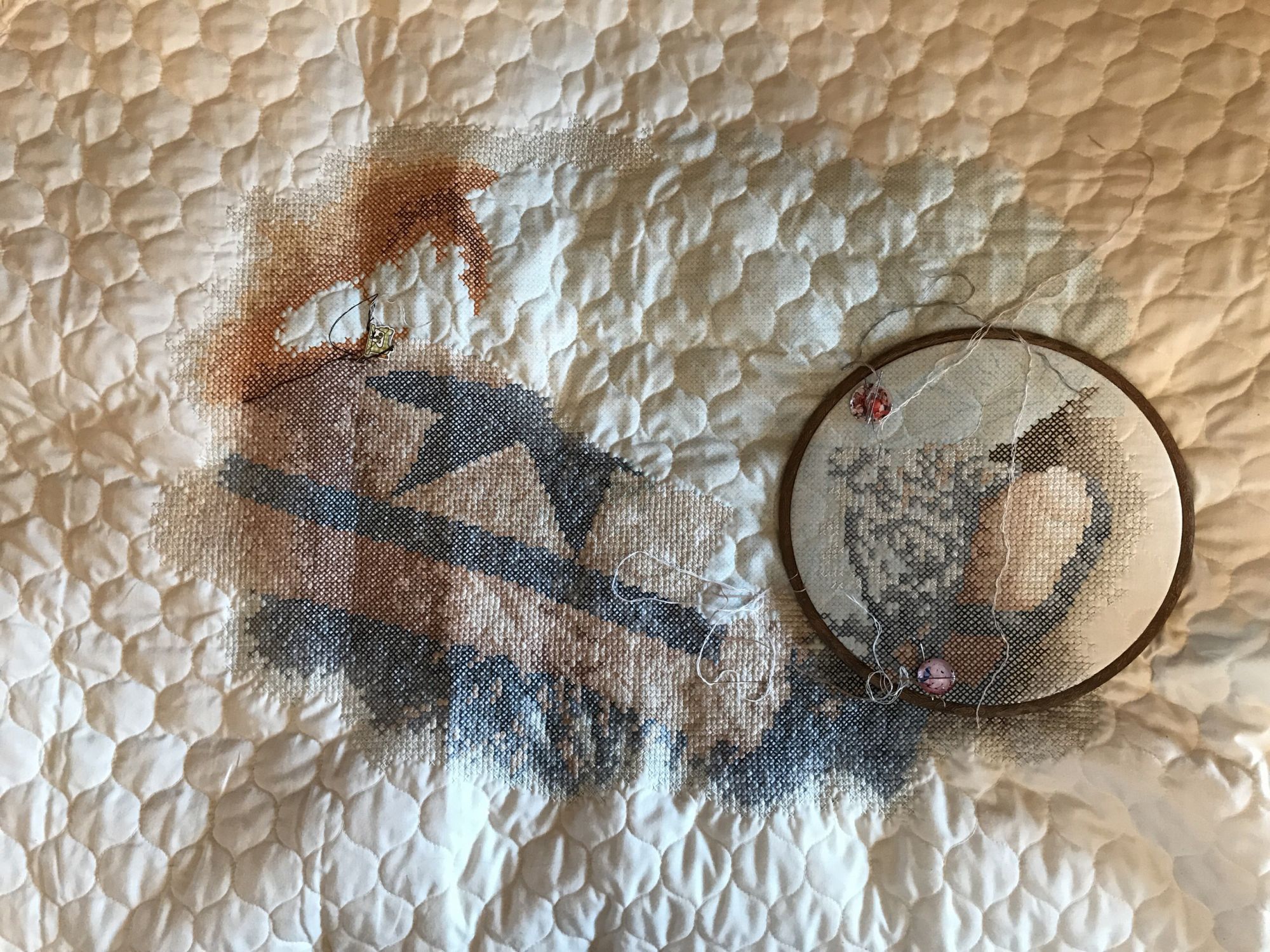 30 января 2019 Всем отличного дня. А я вновь с небольшим продвижением. Все же буду пытаться появляться здесь регулярно и отмечать измененения. Хоть месяц и выдался достаточно суматошным, я довольна. Наконец-то хотя бы один из долгостроев взят в работу и есть шанс, что скоро я его доделаю. Также из приятного не могу не отметить покупку красивых тканей для вышивки (позже добавлю фото), все же хотела попробовать вышивку на необычных цветах, так что теперь есть розовая и серая равномерка в запасах. Хочу на розовой попробовать вышить Алису. Я думаю получится достаточно нежно и я искренне надеюсь, что работа не потеряется в этом цвете. Также неожиданно получила ещё одного прекрасного тигра в свою маленькую коллекцию. Я до сих пор в противоречивых чувствах, с одной стороны дизайн просто волшебный, с другой этот набор просто отображение самых сложных для меня моментов в вышивке (чёрная ткань плюс частично монохромные переходы). Но думаю все же больше я восхищаюсь, тем как человек смог угадать. Также из приятного, в январе, я все же забрала очень давний заказ с венком. Было много раздумий из-за него, так как изначально планировался этот венок в виде глади, но с ним оказалось много проблем и я приняла решение, что хочу классический и наиболее известный в исполнении крестом. а вот и сами изменения на одеяле. =) всего лишь нудно было перейти на пяльца, на станке его слишком неудобно вышивать. Наталья2013, Galadriel, Desha и 3 других сказали спасибо Поделиться сообщением Ссылка на сообщение