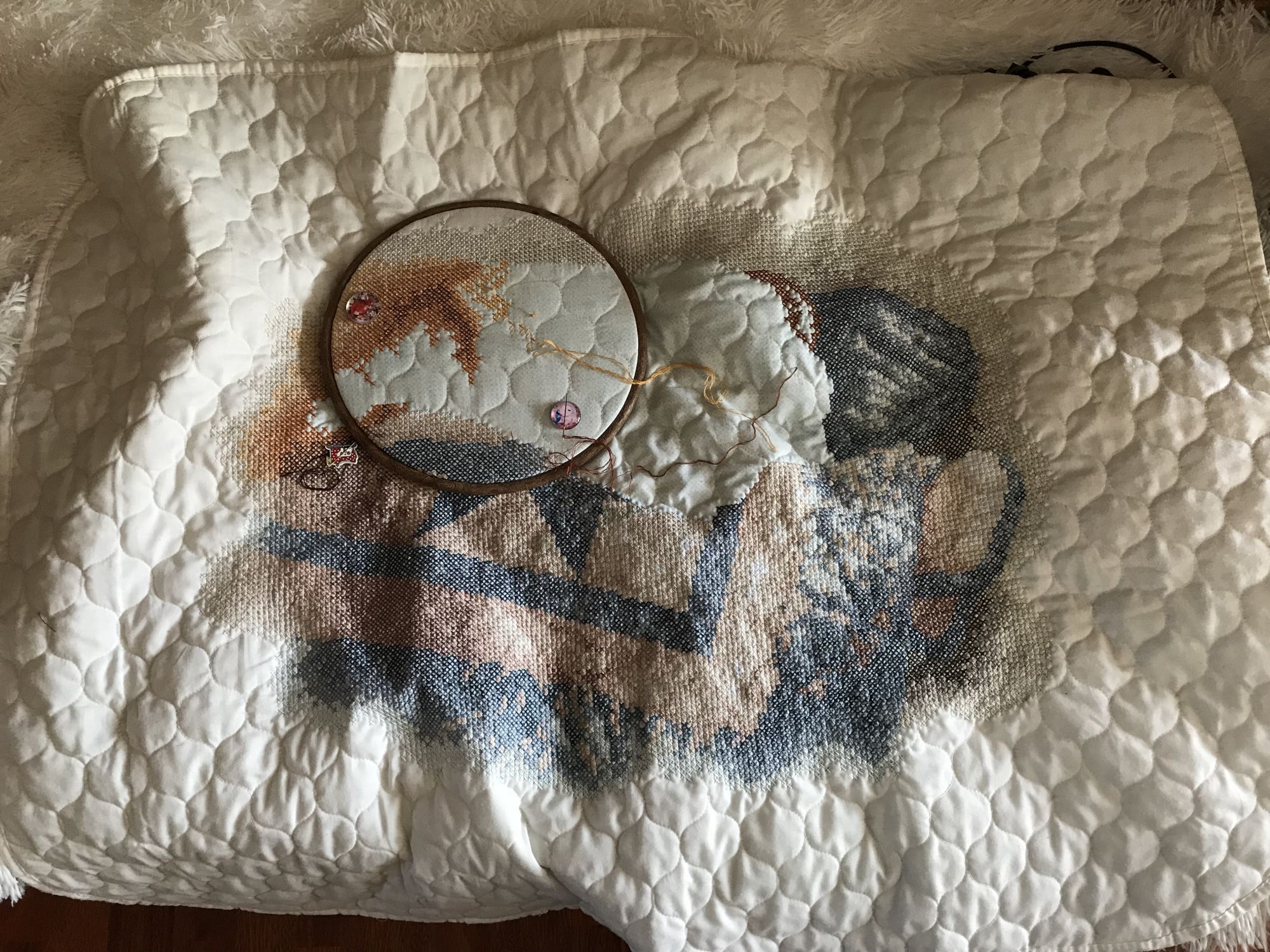 16 марта 2019 Всем доброго дня. Я вновь здесь и с продвижением. Наконец-то я закончила крестик по одеялу на котором спит пёс. Теперь осталась небольшая часть фона, подушка и сам лабрадор. =) Наталья2013, Galadriel, Дикая белочка и 3 других сказали спасибо Поделиться сообщением Ссылка на сообщение