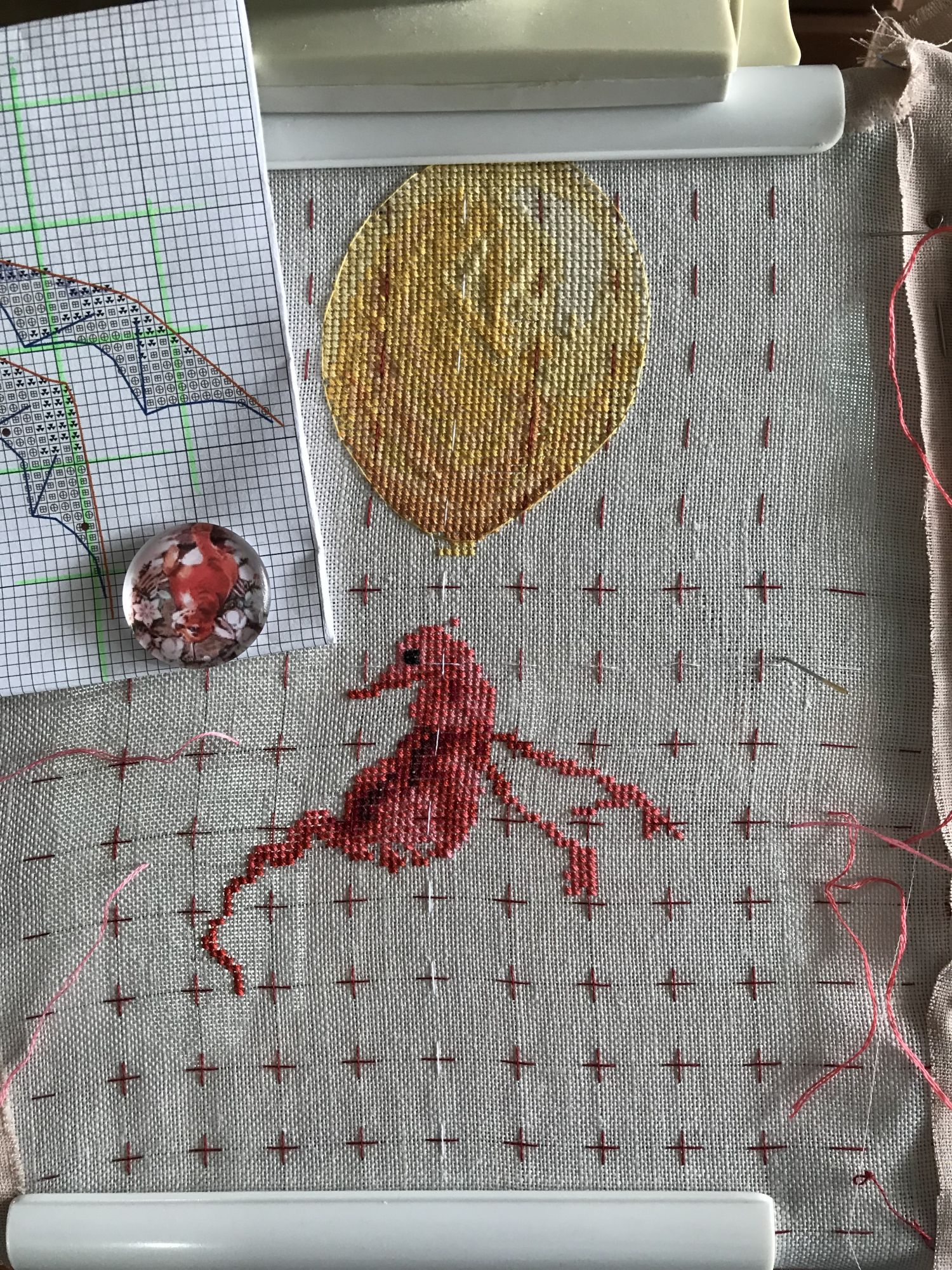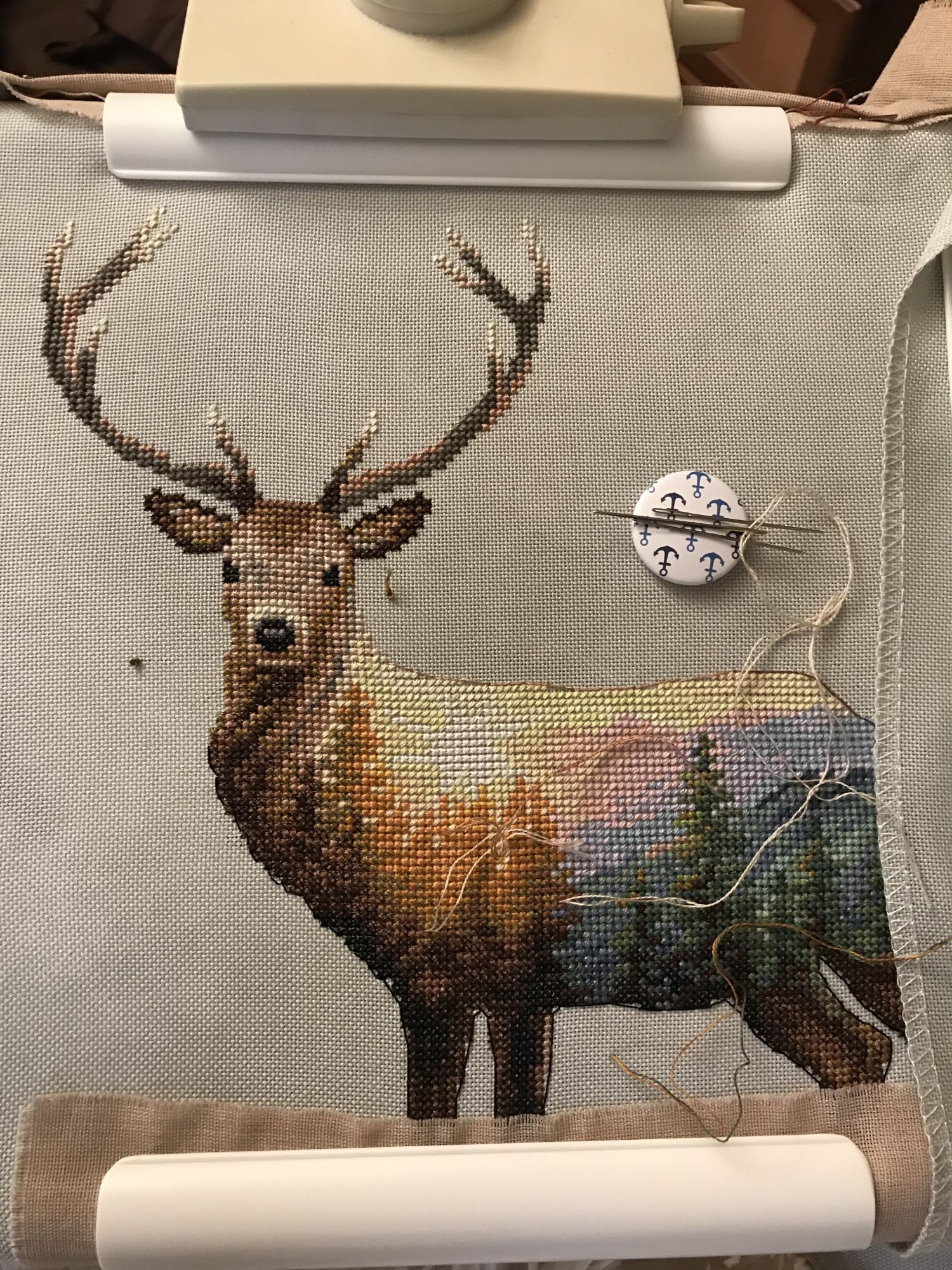 17 февраля 2020 Прогресс показываю не так часто, как хотелось бы. Хотя олень почти готов. Очень приятный и простой процесс. На груди есть немного шахмат, но они не трудные и в итоге смотрится впечатляюще. Большая часть тушки вышивается полукресом в 3-4 сложения. Надеюсь за сегодня закончить полукрест, отбэкать тушку и начать вышивать мордочку и рога. Kattrielle, Egelia, Грёза и 2 других сказали спасибо Поделиться сообщением Ссылка на сообщение