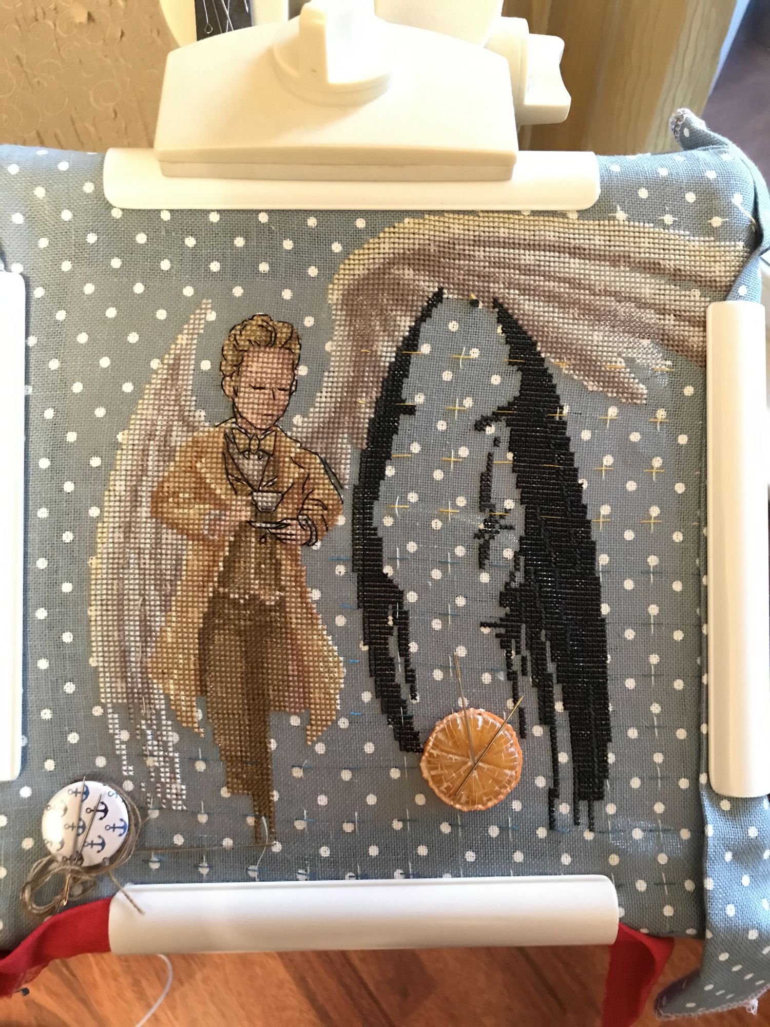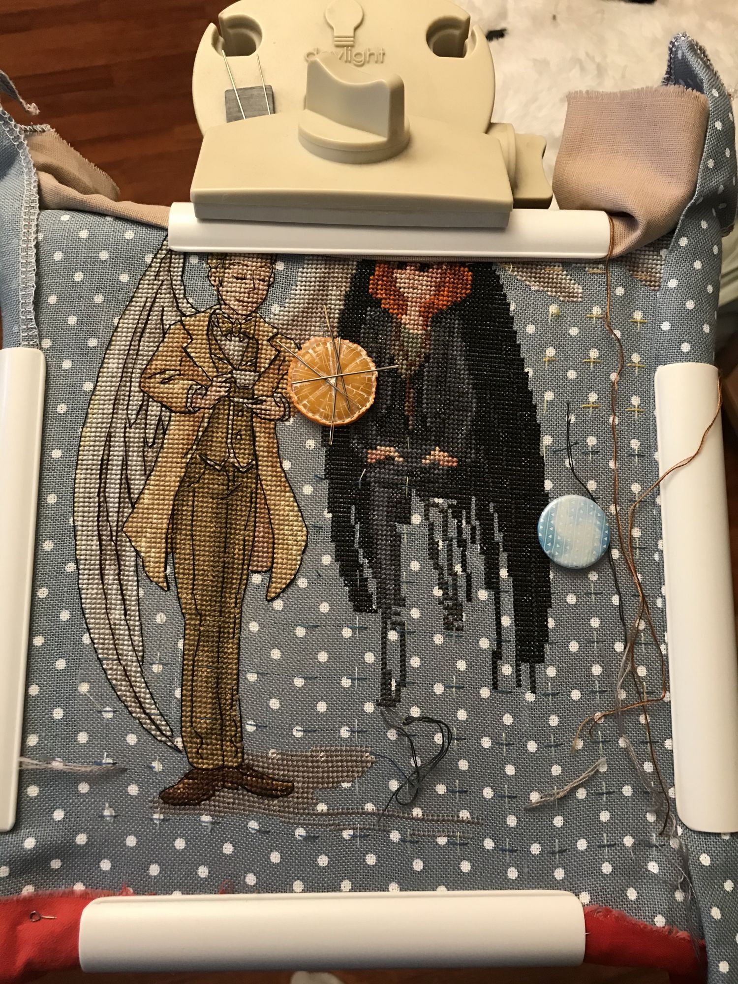 4 февраля 2020 Всем доброго дня. Наконец-то добралась до своей темы. За то время, что отсутствовала вышила несколько схем. К сожалению, фотографий почти не осталось. Пара дракончиков от Анны Шишкиной «Кофе? Где?» и «Профессионально похищаю принцесс». Шикарно прорисованные схемы, удобные и понятные. Также наконец-то закончила героев Благих знамений от Марии Бровко. Весьма удачная схема. Продуманные переходы и удобная схема. Вчера начала Deer Scene. Поменяла канву на равномерку. Неприятным сюрпризом оказалось то, что схемы у dimensions теперь глянцевые. Схема бликует и на ней неудобно отмечать вышитое =( Грёза, Kattrielle, Egelia и 2 других сказали спасибо Поделиться сообщением Ссылка на сообщение
