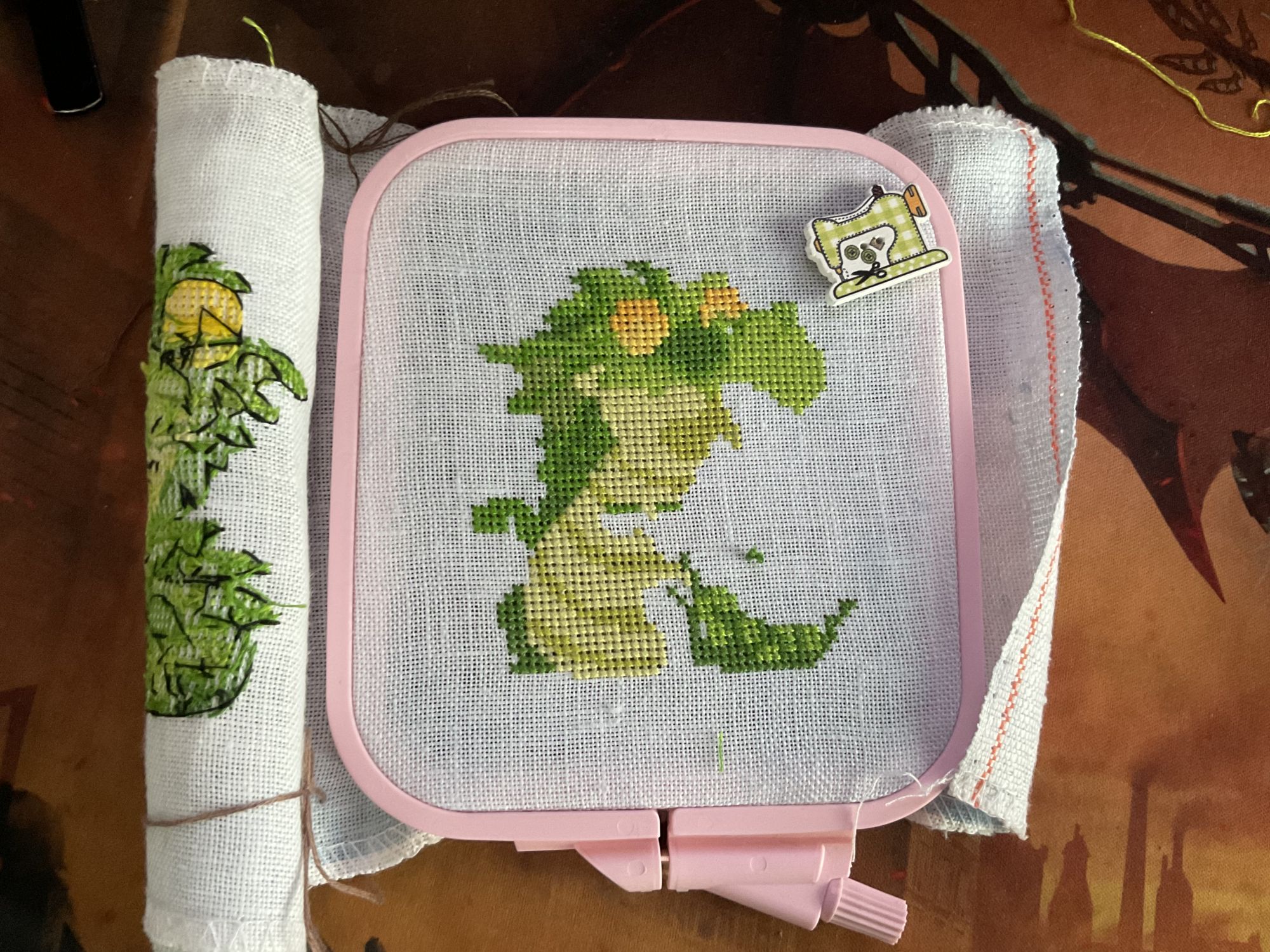26 июля 2022 25.07.2022 в 23:50, Грёза сказал(а): С финишем, Лиз! Очень красивые кото джентльмены у тебя получились! Какие теперь планы/хочушки или внезапно появившийся фаворит?)) Спасибо, из планов теперь добить хотя бы один из хвостов. Собственно, принесла одну новую гаечку, прошу сразу создать и позеленить её. Давно собиралась дошить купон с Чушуями от Ани Шишкиной, наконец-то лень была побеждена и последний Чушуй готов. Справилась за 8 дней очень ленивой вышивки. Весь купон не в гайку. Все же решилась дошить свой universal kinship. Долго думала на какой из основ продолжить (не в гайку) Выбрала ту, где вышита цапля, так как основу со слоном сильно повело и попугая перекосило. Вышила листья, попугая и жирафа. в гайку Надеюсь постепенно одолеть хвост и увидеть готовую работу. Грёза, Хозяйка смешных зверей, Marusya1978 и 2 других сказали спасибо Поделиться сообщением Ссылка на сообщение