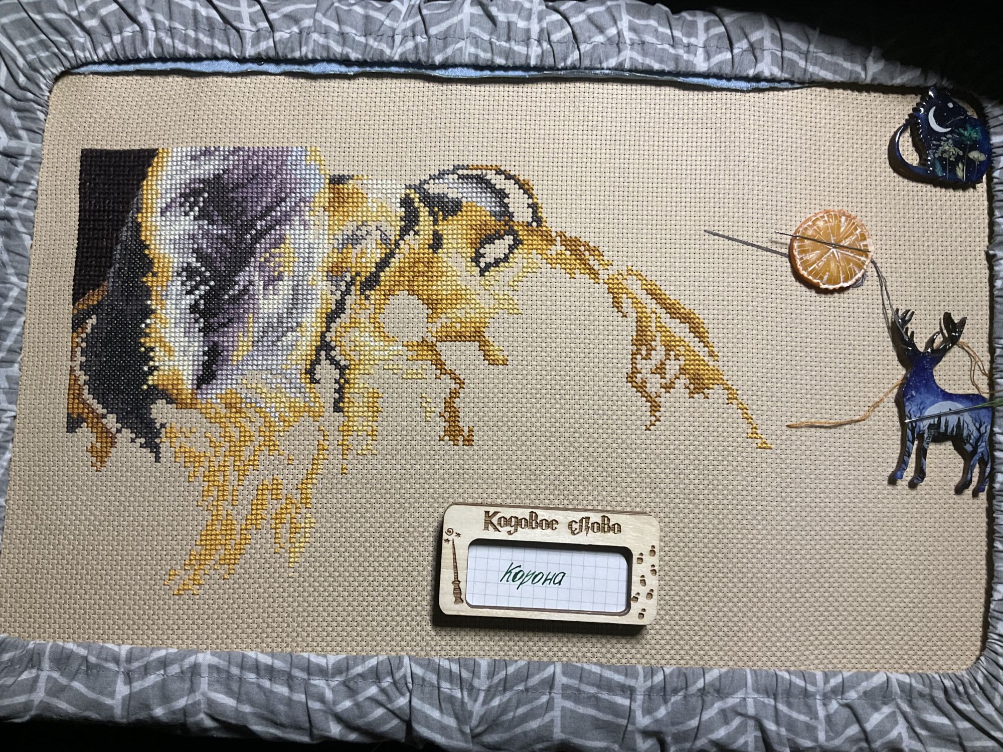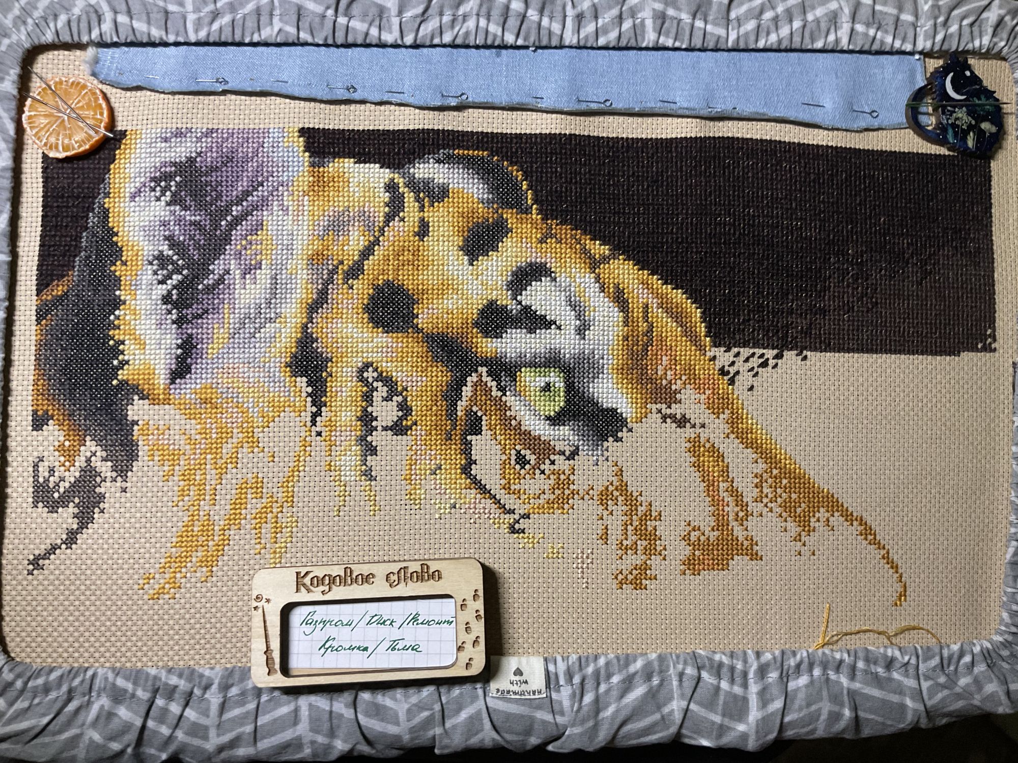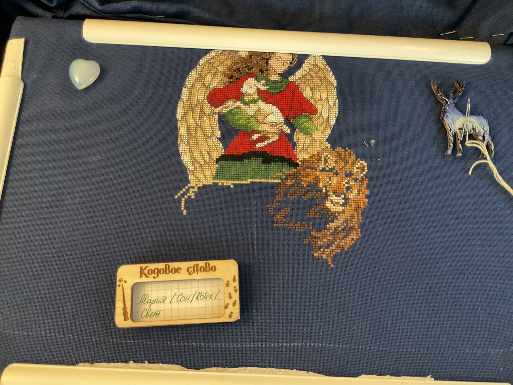 21 января 2023 Давно не показывалась в теме, тем не менее активно продолжаю шить. Начнём с маски железного человека от Славиной. Это была первая проба деревянной основы и думаю последняя. Шить на дереве не понравилось. Прошу создать и сразу позеленить гайку. Далее, достала свой долгострой с ангелами. Мне подкинули на него сагу, поэтому вышивать стало приятно, все же разбираться в значках на мелкой схеме не особо удобно. Продвинула ангелов совсем немного, планирую взять их основным процессом после тигра. И наконец-то величественный тигр. Его вышиваю медленнее чем хотелось бы, но все же он вышивается больше остальных. На данный момент готово 30%. Идёт очень легко, разве что несколько скучно шить фон. Kattrielle, Путешественница, PiyabJoe и 5 других сказали спасибо Поделиться сообщением Ссылка на сообщение