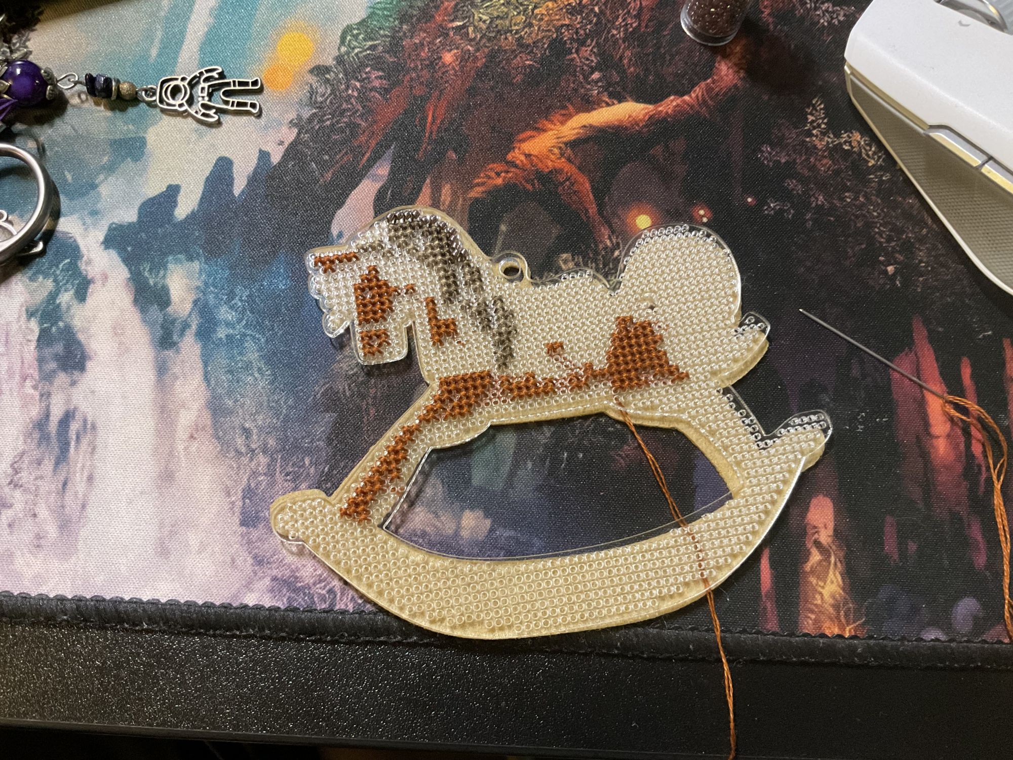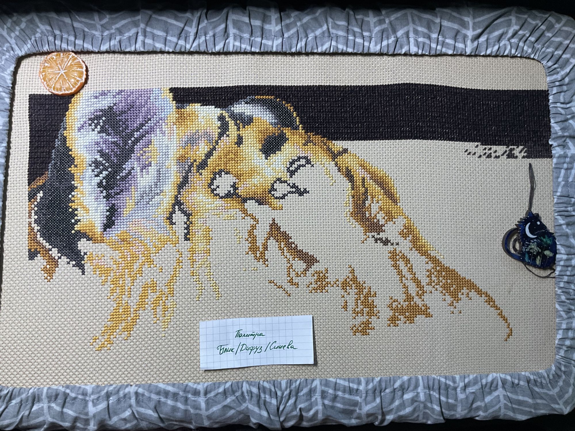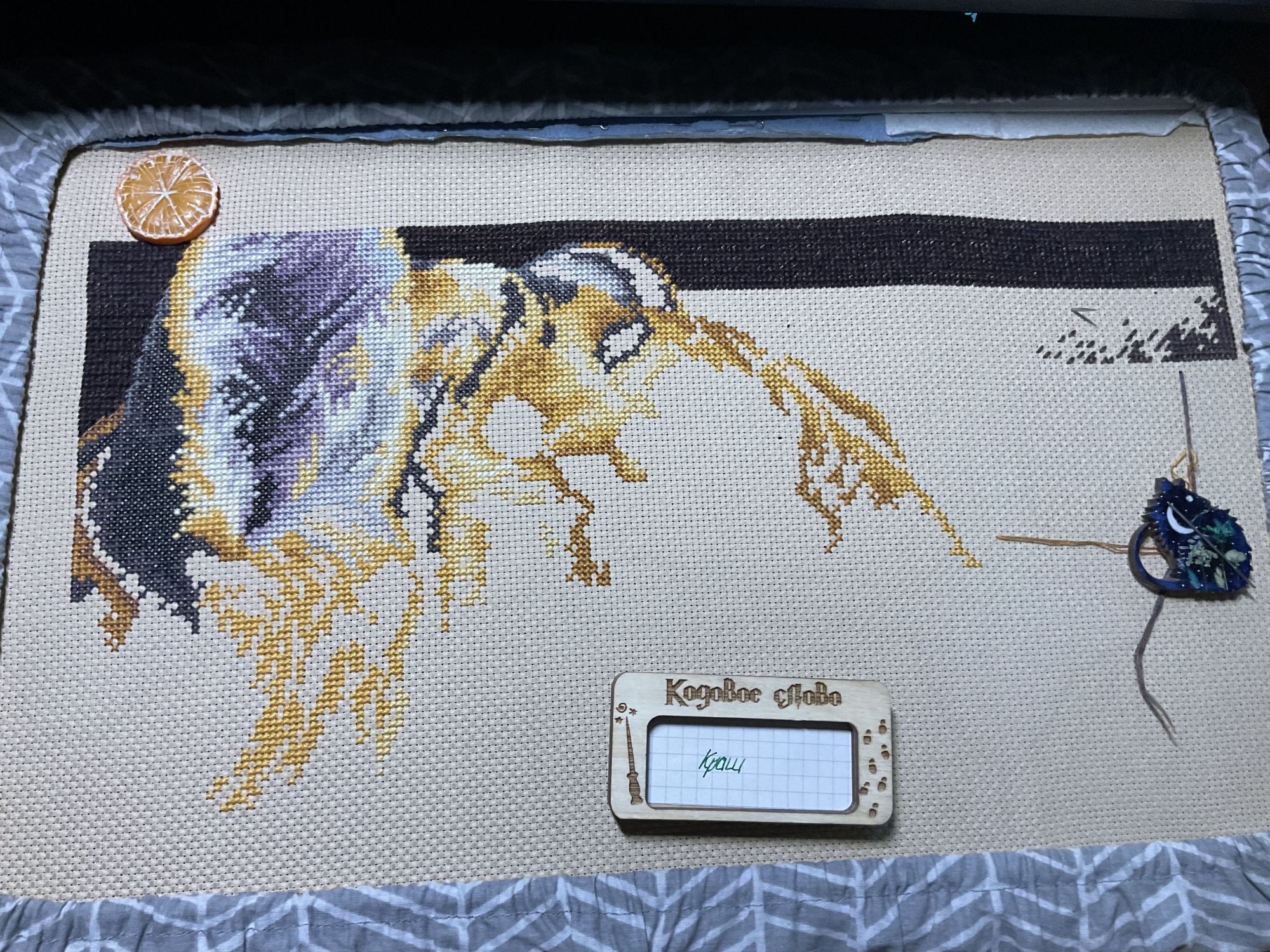 21 января 2023 Давно не показывалась в теме, тем не менее активно продолжаю шить. Начнём с маски железного человека от Славиной. Это была первая проба деревянной основы и думаю последняя. Шить на дереве не понравилось. Прошу создать и сразу позеленить гайку. Далее, достала свой долгострой с ангелами. Мне подкинули на него сагу, поэтому вышивать стало приятно, все же разбираться в значках на мелкой схеме не особо удобно. Продвинула ангелов совсем немного, планирую взять их основным процессом после тигра. И наконец-то величественный тигр. Его вышиваю медленнее чем хотелось бы, но все же он вышивается больше остальных. На данный момент готово 30%. Идёт очень легко, разве что несколько скучно шить фон. Kattrielle, Путешественница, PiyabJoe и 5 других сказали спасибо Поделиться сообщением Ссылка на сообщение
