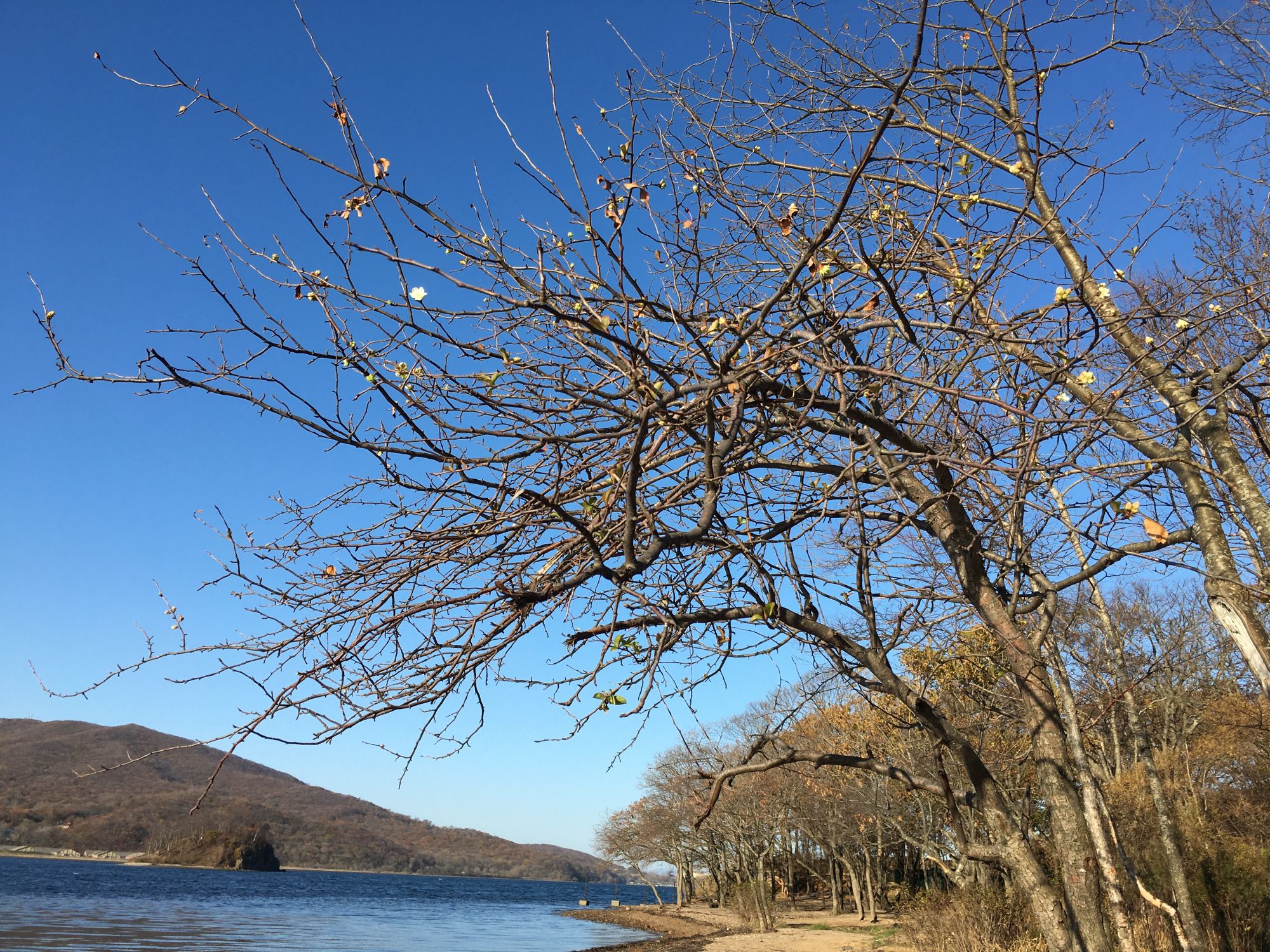 28 октября 2020 Всем привет из солнечного Владивостока! Ну у нас и на самом деле наступает самое солнечное время - золотая осень почти без дождей и зима, с редкими снегопадами и в основном с солнечными, морозными днями. Позапрошлые выходные были на редкость удачными - мы порыбачили, покатались на лодке, погуляли по восхитительному осеннему лесу и побывали в любимых местах отдыха. Лодку спускали в бухте Труда, которая находится в бухте Новик (названа в честь корвета Новик), а чтобы было понятнее вот карта Русского. Вот эта узкая полоса воды, которая почти насквозь прорезает остров и есть бухта Новик. Почти в начале, справа бухта Труда, где мы и спустились. Было прекрасное, солнечное утро и на берегу нас ожидало чудо - в октябре зацвели дикие яблони. Я обожаю эти деревья, которые так изящно склоняются над морской гладью, а тут еще такая красота! Пока муж надувал и собирал лодку я ходила по берегу, заглядывала в каждый доступный цветочек, нюхала их - но они почти не пахли( и фотографировала все, что возможно)) Конечно, это не буйное весеннее цветение, когда за облаком из лепестков не видно веток, но на дворе же октябрь и такого ну никак не ожидаешь увидеть. Меня силой оторвали от яблонь и мы пошли на точку лова. Вот так выглядит берег с лодки. В бухте Труда есть знаменитый и популярный крохотный и необитаемый островок -о.Папенберга. Это остров внутри острова. В это раз я его не фотала - мы летели на бешеной скорости и я думала лишь о том, как не отбить пятую точку и сберечь позвоночник - на берегу тишь да гладь была, а в море волны и приличные такие. Я на этом острове бывала и не раз, залазила на вершину, любовалась окрестностями и где-то в облаке должны быть мои фото, но искать некогда. Поэтому покажу фото из интернета и немного расскажу о нем. Из интернета: "Слово «Папенберг» переводится с голландского, как «Папская гора» - этим именем голландцы именовали остров Така-Бока-Сима в заливе Нагасаки. Название это связано с событиями периода борьбы с христианством, когда у побережья острова японцы сбросили в море группу католических миссионеров, а сними и около 4000 аборигенов, последователей христианской религии. Русские моряки из-за поразительного сходства островов назвали этим именем островок в бухте Новик. Вот что пишет об острове наш знаменитый соотечественник Крузенштерн: «Папенберг, небольшой остров, имеющий полмили в окружности, высочайший из всех находящихся островов залива и отличающийся тем, что со всех сторон от подошвы до вершины насажден рядами деревьев. Обиходные названия: «Змеиный», «Островок на двоих»." Хоть и называется "змеиный", но про наличие реальных змей на острове ничего не знаю и никого не видела. Может они там и есть. Еще один интересный факт из жизни острова. Если не ошибаюсь, в 2016г. на остров с помощью парома привезли грузовик с отдыхающими и у них там был телевизор и антенна и, говорят, принимали 20 каналов. Мы в это время даже проходили мимо них на лодке и видели всю эту живописную картину наяву. Но своих фото у меня нет, поэтому тоже с интернета.- сам остров Папенберга. И отдыхающие с грузовиком. Ну а мы пришли на место ловли корюшки. В это время у нас ловят эту маленькую, но ооочень вкусную рыбку. Есть еще конечно зимняя рыбалка на корюшку, но я ее не люблю - мне всегда холодно и скучно. Рыбаки без лодок ловят ее с пирса, ну а мы не далеко зан