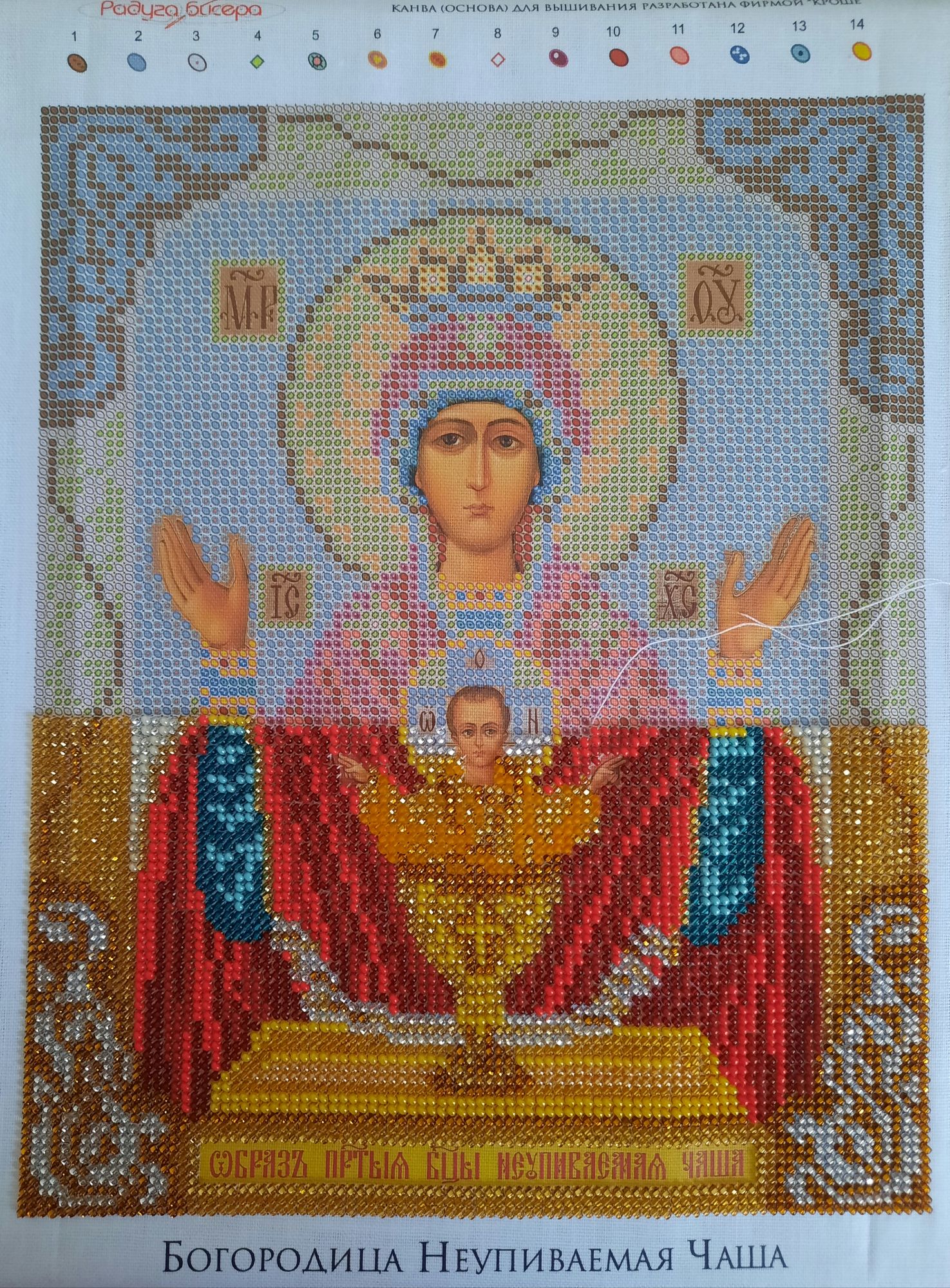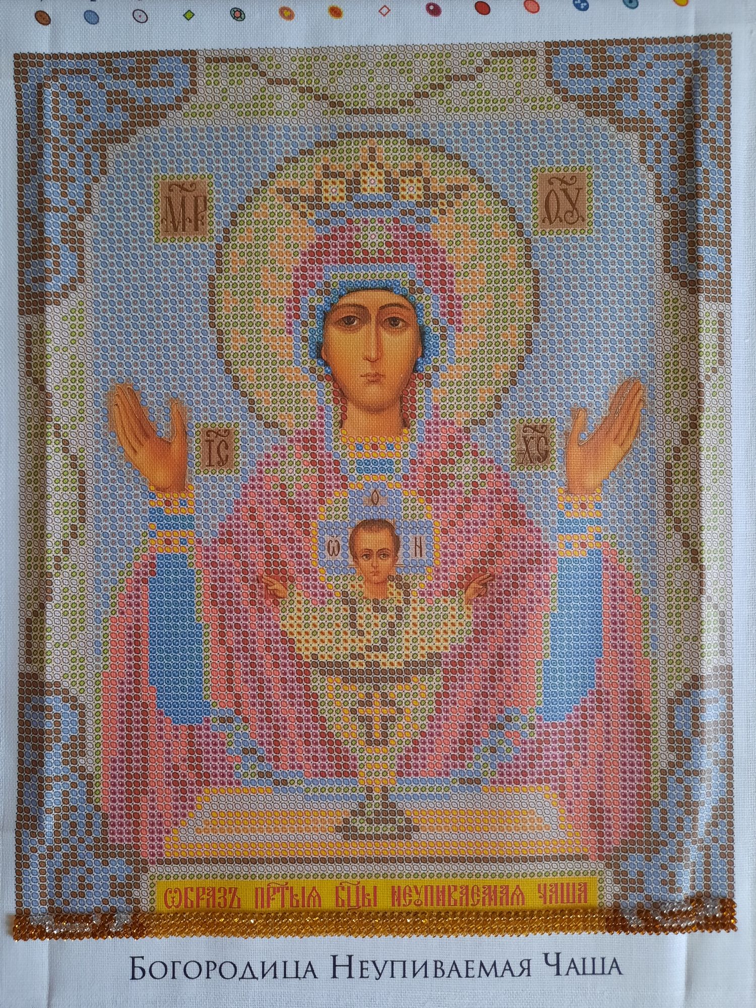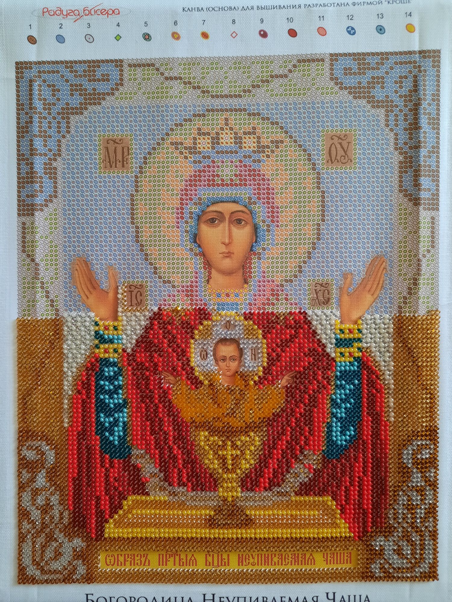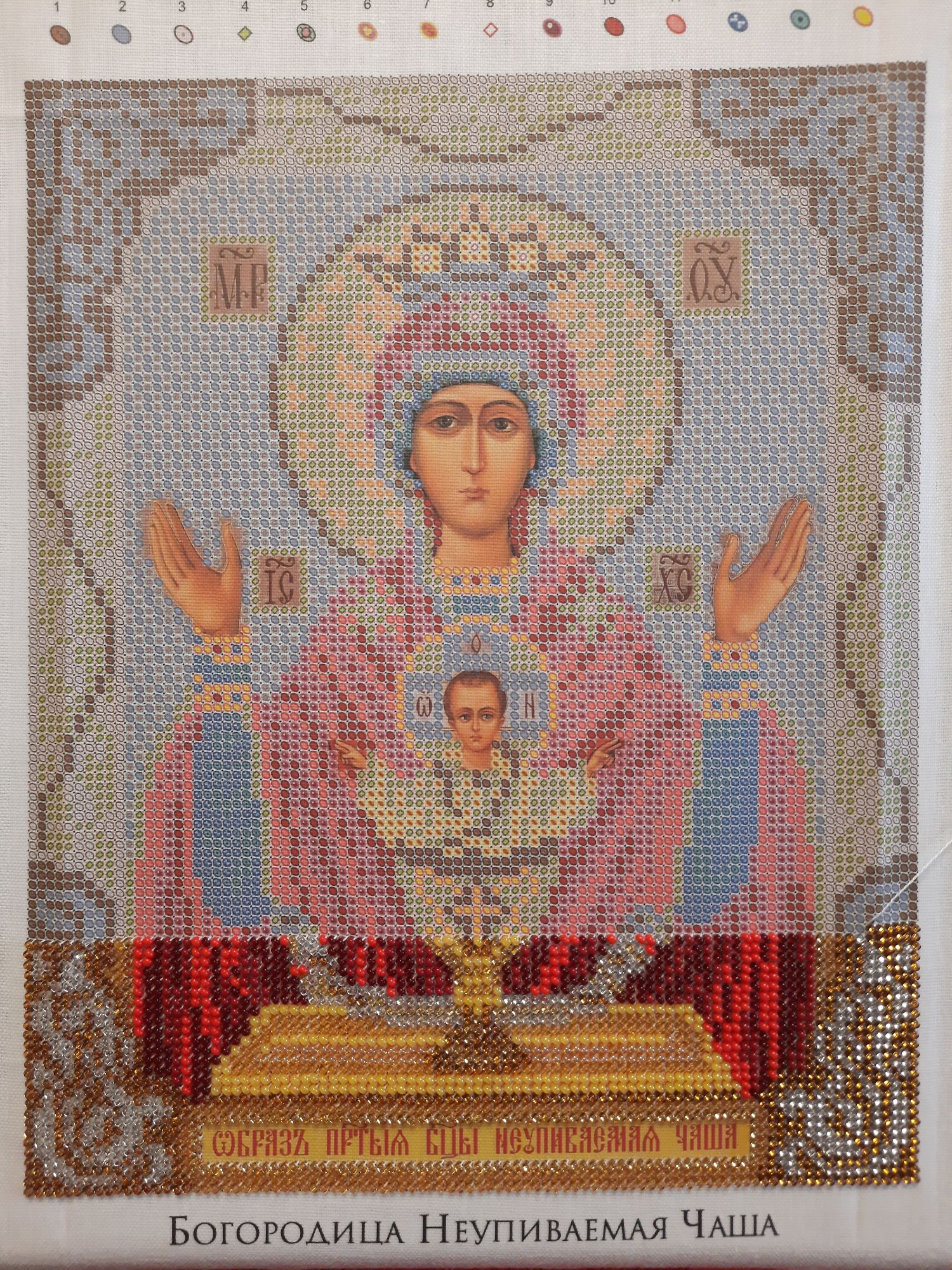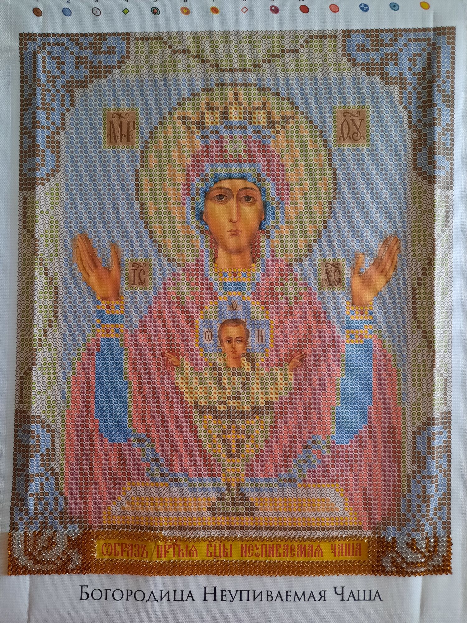 20 ноября 2020 Садитесь поудобнее, гости дорогие, начинаю отчёт в нескольких частях Курник на вкусненькое. А теперь зрелища)) 1. Позеленим гаечку. Panna. Икона Святого благоверного князя Игоря Черниговского. Попробовала способ Оли @maui. Удобно, вышиваешь одним и тем же бисером, что несомненно ускоряет работу. 2. Заведём новую. Кроше (Радуга бисера). Богородица Неупиваемая Чаша. Размер уже побольше, 20х24, поэтому вышивать буду подольше. И, так как эта икона тоже в подарок, постараюсь успеть до нг. Будет Подготовку фотографировать не стала, все мы знаем что в этих наборах. А вот часть вкусного бисера покажу И то, что вышито на данный момент 3. Крестики вышились в перерывах между иконой. Василису наконец-то позвали в детский сад и я быстренько исправила Полин именной кармашек для шкафчика. Благо у вышивальщицы всегда найдутся ниточки и тканюшка Шилось опять с трудом. Кривой кармашек + растягивающаяся Линда и психованная Наташа = идеально кривой кармашек 4. И на десерт оформленная роща. Фото пока только такие. На улице пасмурно и морозно, а похвастаться хочется) Багет пластиковый, очень удачно подошёл. Паспарту изначально не планировала, так как размер у самой вышивки немаленький. Все светло-золотые багеты не только солнечные были, но и сливались с вышивкой, терялись. Тёмные добавляли мрака. А мне хотелось, чтобы в раме как и в картине тоже свечение присутствовало. Увидела в новинках этот багет, где темно-коричневая полоса будет подчеркивать границы, а состаренное припылённое золото не будет сильно выделяться. Вспомнила работу нашей Цыпы сразу и без сомнений заказала этот багет. Теперь всё. Всем здоровья и хорошего настроения! Molly21, Nadinka-Blondinka, Путешественница и 14 других сказали спасибо Поделиться сообщением Ссылка на сообщение