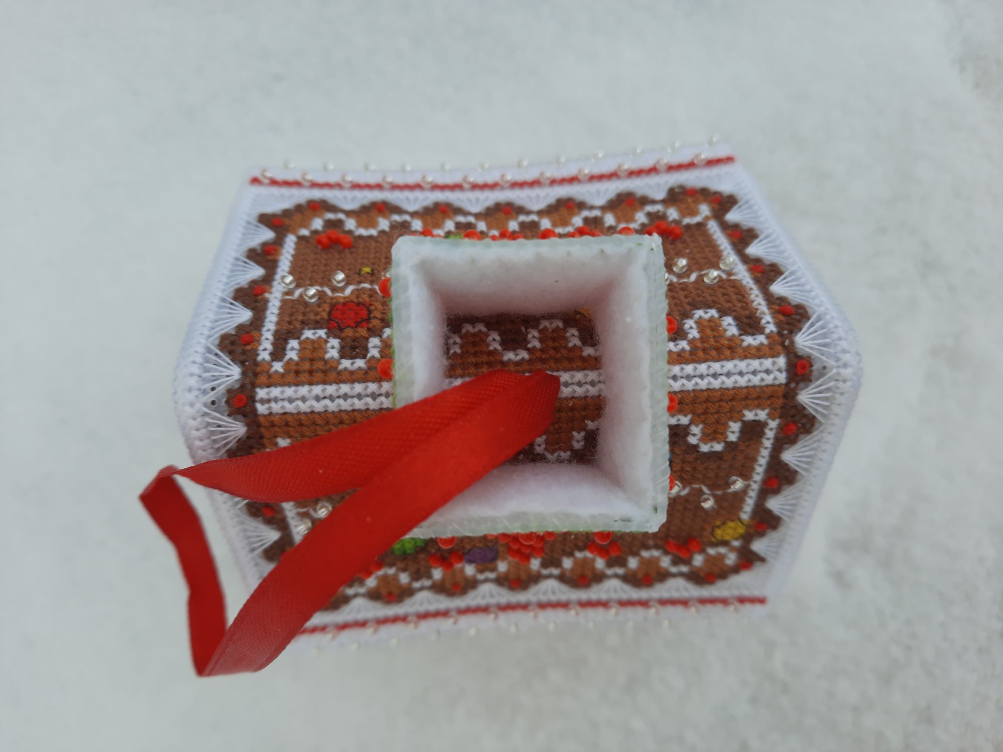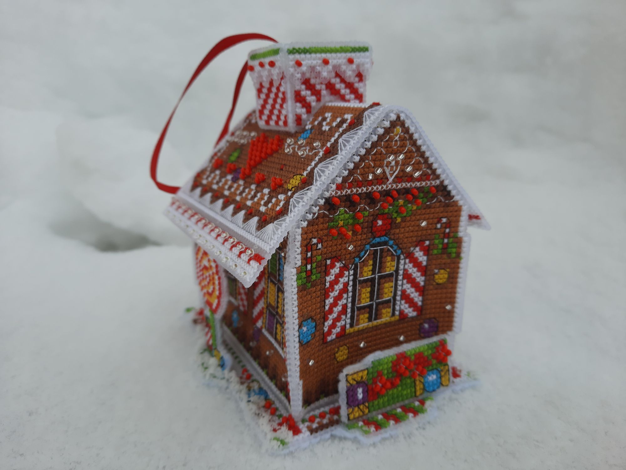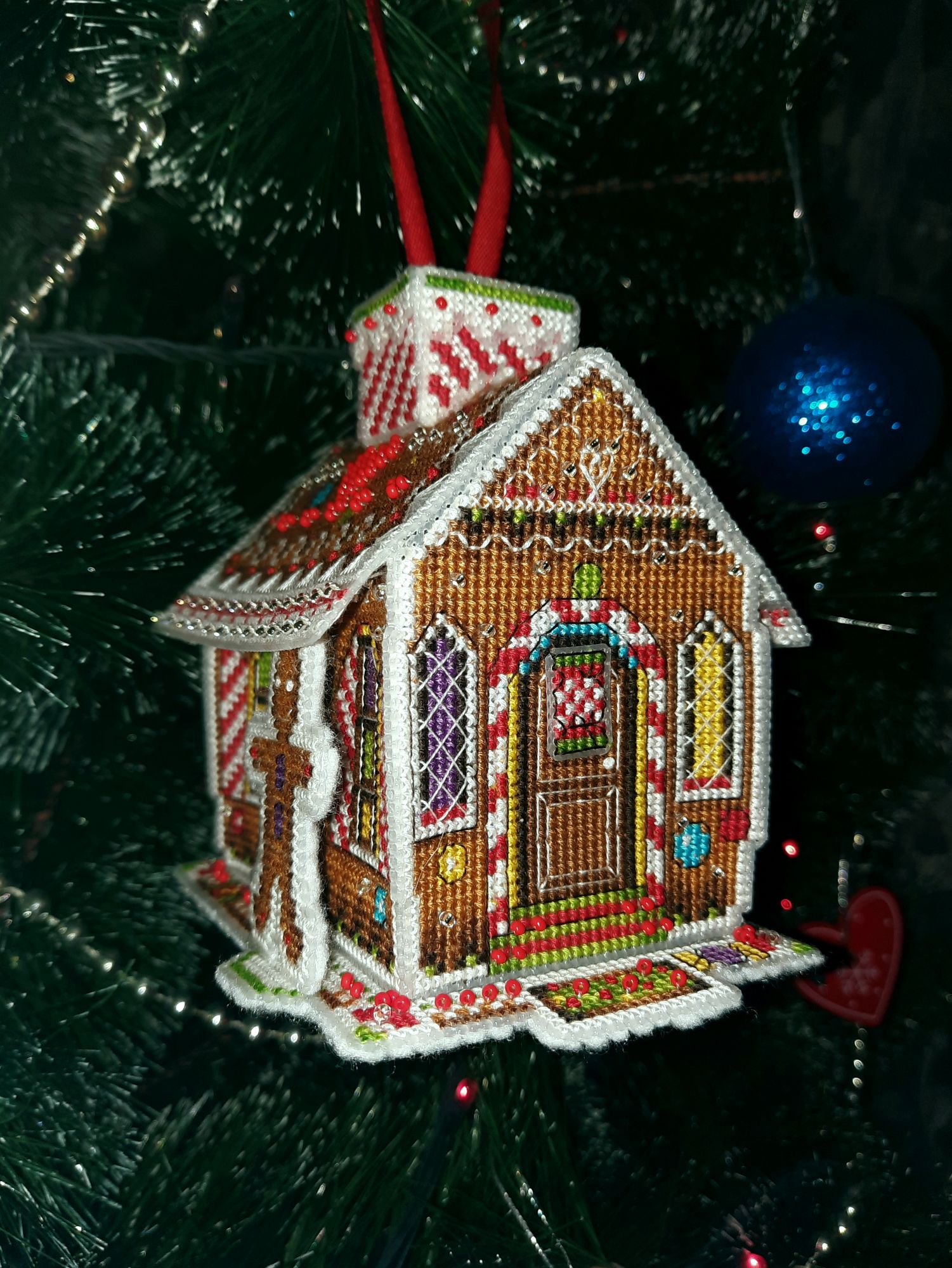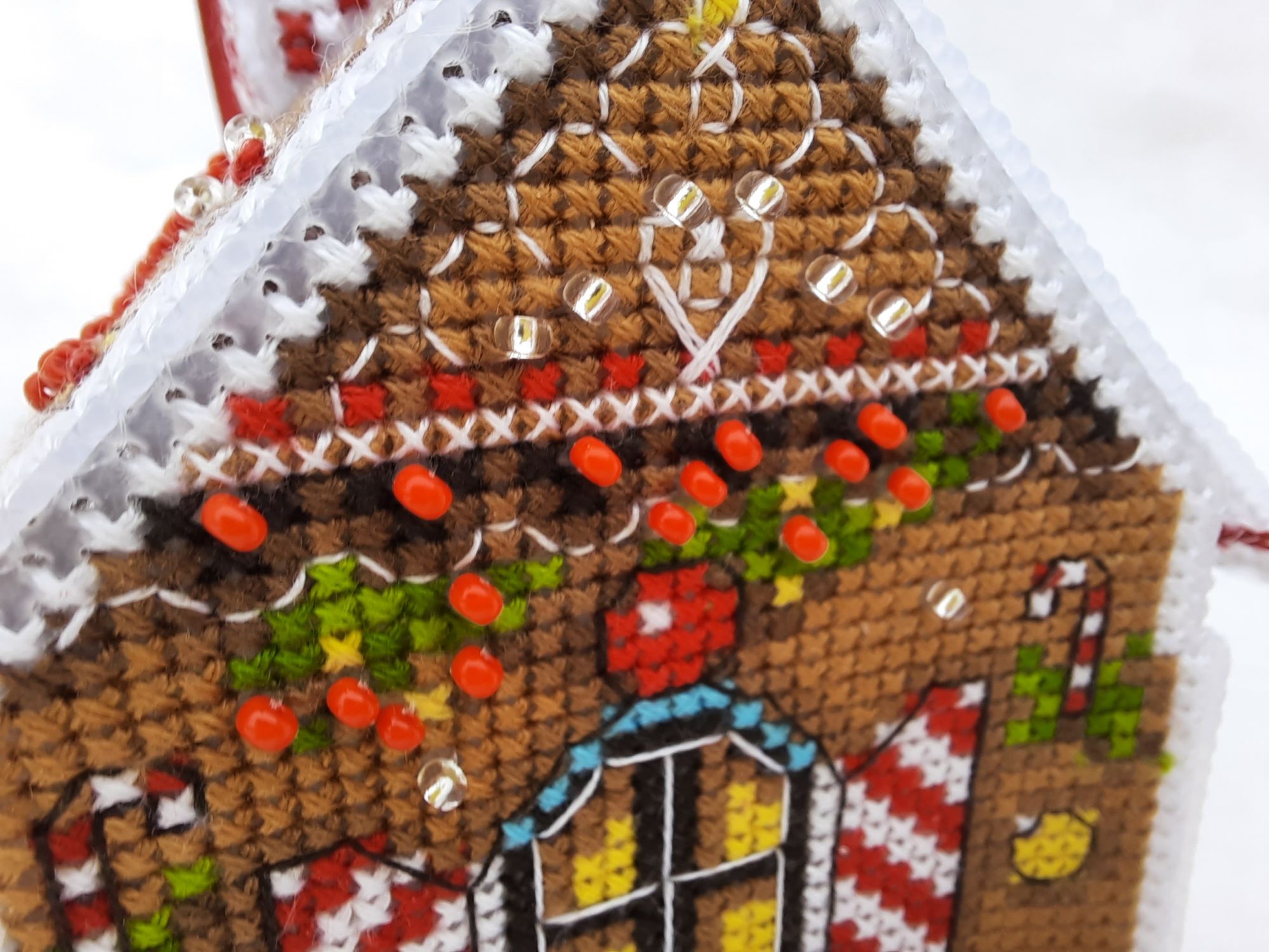 12 января 2021 Время для домика и филина пришло Садитесь по удобнее, будем зеленить гаечку Panna. Пряничный домик. Все детали вышиты. Перед сборкой. Села в ночь, очень хотелось закончить, но переоценила свои возможности и проковырявшись 2,5 часа, ушла спать. А на утро продолжила и провозилась практически целый день Заморочилась с подвесом, ленту просовывала в дырочки между крестами и завязывала на узелок с изнанки. Плюсом решила обшить все детали, у которых изнанка будет видна, кроме крыши, белым фетром. А теперь домик во всей красе. И на ёлочке Вышивала с удовольствием, всё просто. Канвы осталось почти целый лист и небольшие кусочки, подойдут для мелочей и брошек. Нитки средней длины, брала по две и мне было удобно. Две иглы, одна тонкая и короткая, видимо для бисера, но не весь серебристый через неё проходит. Я бы положила в набор действительно бисерную иглу. Бисер чешский, ровненький. Красного осталось 10-15 штучек, серебристого много. Ниток половина или около того. Так что, если кому нужны остаточки, я с удовольствием вышлю. Схема крупная цветная, не глянцевая, удобная и понятная на 2х листах. Из изменений: сердечко на крыше вышила не с серебристым бисером, а с красным. О сборке ничего приятного сказать не могу. Производитель пишет, что можете пришивать или приклеивать, можете обшивать или не обшивать детали. Вообще что хотите то и делайте Первым делом надо было сшить стенки, но ни слова, чтобы посмотрели на обложку или, что нужно пришивать одну к другой как бы внахлёст (одна стенка должна на один крестик перекрывать торец другой). И я, конечно же, пришила как пришила из-за чего длинные стеночки встали дугой во внутрь домика. Но это я заметила уже после того как сделала ещё один этап, пришила крышу (как я её отцентровывала и верхний уголок от стенки не хотел красиво стыковаться с коньком крыши - отдельная история) и почти пришила дно. В общем не стала всё разбирать и переделывать, постаралась закрепить центр стеночки к крыше и немного подтянуть её. Пластик плохо гнётся, это не ткань, подлезть очень сложно, особенно вытащить из какого-нибудь угла иголку. Сделала вывод - пластик люблю, этот дом тоже, но больше 3Д игрушки на пластике не шью. Собирала, кстати, монониткой, что тоже добавило трудностей к сборке. В целом результатом более чем довольна. Всем он очень нравится, домашние относятся к нему с особым трепетом, а у гостей он вызывает восторг. У меня же гордость за наше творчество, любовь и воспоминания о том, кто его мне подарил Светик, спасибо тебе огромнейшее за этот чудесный вкусный домик! lenning, nata2017, Маса и 15 других сказали спасибо Поделиться сообщением Ссылка на сообщение