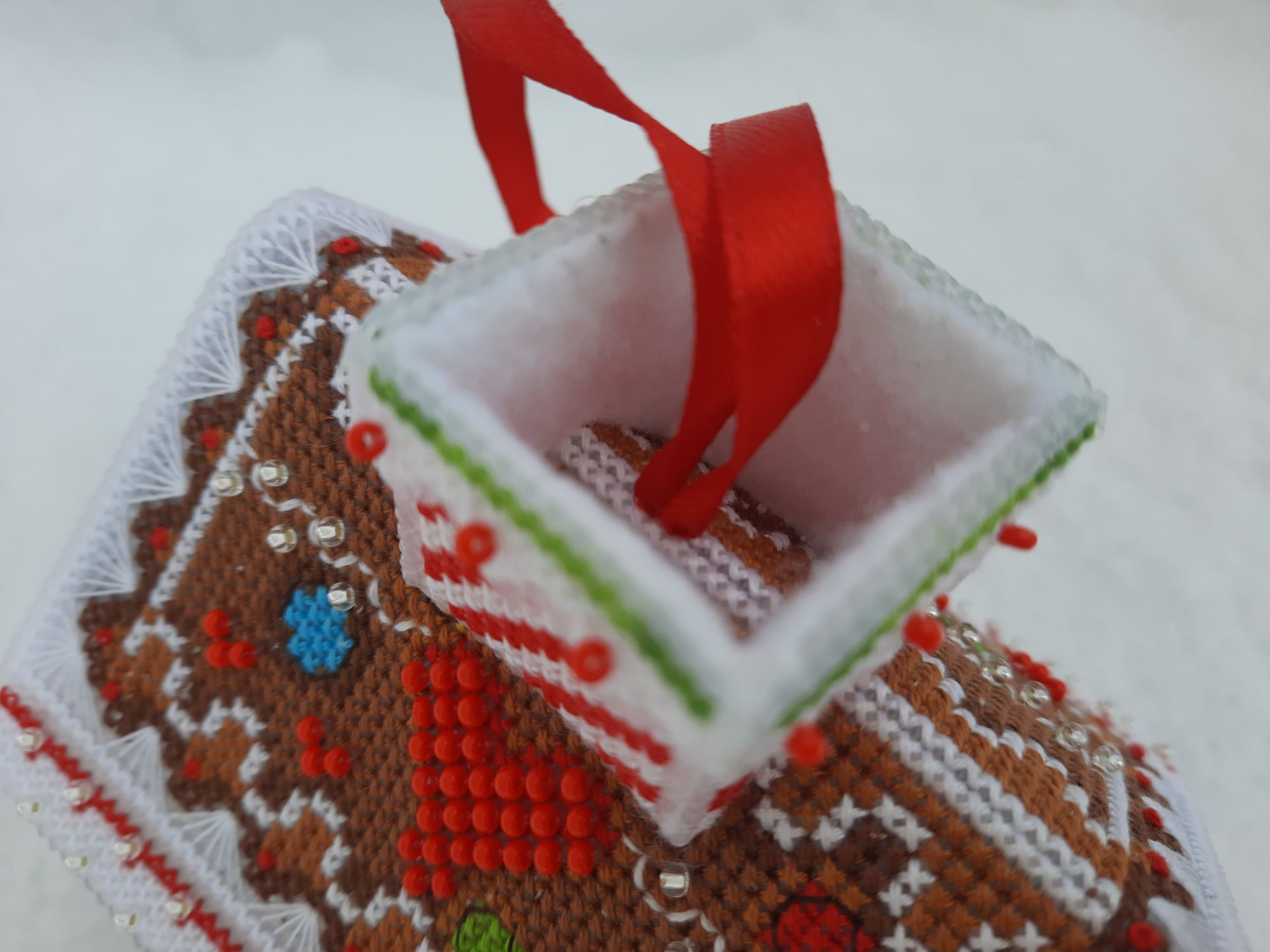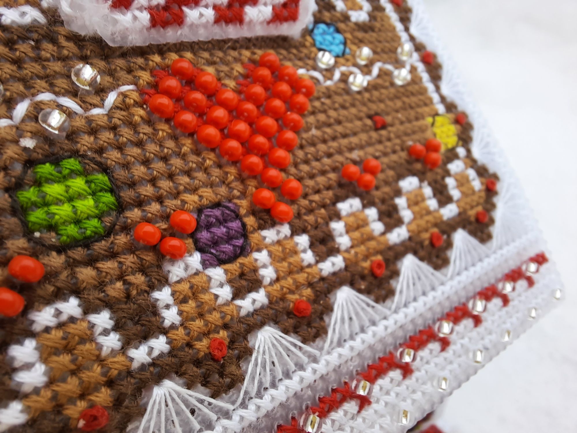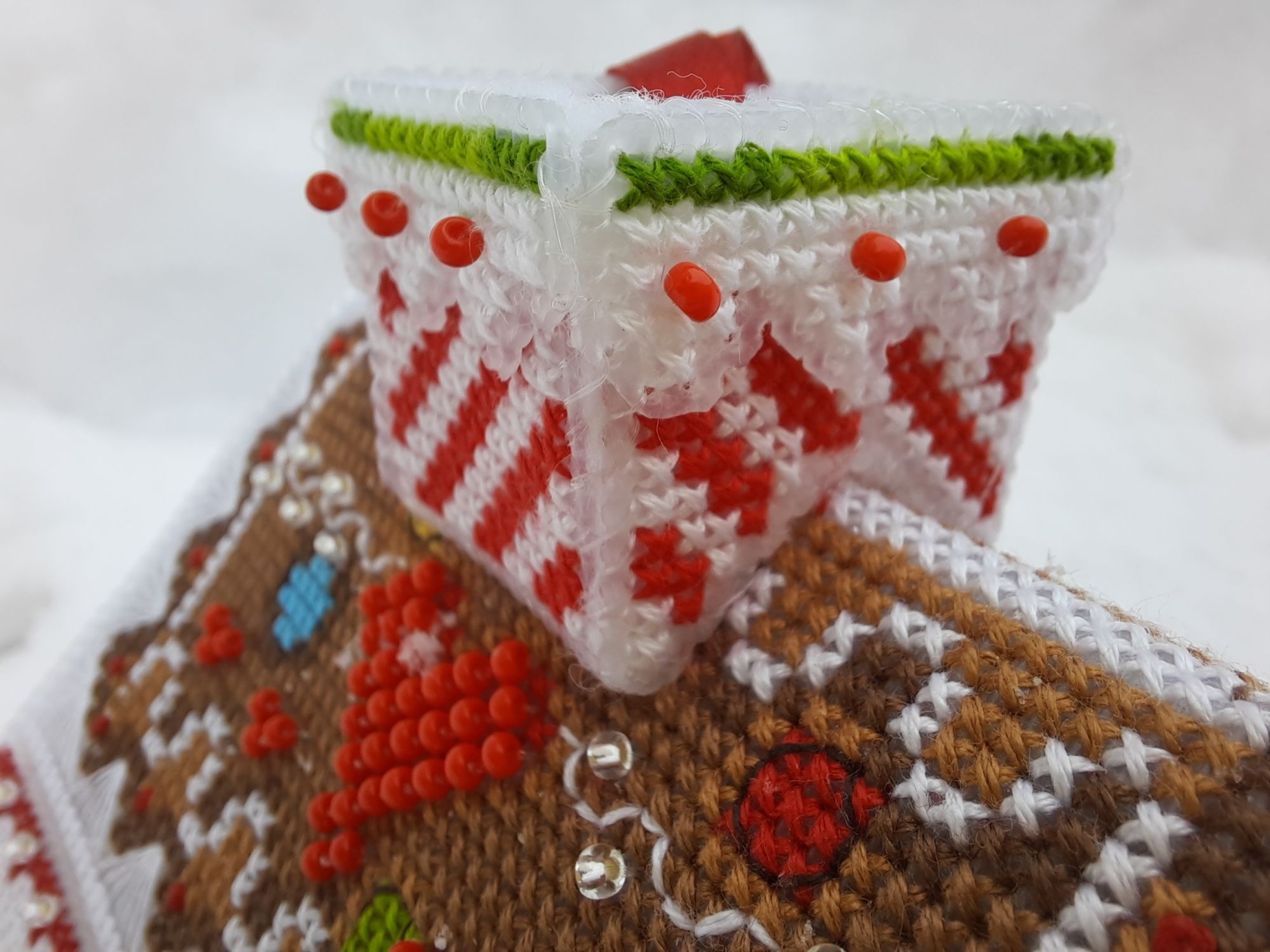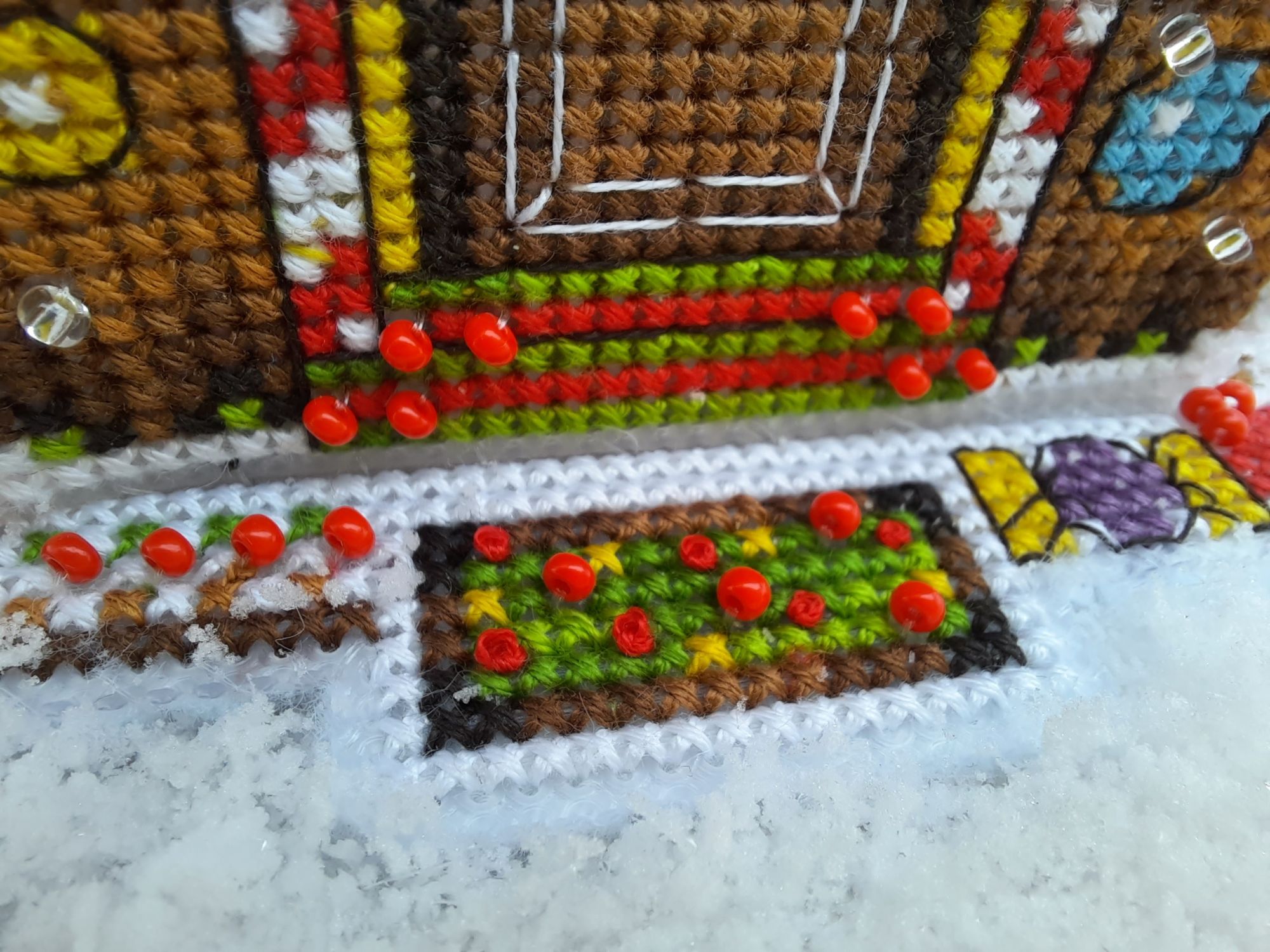 12 января 2021 Время для домика и филина пришло Садитесь по удобнее, будем зеленить гаечку Panna. Пряничный домик. Все детали вышиты. Перед сборкой. Села в ночь, очень хотелось закончить, но переоценила свои возможности и проковырявшись 2,5 часа, ушла спать. А на утро продолжила и провозилась практически целый день Заморочилась с подвесом, ленту просовывала в дырочки между крестами и завязывала на узелок с изнанки. Плюсом решила обшить все детали, у которых изнанка будет видна, кроме крыши, белым фетром. А теперь домик во всей красе. И на ёлочке Вышивала с удовольствием, всё просто. Канвы осталось почти целый лист и небольшие кусочки, подойдут для мелочей и брошек. Нитки средней длины, брала по две и мне было удобно. Две иглы, одна тонкая и короткая, видимо для бисера, но не весь серебристый через неё проходит. Я бы положила в набор действительно бисерную иглу. Бисер чешский, ровненький. Красного осталось 10-15 штучек, серебристого много. Ниток половина или около того. Так что, если кому нужны остаточки, я с удовольствием вышлю. Схема крупная цветная, не глянцевая, удобная и понятная на 2х листах. Из изменений: сердечко на крыше вышила не с серебристым бисером, а с красным. О сборке ничего приятного сказать не могу. Производитель пишет, что можете пришивать или приклеивать, можете обшивать или не обшивать детали. Вообще что хотите то и делайте Первым делом надо было сшить стенки, но ни слова, чтобы посмотрели на обложку или, что нужно пришивать одну к другой как бы внахлёст (одна стенка должна на один крестик перекрывать торец другой). И я, конечно же, пришила как пришила из-за чего длинные стеночки встали дугой во внутрь домика. Но это я заметила уже после того как сделала ещё один этап, пришила крышу (как я её отцентровывала и верхний уголок от стенки не хотел красиво стыковаться с коньком крыши - отдельная история) и почти пришила дно. В общем не стала всё разбирать и переделывать, постаралась закрепить центр стеночки к крыше и немного подтянуть её. Пластик плохо гнётся, это не ткань, подлезть очень сложно, особенно вытащить из какого-нибудь угла иголку. Сделала вывод - пластик люблю, этот дом тоже, но больше 3Д игрушки на пластике не шью. Собирала, кстати, монониткой, что тоже добавило трудностей к сборке. В целом результатом более чем довольна. Всем он очень нравится, домашние относятся к нему с особым трепетом, а у гостей он вызывает восторг. У меня же гордость за наше творчество, любовь и воспоминания о том, кто его мне подарил Светик, спасибо тебе огромнейшее за этот чудесный вкусный домик! lenning, nata2017, Маса и 15 других сказали спасибо Поделиться сообщением Ссылка на сообщение