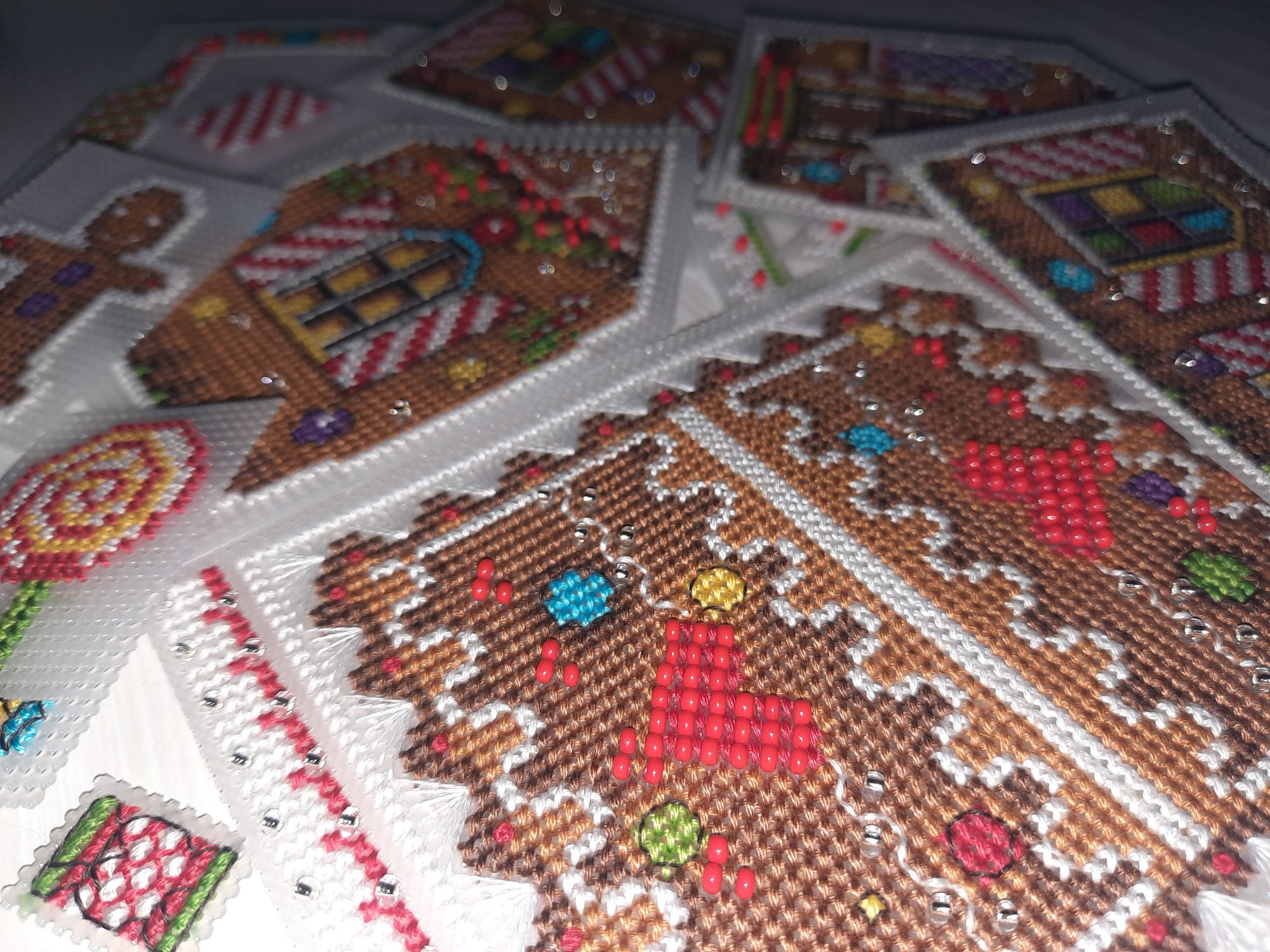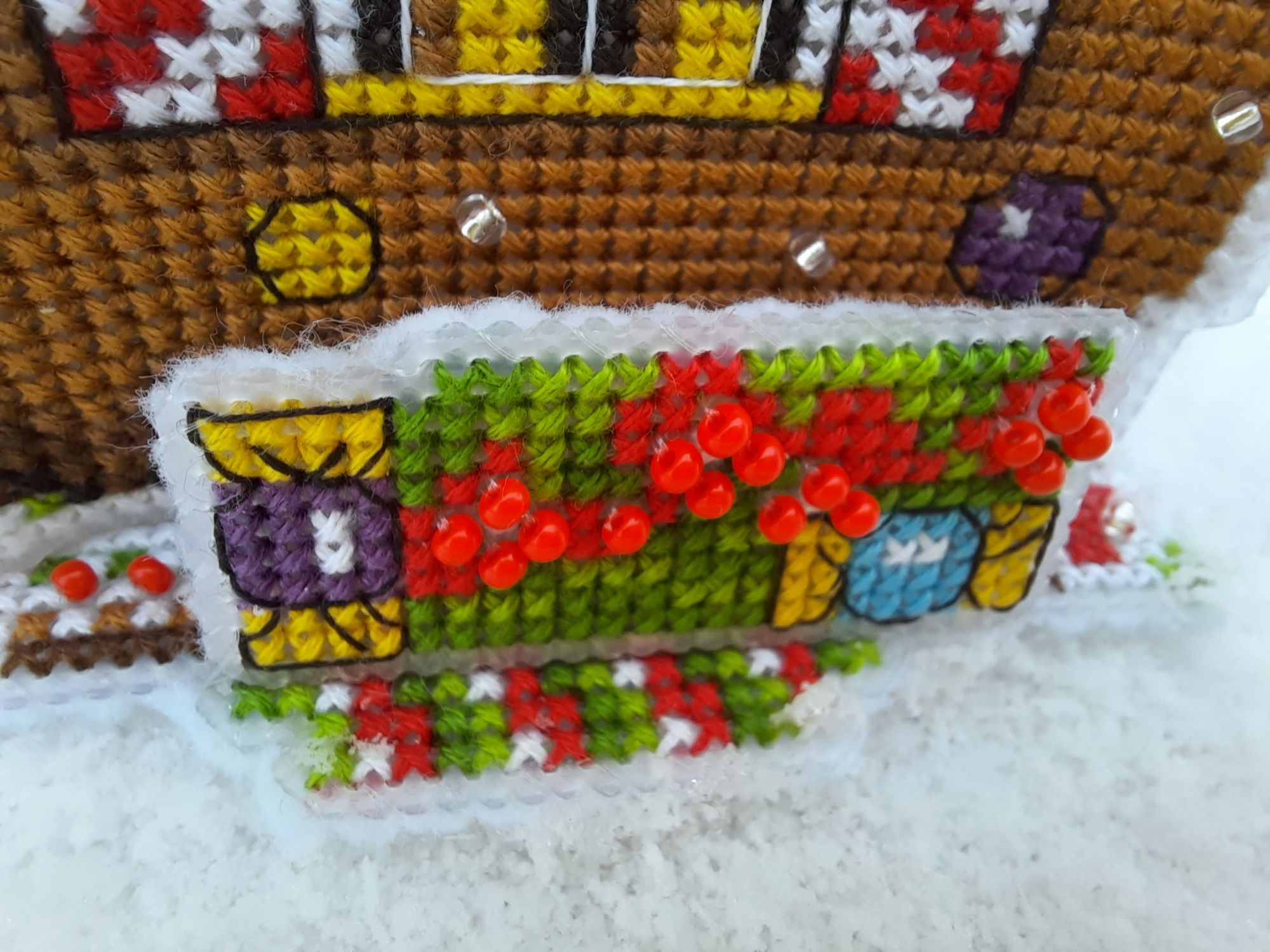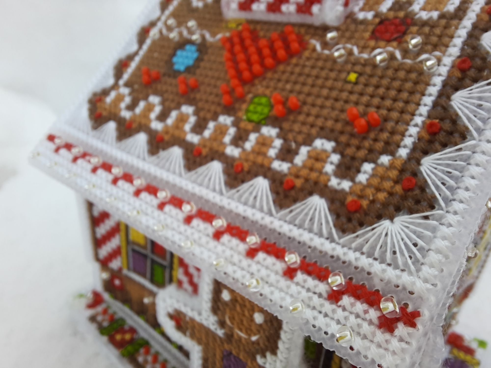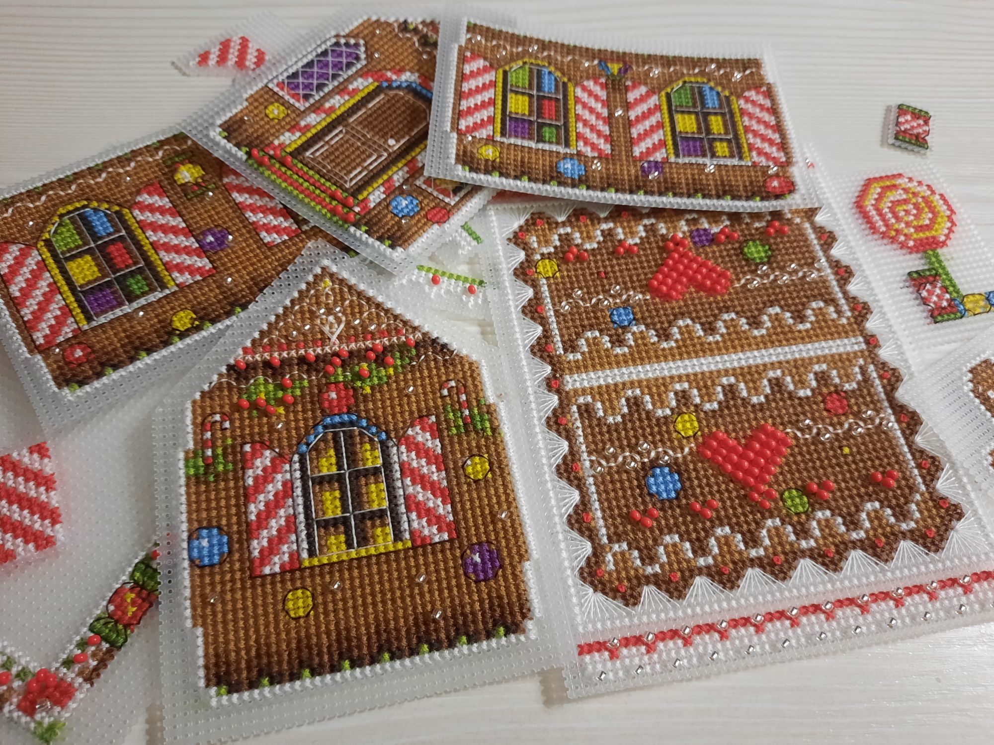 12 января 2021 Время для домика и филина пришло Садитесь по удобнее, будем зеленить гаечку Panna. Пряничный домик. Все детали вышиты. Перед сборкой. Села в ночь, очень хотелось закончить, но переоценила свои возможности и проковырявшись 2,5 часа, ушла спать. А на утро продолжила и провозилась практически целый день Заморочилась с подвесом, ленту просовывала в дырочки между крестами и завязывала на узелок с изнанки. Плюсом решила обшить все детали, у которых изнанка будет видна, кроме крыши, белым фетром. А теперь домик во всей красе. И на ёлочке Вышивала с удовольствием, всё просто. Канвы осталось почти целый лист и небольшие кусочки, подойдут для мелочей и брошек. Нитки средней длины, брала по две и мне было удобно. Две иглы, одна тонкая и короткая, видимо для бисера, но не весь серебристый через неё проходит. Я бы положила в набор действительно бисерную иглу. Бисер чешский, ровненький. Красного осталось 10-15 штучек, серебристого много. Ниток половина или около того. Так что, если кому нужны остаточки, я с удовольствием вышлю. Схема крупная цветная, не глянцевая, удобная и понятная на 2х листах. Из изменений: сердечко на крыше вышила не с серебристым бисером, а с красным. О сборке ничего приятного сказать не могу. Производитель пишет, что можете пришивать или приклеивать, можете обшивать или не обшивать детали. Вообще что хотите то и делайте Первым делом надо было сшить стенки, но ни слова, чтобы посмотрели на обложку или, что нужно пришивать одну к другой как бы внахлёст (одна стенка должна на один крестик перекрывать торец другой). И я, конечно же, пришила как пришила из-за чего длинные стеночки встали дугой во внутрь домика. Но это я заметила уже после того как сделала ещё один этап, пришила крышу (как я её отцентровывала и верхний уголок от стенки не хотел красиво стыковаться с коньком крыши - отдельная история) и почти пришила дно. В общем не стала всё разбирать и переделывать, постаралась закрепить центр стеночки к крыше и немного подтянуть её. Пластик плохо гнётся, это не ткань, подлезть очень сложно, особенно вытащить из какого-нибудь угла иголку. Сделала вывод - пластик люблю, этот дом тоже, но больше 3Д игрушки на пластике не шью. Собирала, кстати, монониткой, что тоже добавило трудностей к сборке. В целом результатом более чем довольна. Всем он очень нравится, домашние относятся к нему с особым трепетом, а у гостей он вызывает восторг. У меня же гордость за наше творчество, любовь и воспоминания о том, кто его мне подарил Светик, спасибо тебе огромнейшее за этот чудесный вкусный домик! lenning, nata2017, Маса и 15 других сказали спасибо Поделиться сообщением Ссылка на сообщение