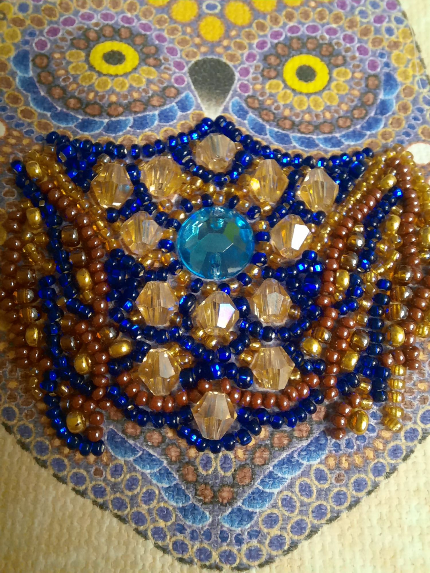12 января 2021 Как и обещала. Абрис Арт. Филин. Изначально вышивала точно по схеме и получалось лысовато, просвечивала основа , а теперь я стала добавлять бусинки где мне вздумается Иголка с первыми бисеринками деформировалась, очень неудобно ей вышивать, но через другую ювелирный бисер не пролезает. Что не нравится: бусина голубая в центре. Почему голубая? Вокруг и вообще в филине больше ничего голубого нет и, если серый клюв оправдан, то одна голубая бусина нет. Кроме того на картинке с набором она явно синяя. Каори, mamatata, Путешественница и 11 других сказали спасибо Поделиться сообщением Ссылка на сообщение