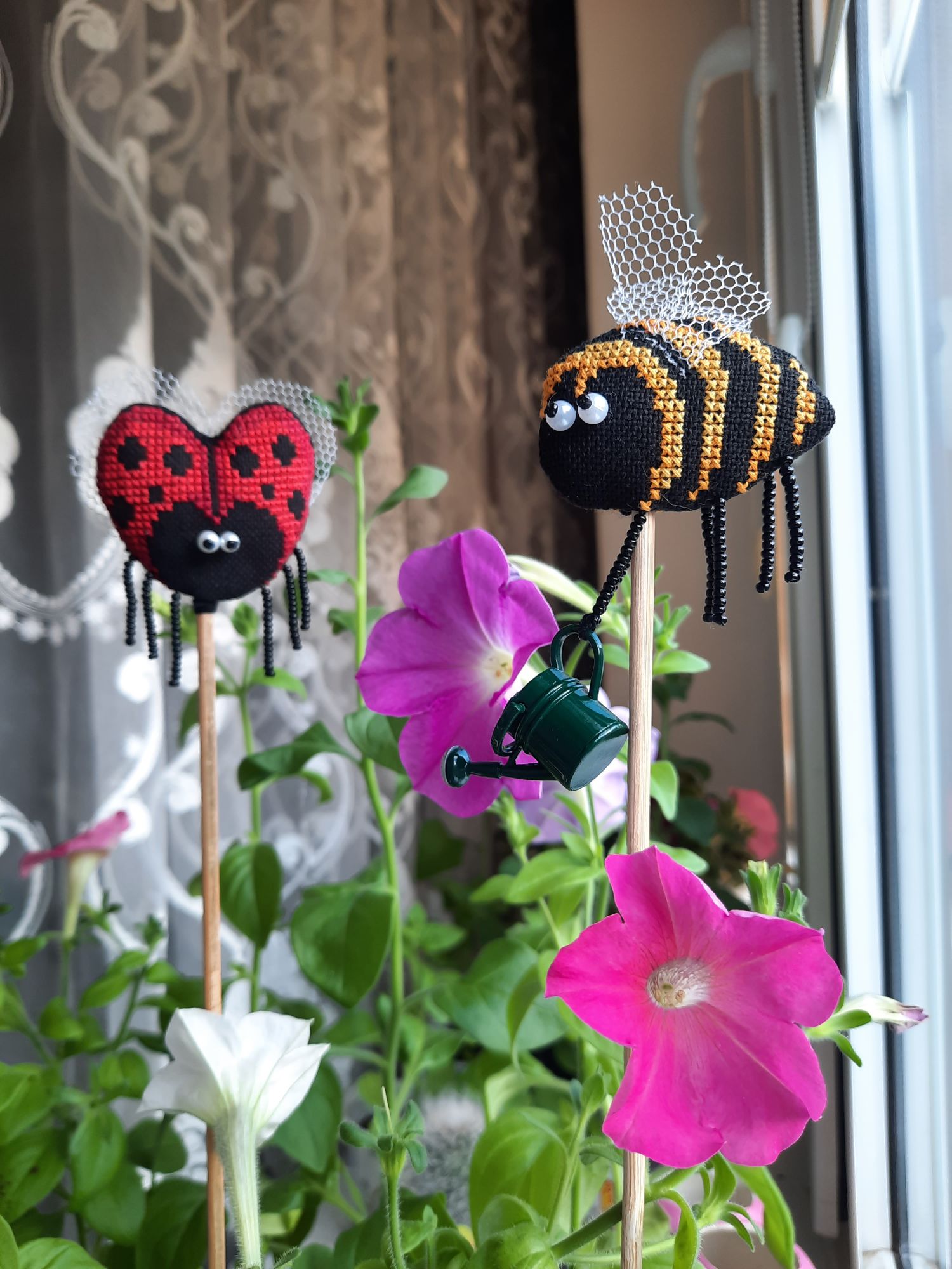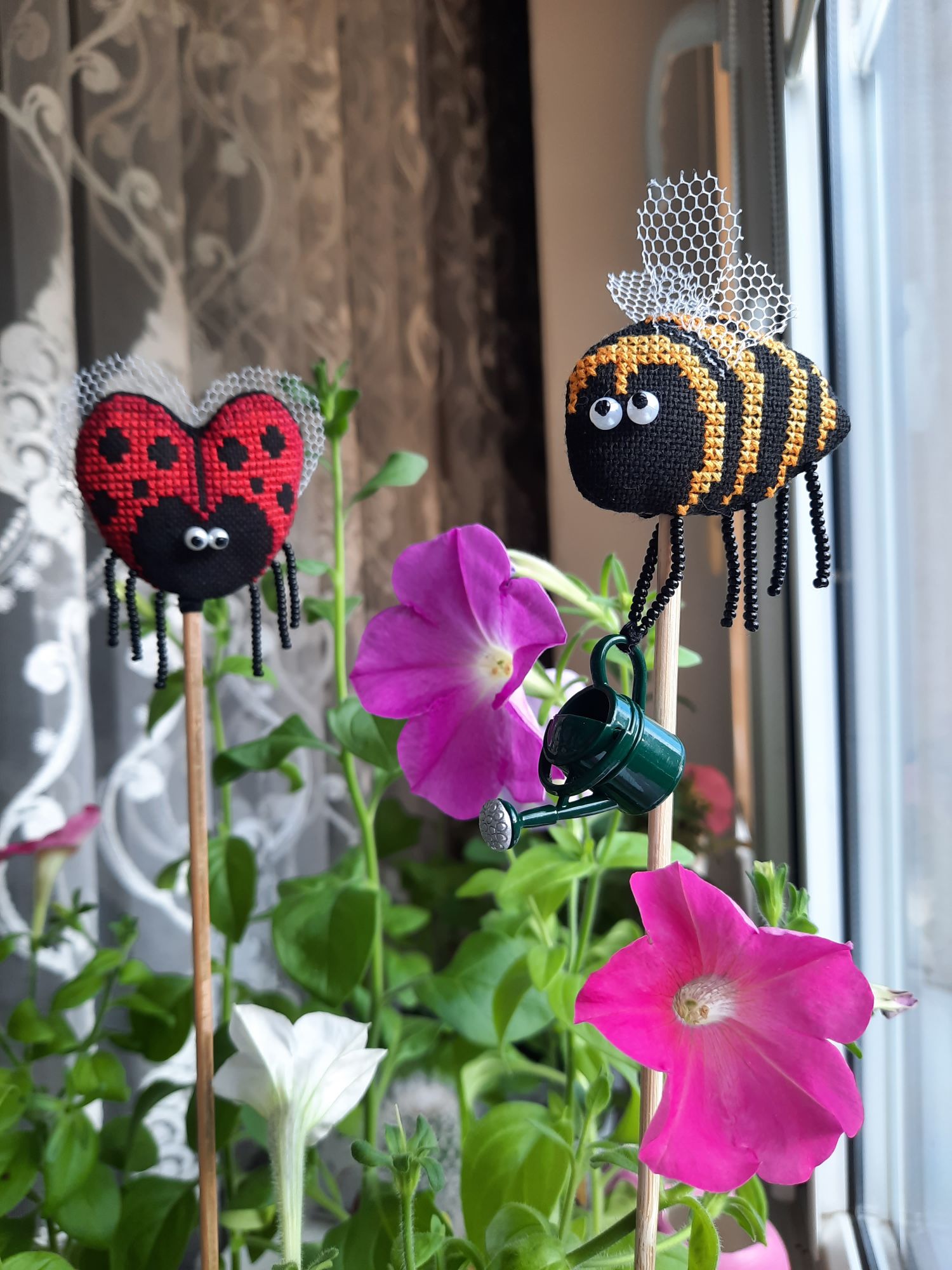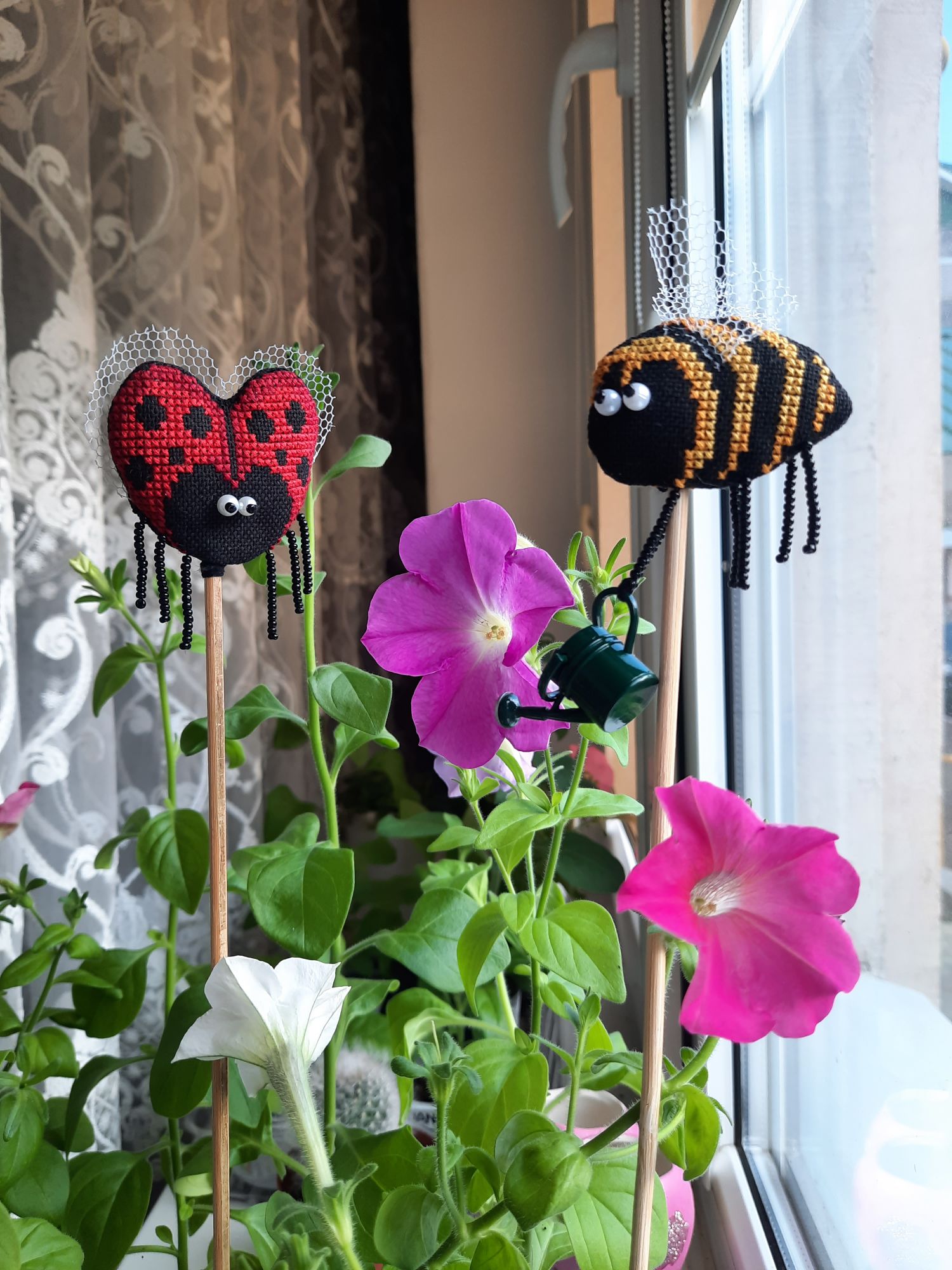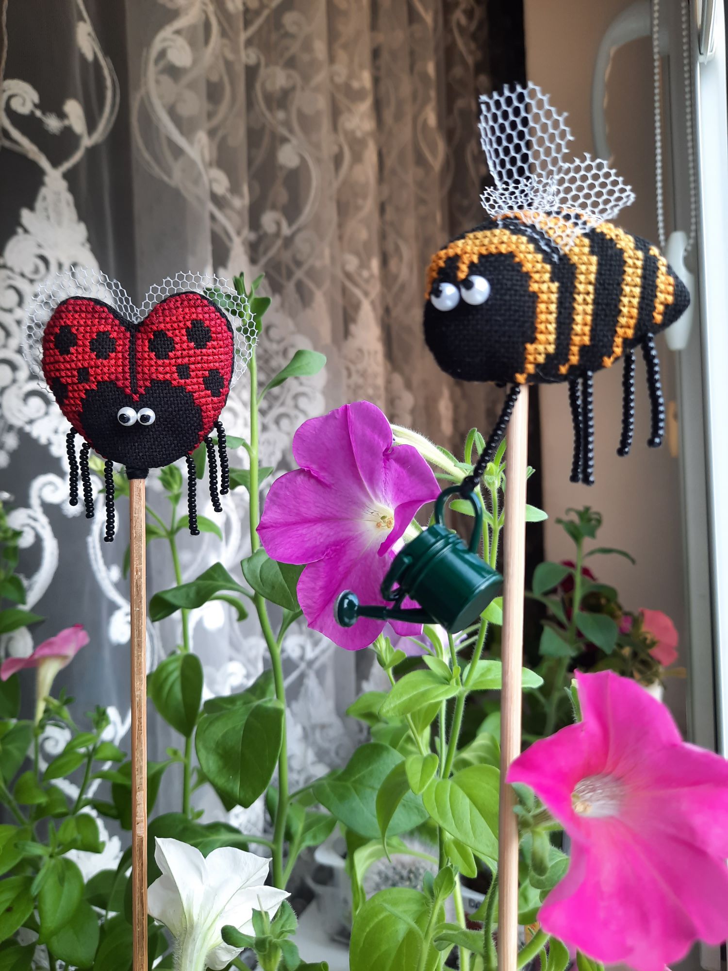 1 июня 2022 31.05.2022 в 20:37, Tata44 сказал(а): Какие милые симпапулечки! Смешные , особенно, когда "налево" посматривает пчелка! И как им хорошо в твоем цветнике! Я тоже петунии выращиваю. Но мои ещё не цветут Это ж сколько ты навышивала! Не иначе, в отпуске? Елочку с завершением! Столько процессов у тебя, оказывается! И дочка заразилась... А про мышек напиши, сколько рядочков прибавила, где-то 10? Спасибо большое! А я и не заметила как она на левой смотрит У меня только самые большие из посева зацвели, 7 штук, а взошло 56 из пакетика. Так что получается только начали. В этом году я первый раз посадила, мама хотела уже давно большую клумбу из петуний. Вроде должна получиться))) Неее, не в отпуске. Это же за две недели. Да, мне много надо) что-то маленькое, что-то для дивана, что-то для компьютерного стола, для работы, ещё вот для улицы надо, но это уже вязание будет. Дочка волнами, то нахлынули, то спадёт)) В мышках 12 рядов, практически в день по рядочку. Там вон уже уши мышиные есть и чайничек появился Tata44 сказал(а) спасибо Поделиться сообщением Ссылка на сообщение