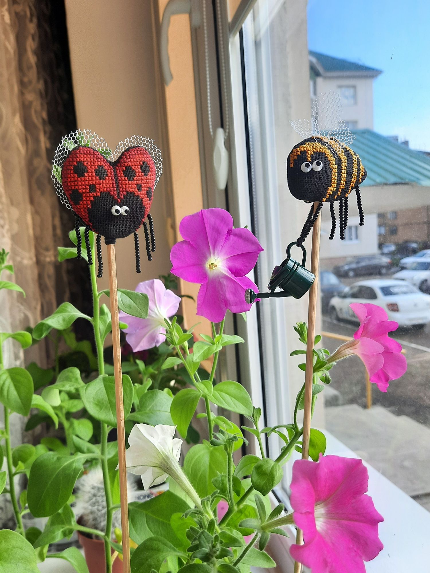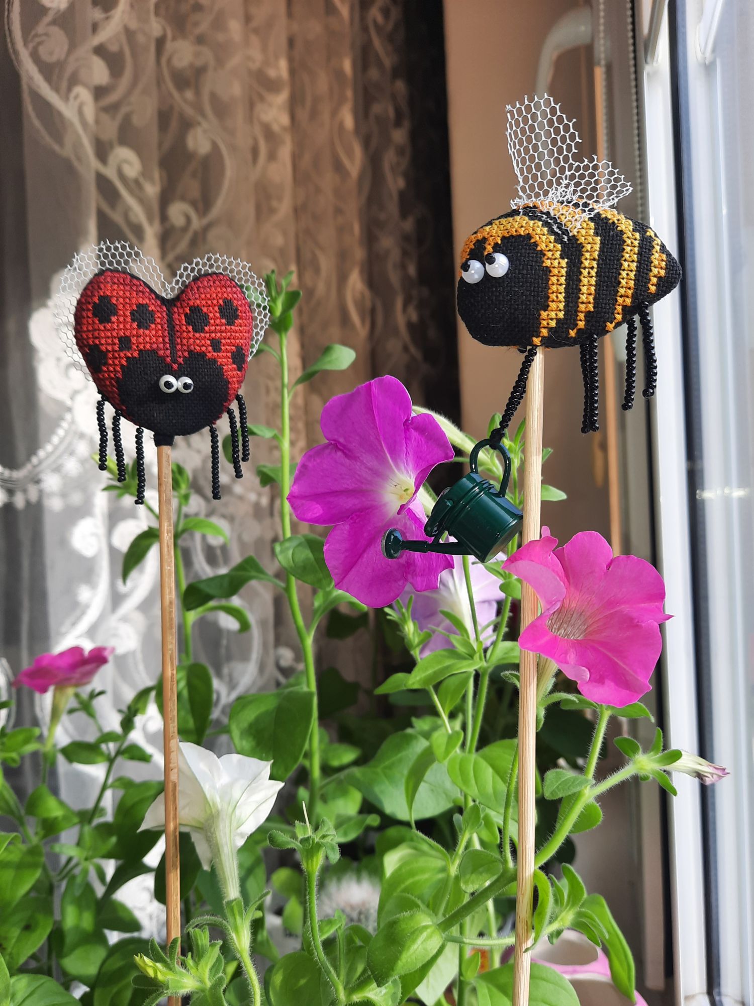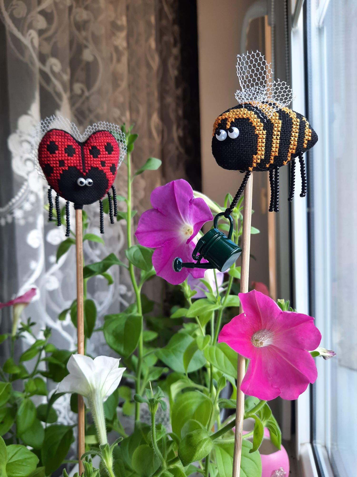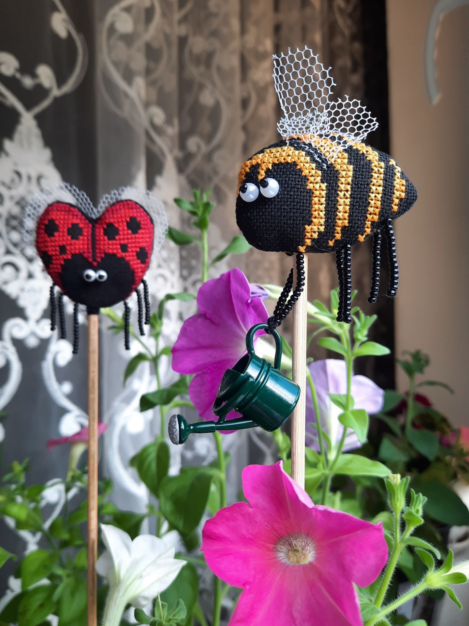 1 июня 2022 31.05.2022 в 20:37, Tata44 сказал(а): Какие милые симпапулечки! Смешные , особенно, когда "налево" посматривает пчелка! И как им хорошо в твоем цветнике! Я тоже петунии выращиваю. Но мои ещё не цветут Это ж сколько ты навышивала! Не иначе, в отпуске? Елочку с завершением! Столько процессов у тебя, оказывается! И дочка заразилась... А про мышек напиши, сколько рядочков прибавила, где-то 10? Спасибо большое! А я и не заметила как она на левой смотрит У меня только самые большие из посева зацвели, 7 штук, а взошло 56 из пакетика. Так что получается только начали. В этом году я первый раз посадила, мама хотела уже давно большую клумбу из петуний. Вроде должна получиться))) Неее, не в отпуске. Это же за две недели. Да, мне много надо) что-то маленькое, что-то для дивана, что-то для компьютерного стола, для работы, ещё вот для улицы надо, но это уже вязание будет. Дочка волнами, то нахлынули, то спадёт)) В мышках 12 рядов, практически в день по рядочку. Там вон уже уши мышиные есть и чайничек появился Tata44 сказал(а) спасибо Поделиться сообщением Ссылка на сообщение