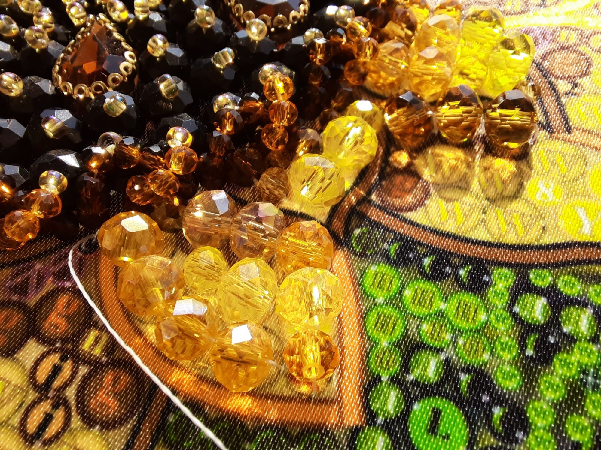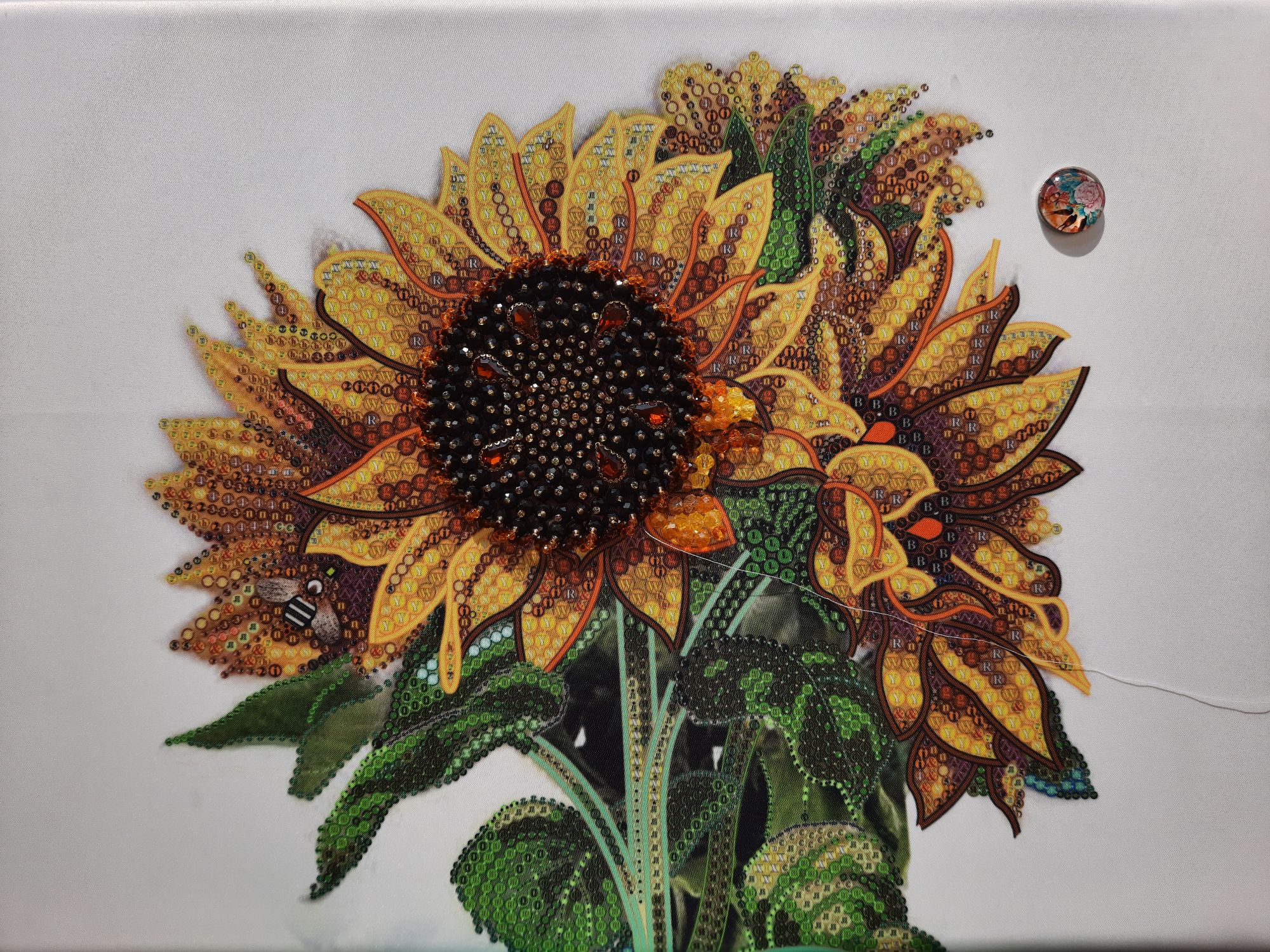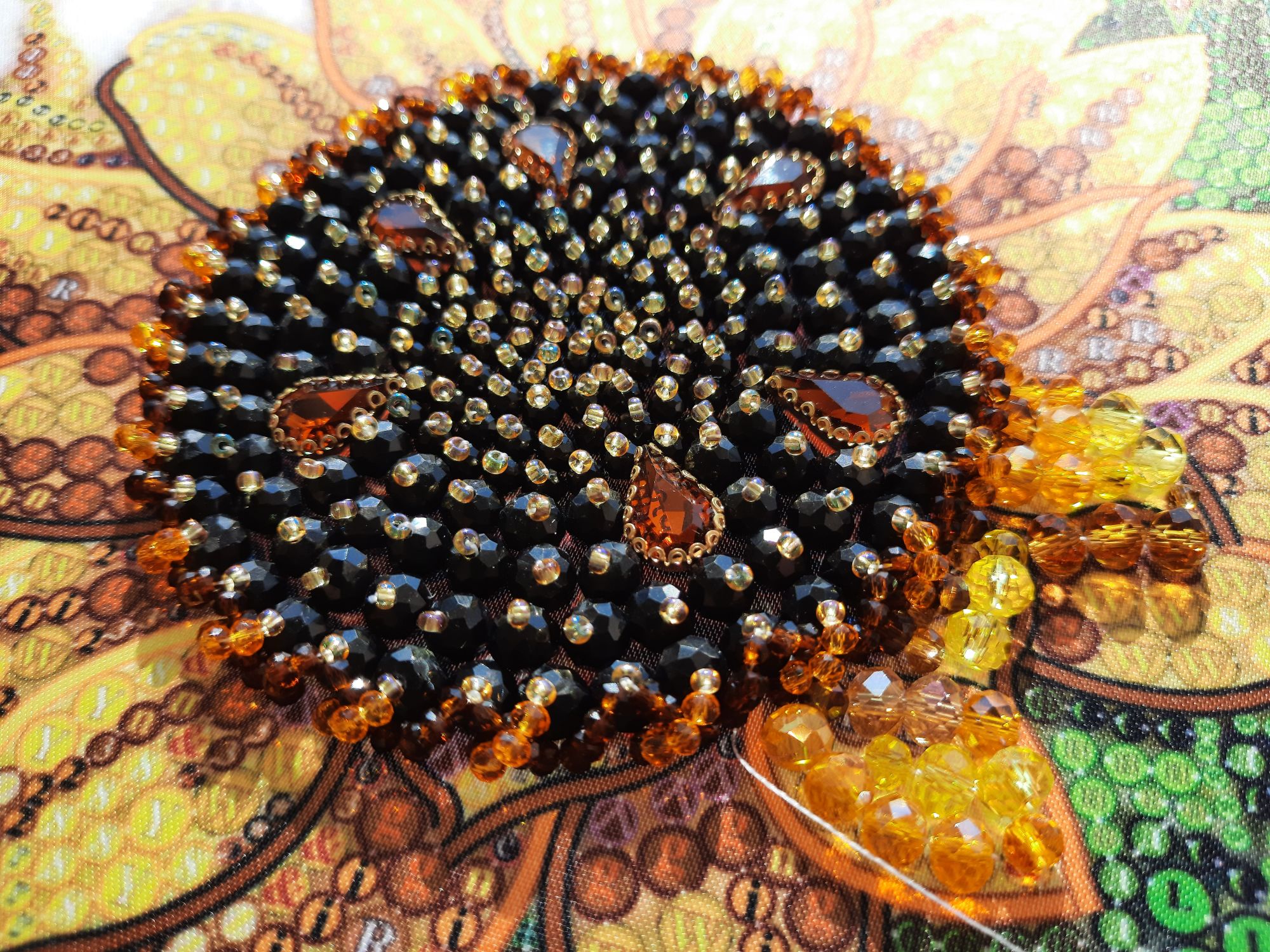 31 июля 2022 Всем привет! Лето у нас продолжается, уже не жаркое, но довольно тёплое, поэтому вышивается крайне мало, заметные продвижения только в рабочих процессах. Золотое Руно. Кок. - финиш! / Процесс порадовал, простой и лёгкий. Бэка чуток, только на лобстере, птичке и усы. Вышила овалом, хочу оформить в часы, которые у меня уже есть. После обязательно покажу. Золотое Руно. Шеф-повар. - новый процесс! 27 цветов, счетный крест. Вышиваю на ткани китайского происхождения в горошек неизвестного каунта, приблизительно 32. Я эту тканюшку покупала для оформления на задник, остался маленький кусок. Она неплотная, дырчатая. По началу было сложно вглядываться и не потерять строчку, но уже приспособилась. Образа в каменьях. Подсолнухи. - новый процесс! (Татуся, гаечка уже есть. Удали, пожалуйста, первое фото. Там брак показан. Спасибо!) Процесс кайфовый и очень увлекательный. Центр подсолнуха вышивается тремя разными по размеру бусинами на уменьшение к середине. Здорово! Смотрятся как настоящие семечки А как красиво вокруг они оплетаются сначала в одну сторону, а затем поверх в другую. Приступила к лепесткам. Хочу вышить первый их круг и попробовать сразу обшить канителью. Немного гулятельных фото. Всем тёплого и солнечного лета, осталось совсем чуть-чуть Хозяйка смешных зверей, Molly21, Каори и 9 других сказали спасибо Поделиться сообщением Ссылка на сообщение