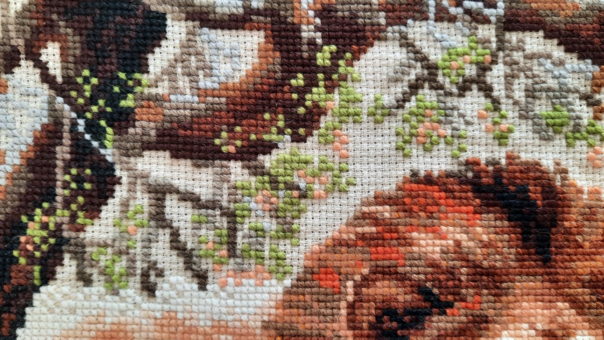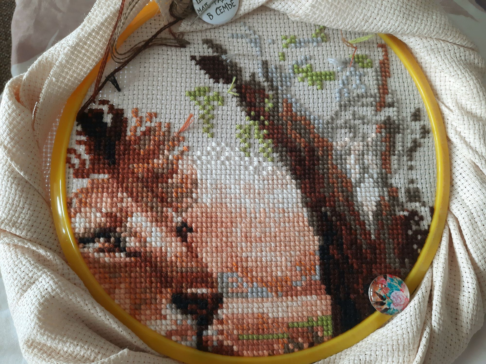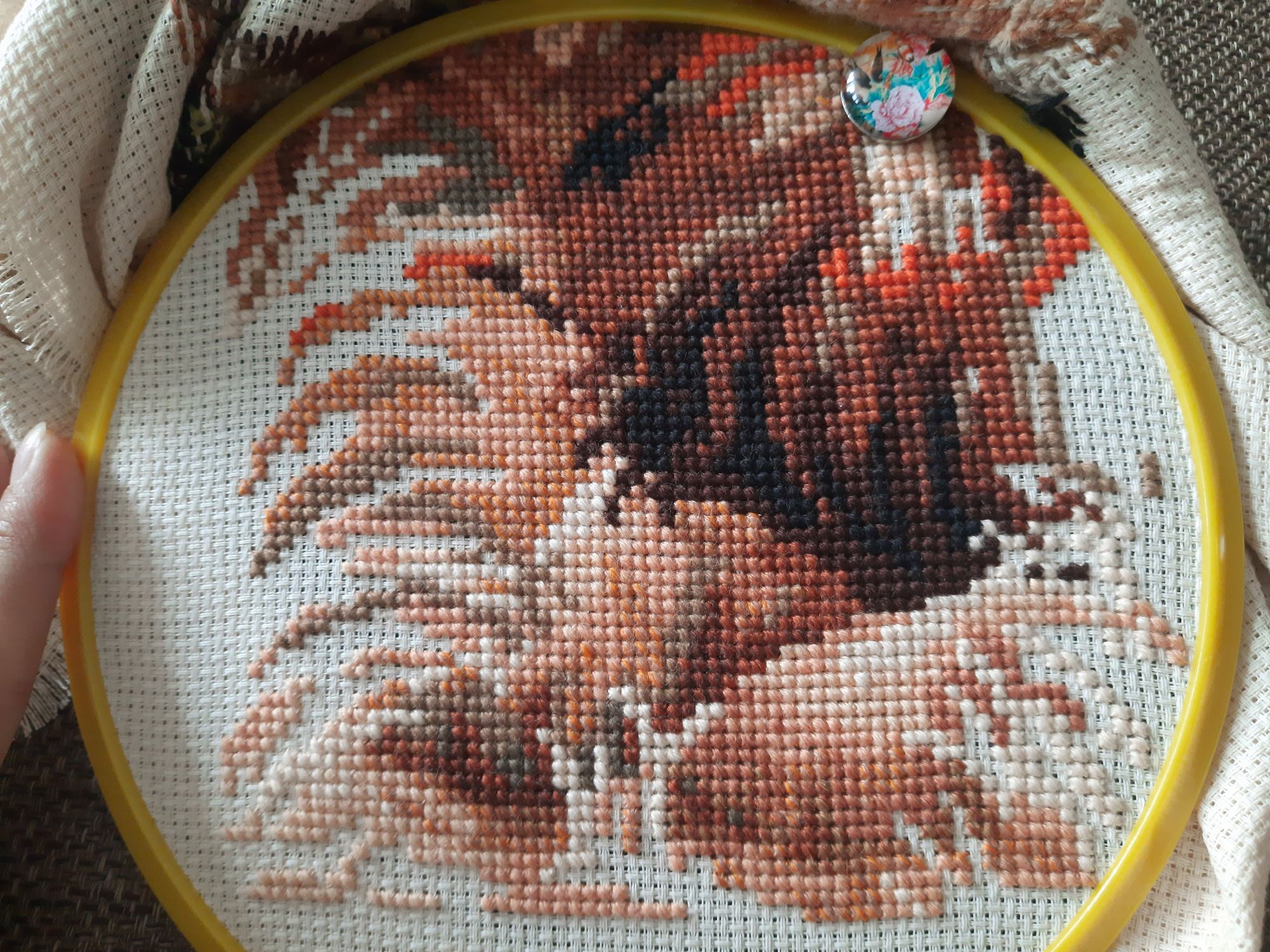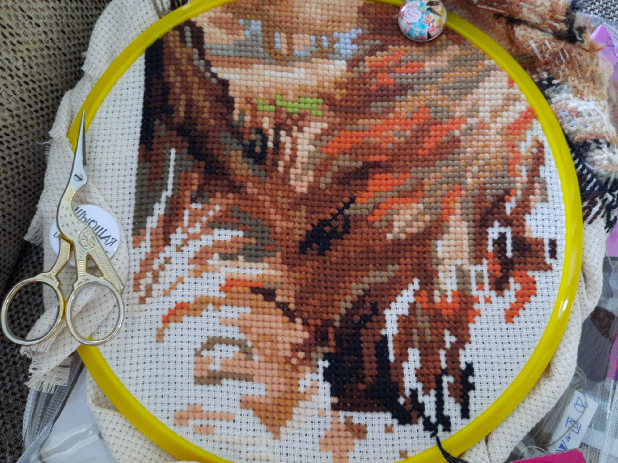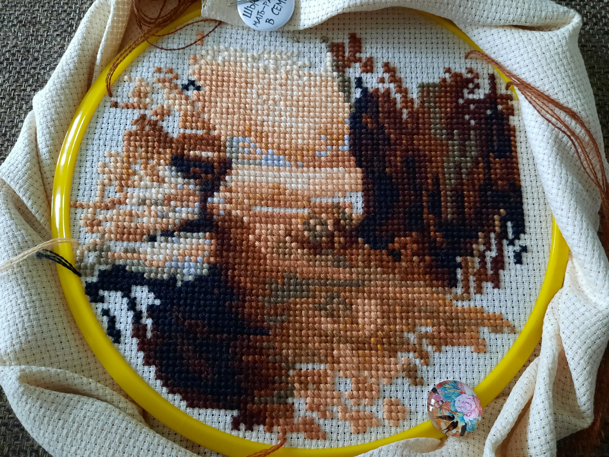 22 мая 2024 Всем привет Объявилась пропажа)) Вышивала понемногу, а сейчас стабильно практически ежедневно. Причина -вышивка на заказ. Спешу ко дню рождения в июле. Кажется одаряемый - лев по гороскопу) Риолис. Царь зверей. Размерчик большой 60х40, но зашивка не полная. Канва крупная, вышивать легко. Ниточки шерсть. С ними у меня проблем нет. Вообще без разницы чем и на чём вышивать)) Цветов 20 и из них меня радует только зелёненький) На данный момент вышито чуть более 30%. Уже есть замечание. Зачем одиночки? Такие яркие большие пятна и практически нет плавного перехода между ними. Зачем тогда впихивать один несчастный крестик Их я не вышиваю, закрываю ближайшим цветом. Охотница, танюша123, Забава_ и 15 других сказали спасибо Поделиться сообщением Ссылка на сообщение