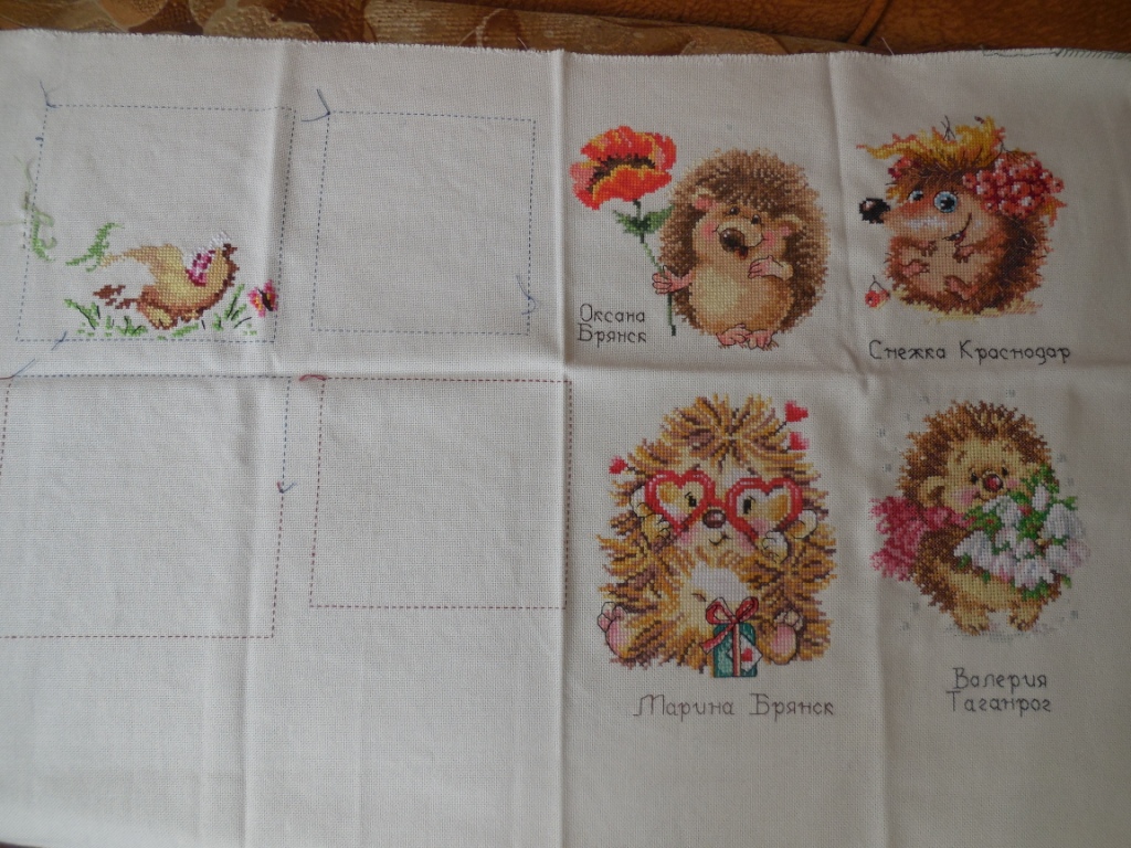 2 сентября 2015 Девочки,фото ежика что вышила Лера. Общий вид. И Танюша,может так вспомнишь какой квадратик мой? Анечка твой квадратик - незаполненный в верхнем ряду. Очень надеюсь, что для ежика хватит места. (если и у тебя накосячила с разметкой. И заранее извини за это). Анна Широкова сказал(а) спасибо Поделиться сообщением Ссылка на сообщение
