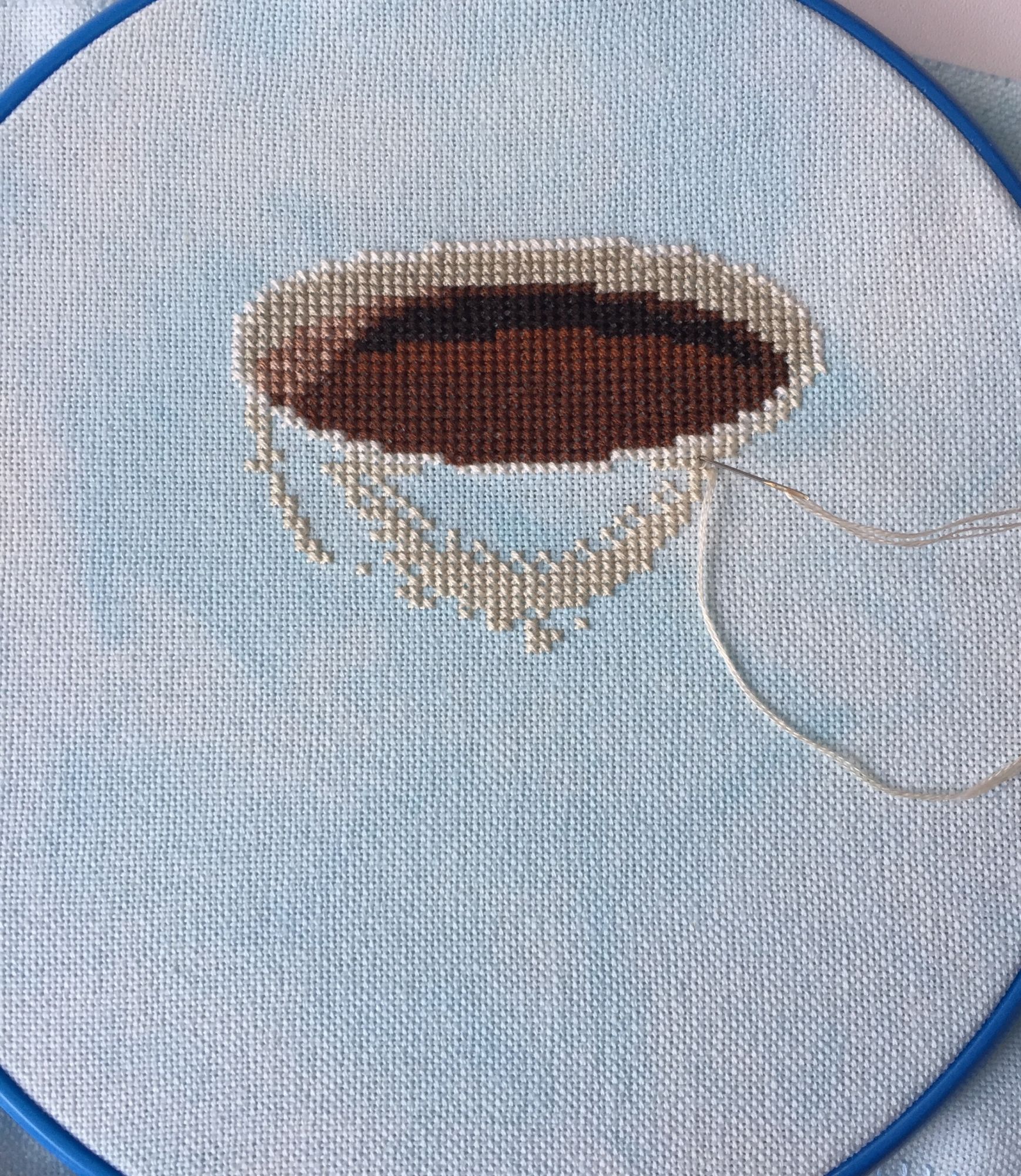 21 мая 2017 Всем воскресный привет)) У нас погода сегодня прекрасная! Солнышко, +25) Настроение отличное! Поэтому делюсь с вами отчётом)) Бабочка, чудесная бабочка готова!)) От процесса и результата одни положительные эмоции)) Спасибо за вдохновение Региночке, которая сподвигла меня на отшив этой красоты)) А вот и следующий процесс)) Миниатюрка от Алёны Кошкиной "Кофе" Давно скачана у меня эта бесплатная схемка, нитки закуплены DMC, основы голубой только не было) И вот решили мы с дечерью попробовать покрасить основу сами)) По ключу она должна быть голубой, хотя многие девочки отшивают этот сюжетик на белой или бежевой канве. Купили мы краску по батику, насмотрелись в Ютюбе мастер-классов и приступили к покраске) Красили отрез Линды от Гаммы. Все очень легко и просто! Результатом, для первого раза, довольны) Вот что получилось) Цвет более точный на фото, где ниточки разложены на основе) Вышивать после равномерки от Цвайгарт на Гамме совсем не понравилось( Крестики капризно ложатся( Как то так вообщем)) Всем хорошего настроения! Пошла бутылки колупать)) вишенка аллая, Okeaн, СветланаЛФ и 25 других сказали спасибо Поделиться сообщением Ссылка на сообщение