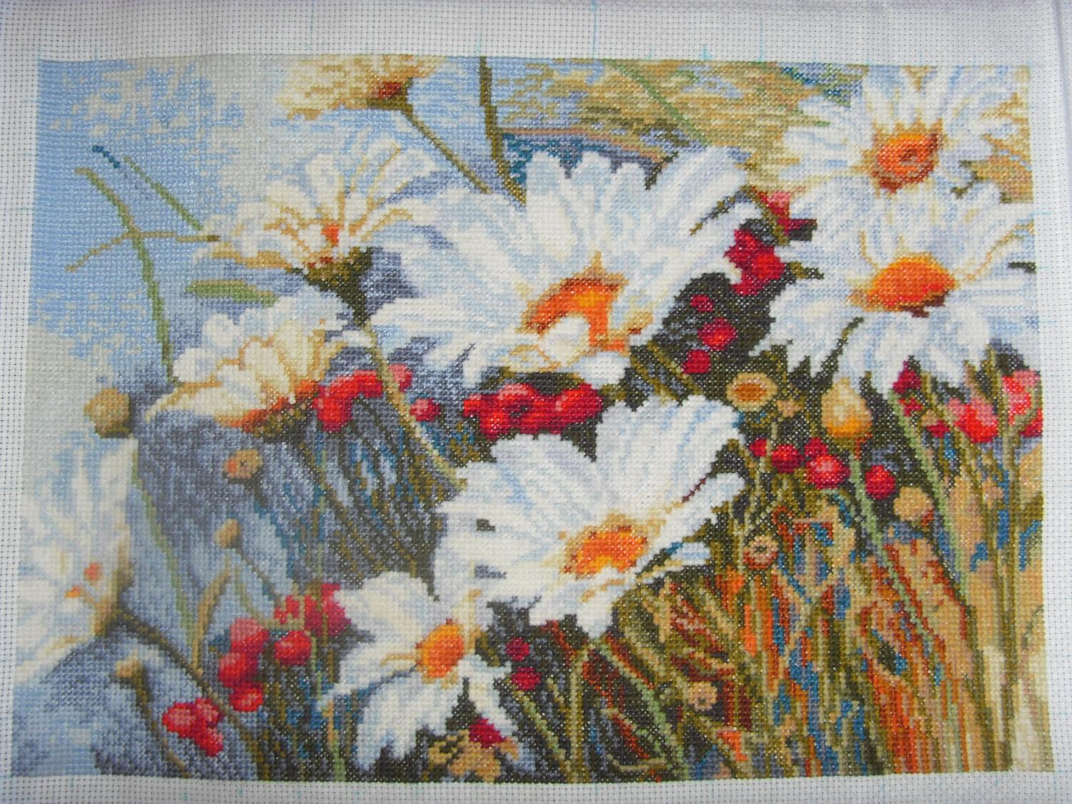 23 октября 2015 Ромашки красивущие,такие теплые и летние С продвижением,очень красиво получается! Ольга Владимировна, знатные покупочки,действительно, хочется всё и сразу вышивать, тяжело что-то одно выбрать!Ромашки подрастают,осенью особенно приятно цветы вышивать...вслед уходящему лету.Я ещё всё стараюсь подольше побыть на даче,самые стойкие розы ещё цветут,несмотря на заморозки.Конечно,их на ночь пленкой накрываю-не поднимается рука их обрезать! Мария, Светлана, В ромашках осталось не так много, хочется скорее результат , но быстрее почему-то не получается Я розы на даче не сажаю, осенью не получается туда ездить(долго идти пешком). А за розами надо следить. sheyla55 сказал(а) спасибо Поделиться сообщением Ссылка на сообщение