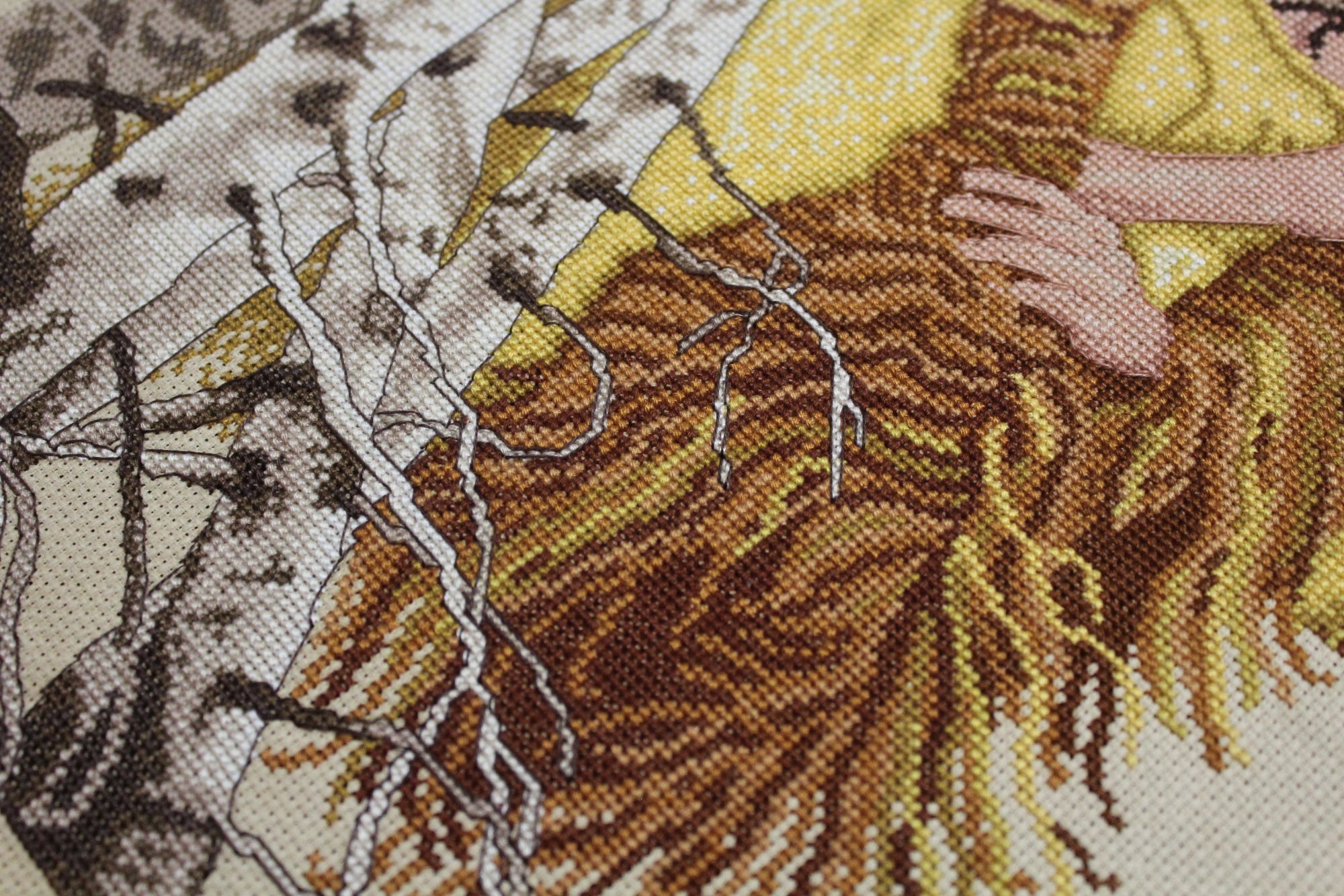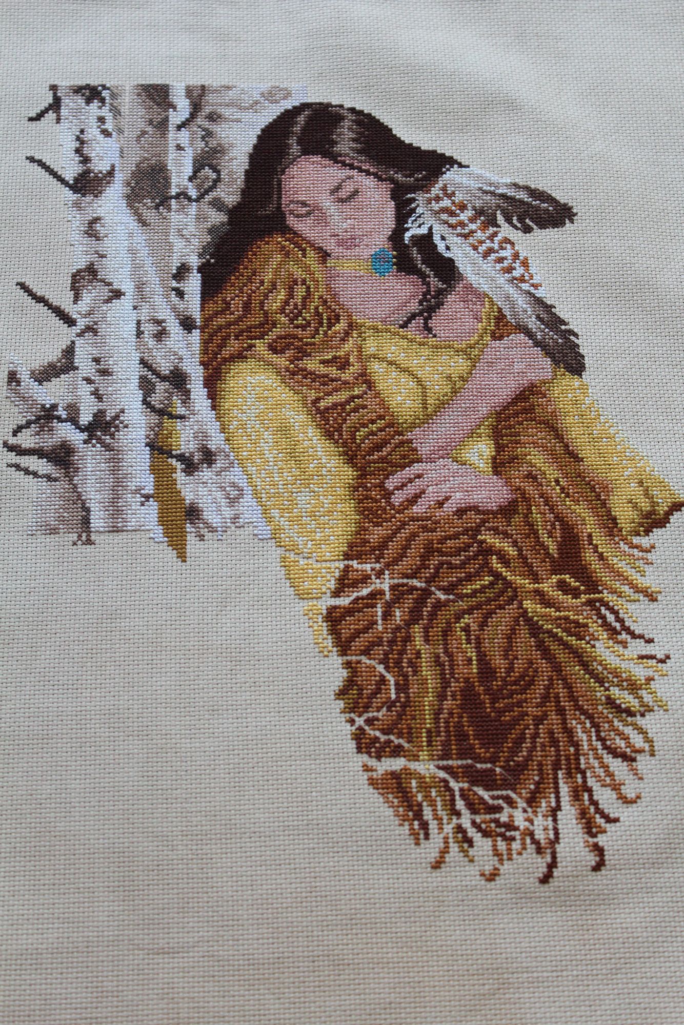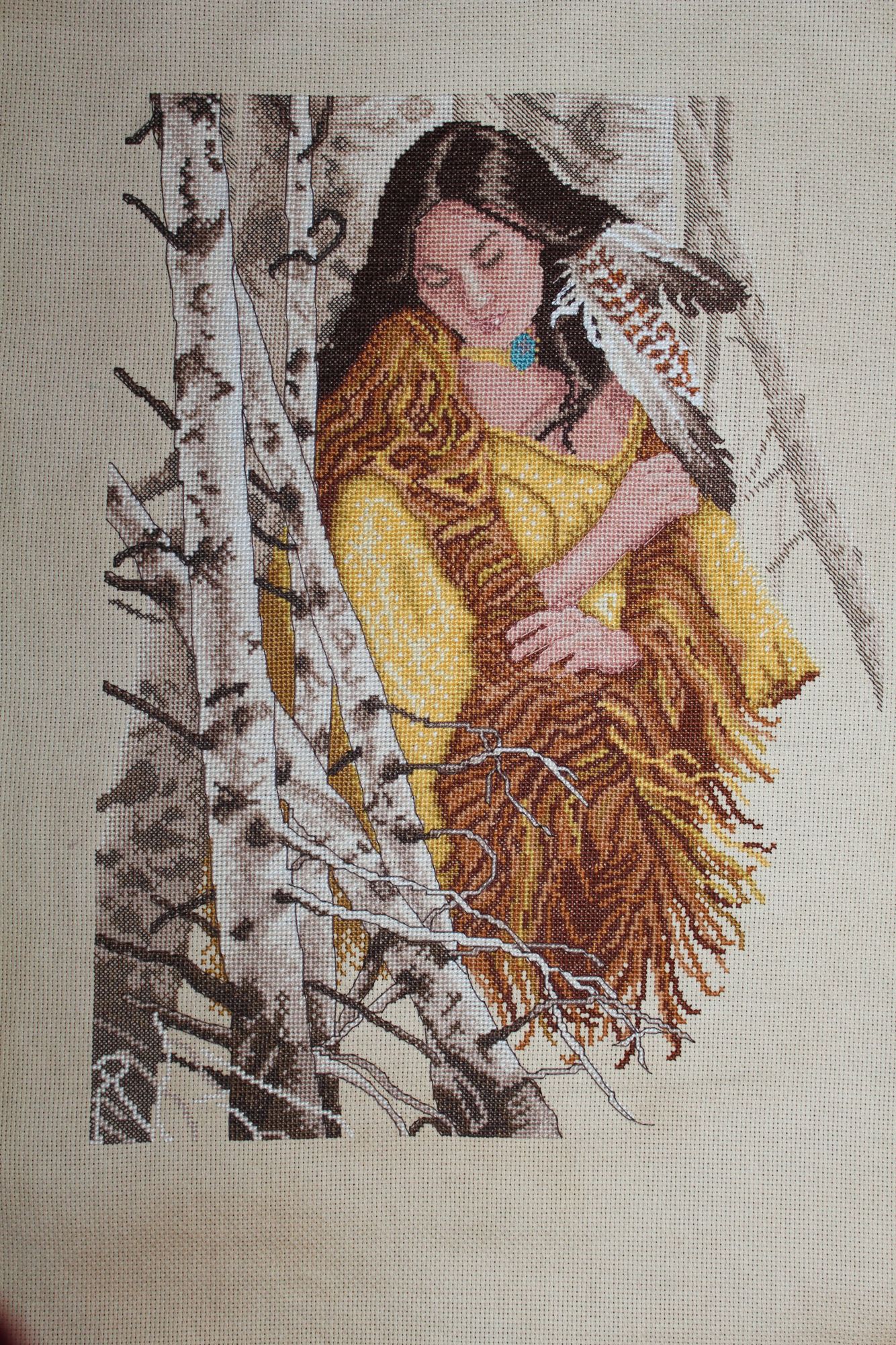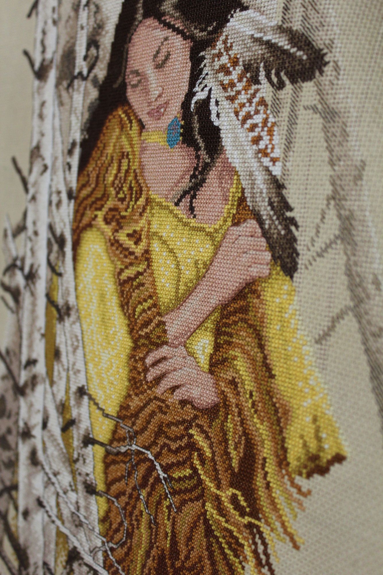 14 ноября 2019 Всем привет! Наконец-то дошли руки до этой девушки, остатки набора уже давным-давно отдала мне Лариса. Но , так как поставила себе задачу вышить её по имеющимся у меня остаткам ниток или брать из невышитых наборов, то процесс подбора сильно растянулся. В Мадейре много нашла ниточек, тон в тон, из Гаммы, ДМЦ,ДИМ, некоторые не нашла как в оригинале, поэтому вышивала на свой страх и риск. Пробовала сначала кусочек берёз-вроде неплохо; волосы- нормально, лицо- тоже вроде без плохих переходов, одежду-тоже неплохо. Так и не смогла купить канву, то цена большая на равномерку, то цвета нет такого, какой на обложке заявлен! В итоге взяла Аиду 16, покрасила кофе и решила вышивать. Сначала хотела сравнять внизу, т.к. девушка-призрак не очень мне понравилась , но процесс оказался таким интересным, что с упоением закончила по схеме. Глядя на фото, мне кажется, что и без бэка смотрится хорошо, но всё же сделала на берёзах,руках, лице, остальной не делала. На берёзах он жутко- ступенчатый, я сгладила. Результат нравится. Новый процесс закончен Bucilla 43730. Путешественница, nastygera, ОльгаТольна и 40 других сказали спасибо Поделиться сообщением Ссылка на сообщение