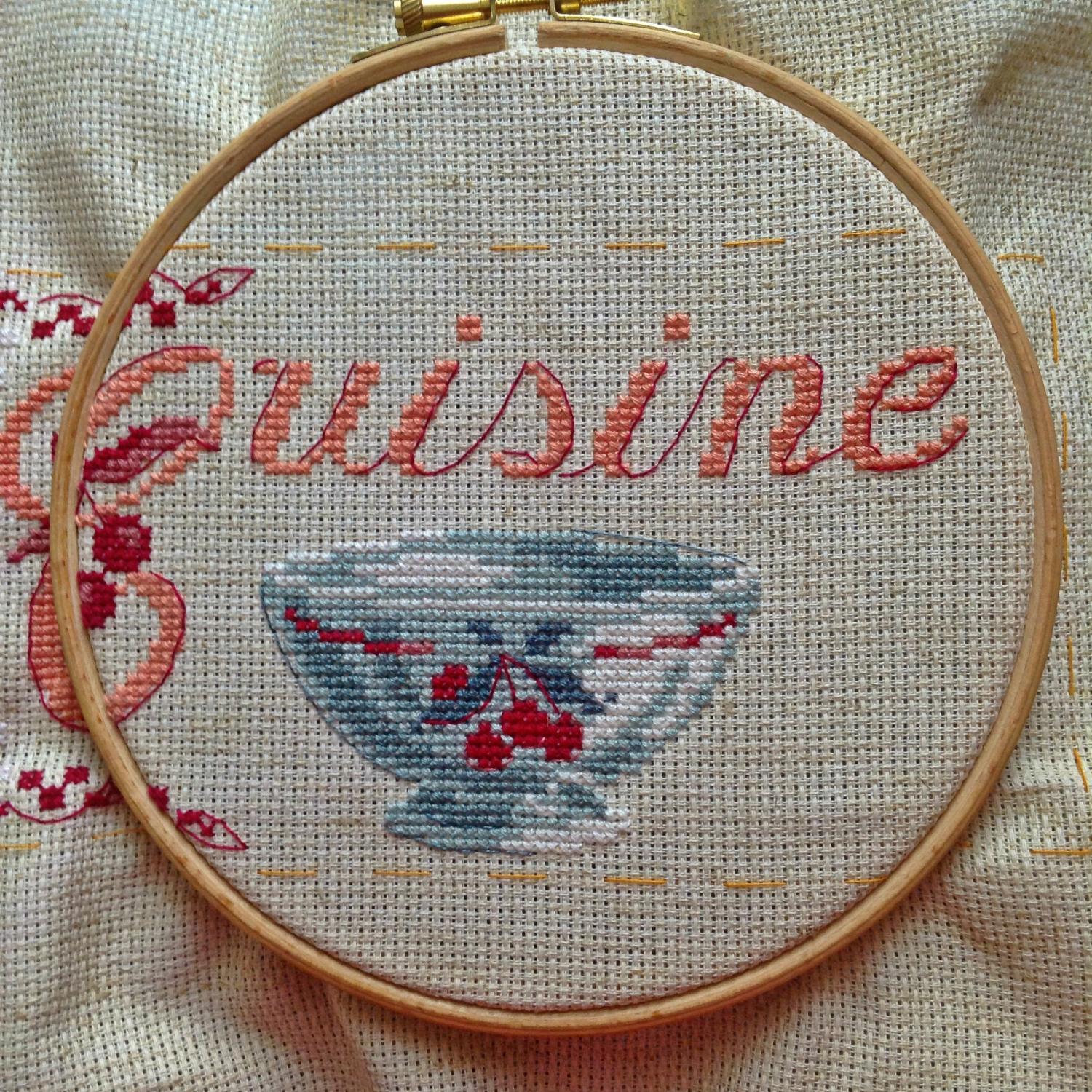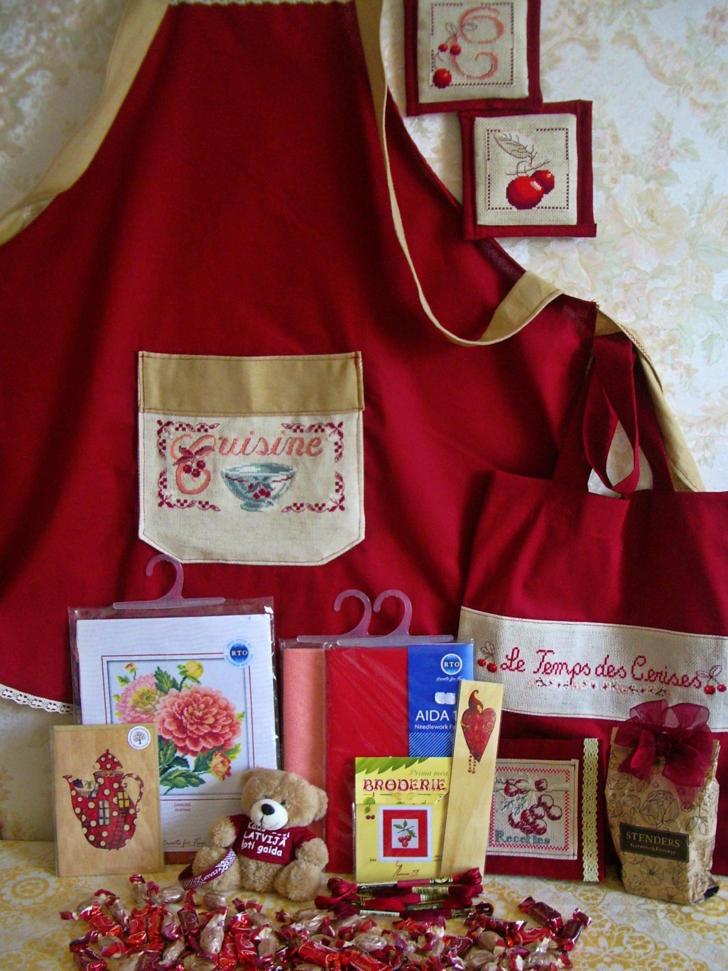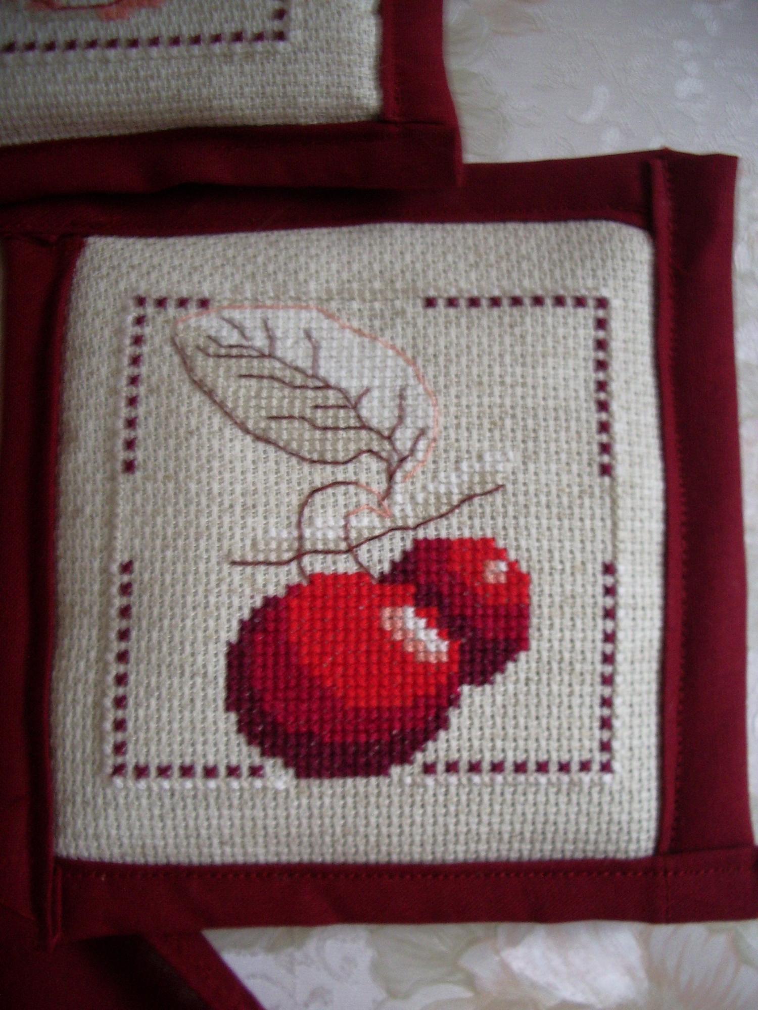 21 сентября 2015 Всем привет! Я к вам с вишневым отчетом! Вот и добрался мой подарок в игре "Осенний сюрприз 2015 - Магия цвета" до замечательной Наташи (FEDOR63). Теперь можно показать процесс для гаечки. Копировать большой текст сюда не буду, поэтому рассказ о том, как создавался этот сюрприз, читайте в теме игры. ))) А вот и фото сюрприза целиком. Рукодельная часть - фартук, мешок-сумка, блокнот для рецептов и две прихватки. И вместе со всякими вкусностями и полезностями. Сюжеты взяла из нескольких выпусков французского журнала Creation Point de Croix. Нитки все собраны по ключу, DMC, но в некоторых местах пришлось немного поменять. Общая подготовка ко всей вышивке. Первым для пробы пера вышивала сюжетик, который пошел на обложку блокнота. Слегка изменен цвет бэка, чтобы потом согласовать по тонам с сюжетом на кармашке фартука. Слово Recettes (рецепты) добавляла уже не по схеме в самом-самом конце, когда убедилась, что этот сюжет точно пойдет на обложку. Готовое изделие. Следующим вышивала кармашек для фартука. Пришлось изменить немного цвет слова Cuisine (кухня), так как в оригинале он вышивается одним из оттенков белого, который бы слился с цветом канвы. И готовый кармашек на фартуке. Далее - надпись Le temps des cerises (время вишни) для мешочка. Опять заменила цвет фразы. И готовый мешочек. Теперь прихватки - первая вышита по целому фрагменту схемы, вторую делала из кусочка фрагмента, который вышивается петитом. Взяла только вишенки на веточке. И опять замена белого на "оттенок пенки с вишневого варенья". )) И готовые прихватки. Спасибо за внимание! Удачного дня! вишенка аллая, Маса, svetikx и 13 других сказали спасибо Поделиться сообщением Ссылка на сообщение