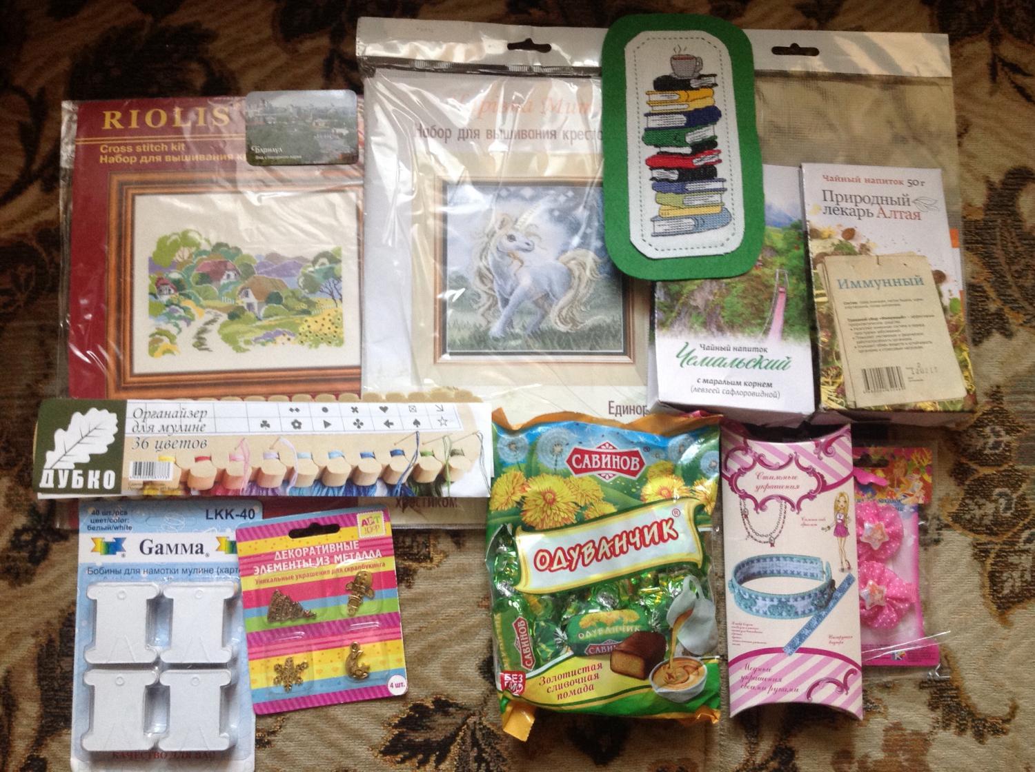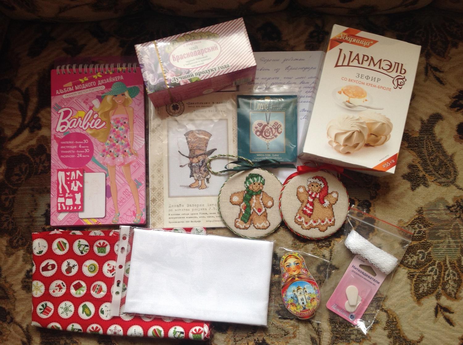 19 ноября 2015 Девочки, привет! Ужас какой-то, все до своей темы не доберусь: то гости, то день рожденья Латвии. ))) Постараюсь начать серию своих отчетов сегодня. В первой части покажу все подарочки, которые получила за последние полтора месяца, в одном месте. Итак, по порядку. 1. Сюрприз на Хеллоуин (аха, так давно я не отчитывалась...) Танюша (Znichka_ilicha) прислала мне восхитительный подарок из Минска. В подарке: подушка с кокетливой ведьмочкой (очень люблю эту подушку), игрушка с Мистером Тыквом (самой обаятельной мумией в мире), схема от Екатерины Графенко, тканюшки, ниточки, вкусные шоколадки и книжечка-магнитик. 2. Потом в Лавке желаний мне пришёл партизан от Светы (svetikx) из Израиля. От Светы ко мне добрались два очень хочушных пейзажа от ЛукаСа, будет у меня диптих с домиками. А также набор для рисования, пряжа (для уплотнения посылки, но очень даже хорошо идёт в дело), просто годовой запас вкусняшек, чёрная грязь, открытка, очень симпатичный магнитик и, самое главное, рукодельные игрушки с котятами. ))) 3. Одновременно ко мне добрались оба основных сюрприза в Лавке желаний. В третьей группе сюрприз от Зины (Пикусенок). В в нем: набор с летней деревенькой от Риолис и давно хочушный маленький единорожек, органайзер Дубко, Бобинка, шарфики, много полезных чаёв, очень вкусные конфеты и приятности для сестренки. Браслетик она почти закончила, очень старательно вышивала, если будет возможность сфотографировать, покажу. ))) И рукодельная закладочка. Пользуюсь с большим удовольствием! В четвёртой группе я получила сюрприз от Лены (IDEN): джентельмена от Неокрафта и сердечко от МиллХилл (мои первые наборы от этих производителей), тканюшки, кружева, нитковдеватели, магнитик, очень вкусный зефир и чай, а сестренке достался целый альбом модного дизайнера. Рукодельная часть подарка сразила наповал: очень красивые и просто нвероятно красиво оформленные пряничные человечки в виде игрушек-пинкипов. ))) 4. И в заключение я подучила две вкуснющие конфетки. Конфетка раз - это набор для вышивания лошадки-салфетницы и мишка от Саши (Gala83). Конфетка два - это иероглиф от Панны и новогодний сов от Маши (Antarktida). Таня, Света, Зина, Лена, Саша и Маша - ещё раз спасибо вам огромное!!! Завтра выложу свои ответные конфетки, так что заглядывайте в конфетную тему. И завтра постараюсь выложить следующую часть отчета. Всем удачного дня! Пикусёнок, Любушка1985, Сметанка и 11 других сказали спасибо Поделиться сообщением Ссылка на сообщение