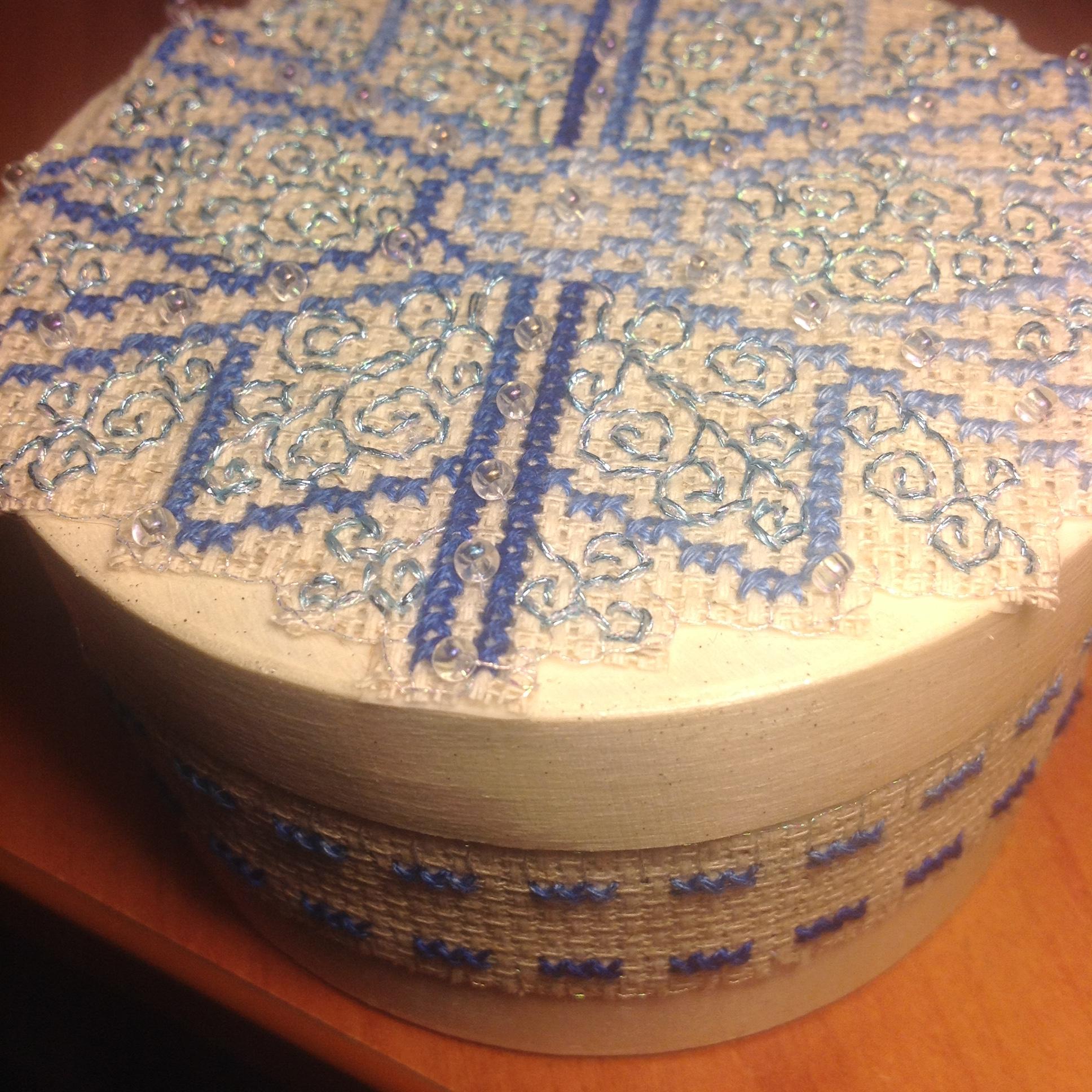 24 ноября 2015 Всем привет! Не дружит со мной техника, сколько не пыталась следующую часть отчета выложить, все время что-то идет не так... Надеюсь, что эта попытка будет удачной. )) Итак, сегодня много писать не буду, зато будет много фотографий процессов. Новые два процесса выложу скорее всего завтра, так как еще не было возможности их сфотографировать. Конфетки тоже объявлены, розыгрыш в соответствующей теме в следующий понедельник. Начнем с темы давно прошедшего Хеллоуина. Мой сюрприз на Хеллоуин Часть первая: книжечка-игольница-органайзер с ведьмочкой по схеме Stitchie Witchie от Brooke's Books. Цвета все строго по ключу. Часть вторая: маячок на ножницы с тыквочками. Схема Halloween Fob от The Sweetheart Tree. Здесь цвета сделала поярче, чем в оригинале. Меланжевую ниточку делала из бленда зеленого и оранжевого. Вместо пайетки - крупный черный бисер. И вся красота в сборе. ))) В перерывах был вышит и собран фонарик в Авантюре. Еще один сюрпризный процесс, который уже можно показать... Рукоделка в третьей Лавке желаний Снежинка на шкатулке по схеме из местного журнала Rokdarbu vacelite, но мне кажется, что и в русскоязычных изданиях эта схема перепечатывалась. Взяла только схему, цвета и нитки подбирала сама. Активно использовала меланж, металлик и прозрачно-перламутровый бисер для создания эффекта морозного узора. Схема для маячка на ножницы - уже моя авторская, создавала в дополнение к снежинке по мотивам. Сережки выполняла вышивкой бисером, так как решила попробовать взять канву в основу. Собирала за шов, выполненный бэком, как и в случае с "кривульками". Размер что-то около 5х5 крестиков. Выводы по поводу металликов от ДМС: металлики из их основной линейки мне не нраятся, так как они довльно быстро начинают расслаиваться на составляющие, без разницы, насколько короткая ниточка в процессе. Нитки из серии с жемчужным эффектом в этом плане понравились намного больше, так как они отлично выдерживают любой процесс, разве что одна обычная ниточка (из шести) может разделиться еще на две. Каждая по отдельности, кстати, тоже послушно ведет себя в работе, не рвется и не мохрится. Обметывала как раз такой одной ниточкой. Минус: очень бледные тона, поэтому приходится или подбирать темную канву, или делать блэнды. Продвижения в Зеленой даме Весне Для тех, кто не отслеживает мои продвижения в дуэли, выложу сюда пару фотографий того, что есть на данный момент. Уже около месяца назад была закончена первая страница. И начата новая. ))) А теперь, можно сказать, основная часть отчета. ))) Робинада (та-да-да-дам!) Робин 12 Очень много вышитого. Мне остались только два сюжета и свой довести до ума, когда вернется. Снеговик для Иры (irisha-z83). Игрушка с птичкой для Лены (dolli7). Октябрьские мышки для Наташи (натулёк). Игрушка с мишкой для Наташи (Дикая белочка). Девочки-модераторы, так как это отдельный наборчик, сделайте, пожалуйста, гаечку! Dimensions 08906 )) Дракошка для Лены (musya). Ангелочек для Тани (Smetanka_ya). Чашка для Алены (Бондаренко). Еще мой 12-й робин поплнился еще одной пироженкой (для гаечки). Наташе спасибо! Робин 16 Недавно стартовал новый робин, уже есть что в нем показать. Я играю с вышивкой Sewing Room от SODA Cross stitch (SO-G30). Канва белая Аида 14, нитки ДМС по ключу. Буду делать триптих. Заведите гаечку, пожалуйта! )) Подготовка (спасибо Наташе Hata за фотографии). И первый вышитый Наташей кусочек. Спасибо! )) А для Лены (B.unny) в этом робин