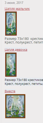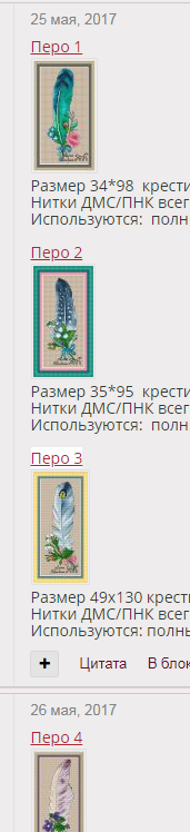 26 мая 2018 Victoria Plum и бабочка Размер 148х148 крестиков, 39 цветов из них 4 бленда, ДМС и ПНК. Крест, 3/4 крест, полукрест, фр узелок, счетный бэк Victoria Plum и мышка Размер 148х148 крестиков, 47 цветов из них 4 бленда, ДМС и ПНК. Крест, 3/4 крест, фр узелок, счетный бэк Victoria Plum и крошечный амарант (огненный вьюрок) Размер 148х148 крестиков, 47 цветов из них 2 бленда, ДМС и ПНК Крест, 3/4 крест, фр узелок, счетный бэк Victoria Plum пишет письмо Размер 148х148 крестиков, 44 цвета из них 4 бленда, ДМС и ПНК. Крест, 3/4 крест, полукрест, фр узелок, счетный бэк Поделиться сообщением Ссылка на сообщение