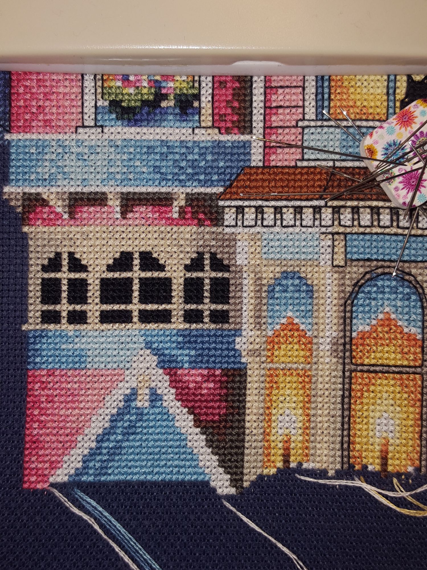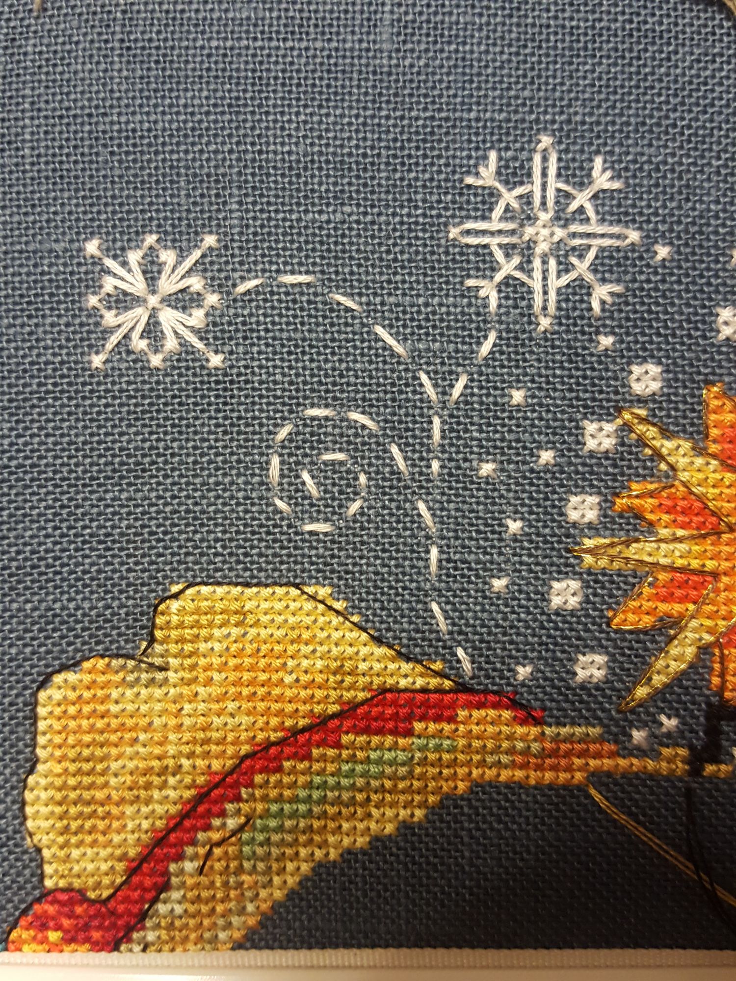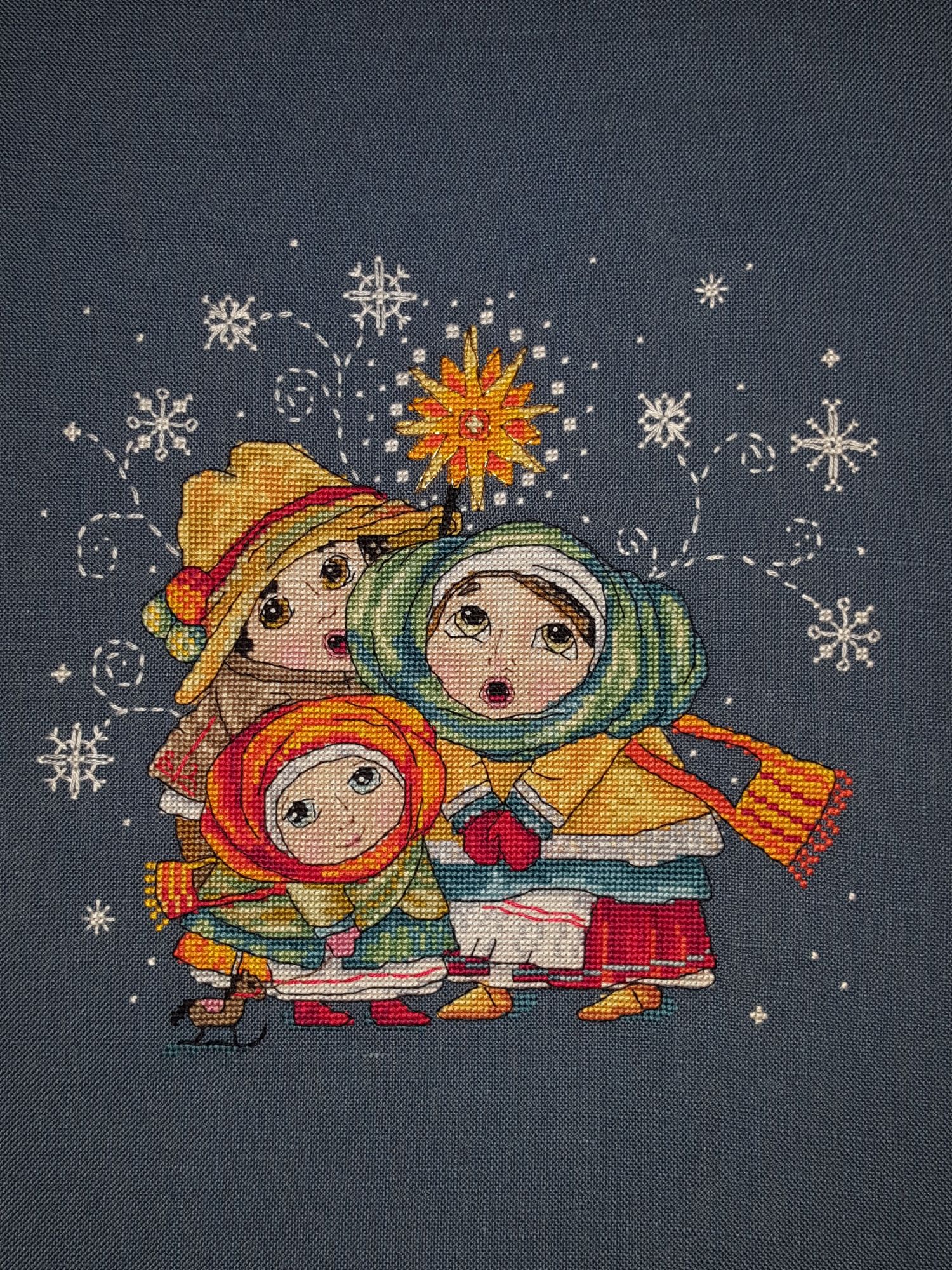 21 января 2017 Всем привет!!! Хочу всех поздравить с праздниками! Я так много всего пропустила, что даже с мыслями толком собраться не могу Короче, всем кто ещё хоть иногда заглядывает на огонёк, хочу пожелать в Новом Году чудес! Обязательно думайте о хорошем, о позитивном и добро будет к вам буквально само приклеиваться!! Очень прошу прощения, что не захожу в ваши темки...да и в свою не захожу Ко всем хочу заглянуть, но всё время мешают две вещи: то одно то другое Вообще времени стало катастрофически мало, ничегошеньки не успеваю сделать! Работы навалилось куча, хоть я и рада этому очень, но вышивать некогда=)) После работы еду домой и мечтаю...ща как сяду..как увышиваюсь!!! и пока ужин...посуда....погулять обязательно надо ( муж подарил на новый год фитнес-трекер, теперь приходится ходить=)))))...а когда домой приходим уже и спать пора, режим всё-таки У нас пару недель погода была просто чудо, снежка навалило, всё было белоснежно-сказочное!!!!! я от такой погоды просто без ума!! Так мы гуляли каждую свободную минуту!!! Потом приводили домой снеговичка вместо собачки=) А на выходных...то к врачу, то узи, то анализы....то ещё какая-то лабуда!!!! Когда появляется хоть пару часиков свободных, сразу бросаюсь вышивать как с голодного края чесслово Может попозже будет времени вагон, я всё перечитаю!...хотя в декрет меня никто отпускать так и не собирается=) Сижу перед приёмом играюсь креслом..то вверх, то вниз...пытаюсь пузо куда-то умостить=))) Ещё из невышивальных новостей это долгожданный отпуск!!! на следующих выходных с мужем и родителями собираемся поехать на Западную Украину на лыжики=))) ну ясен пень, мне в этом году лыжиков не видать, но хоть в снежку поваляюсь!!! там на Буковели такая зимняя красота, просто слов нет!!! хочухочухочу!!! у нас в центральной части страны такой погоды почти не видать Правда, есть одно но... прогноз погоды обещает +4 и дождь ну и ладно..поваляюсь тогда в лужах Накупила себе наборчиков дим игрушек на пластиковой канве, будет мне не скучно=)) Если вдруг кому интересно, ожидаем мы мальчика ( не помню говорила уже или нет) так вот недавно у меня было целое событие!! Этот маленький мальчик наконец позволил мне попить кофе!!!!!!!!!! Те кто жить без кофе не могут, меня поймут... полгода почти этот человечек издевался над мамой и каким-то образом превращал вкуснейший кофе в несъедобную дрянь И тут вдруг проходя в очередной раз где-то мимо кофейни, я понимаю что принюхиваюсь и меня не тошнит!!! Прискакала домой, с трудом уговорила мужа сварить кофе..и о счастье!!!!!! вкусно!!! я и пиала и визжала, и танцевала с этой чашкой и приподпрыгивала это надо было видеть =))) муж просто валялся вот оно, говорит, настоящее счастье: сделай человеку плохо, а потом верни как было В общем мой мир полон событий, так что пора переходить уже к вышивальному.. мне конечно очень стыдно, но я уже толком и не помню что и когда я вам показывала Вышивалось всё по-немногу, очень быстро мне как-то надоедает..так что я постоянно меня один процесс на другой Начнём с последнего=) Dimensions 13666, Викторианское очарование (Victorian Charm) Показывала дааавным давно.. я его периодически достаю и колупаю, но как-то очень небыстро продвигается. Он мне не перестал нравится, и не перестал вызывать поросячий восторг, я по-прежнему сижу и мечтаю над ним, летая в сиреневые облака! НО.. эта стеклянная канва меня откровенно бесит! Я л