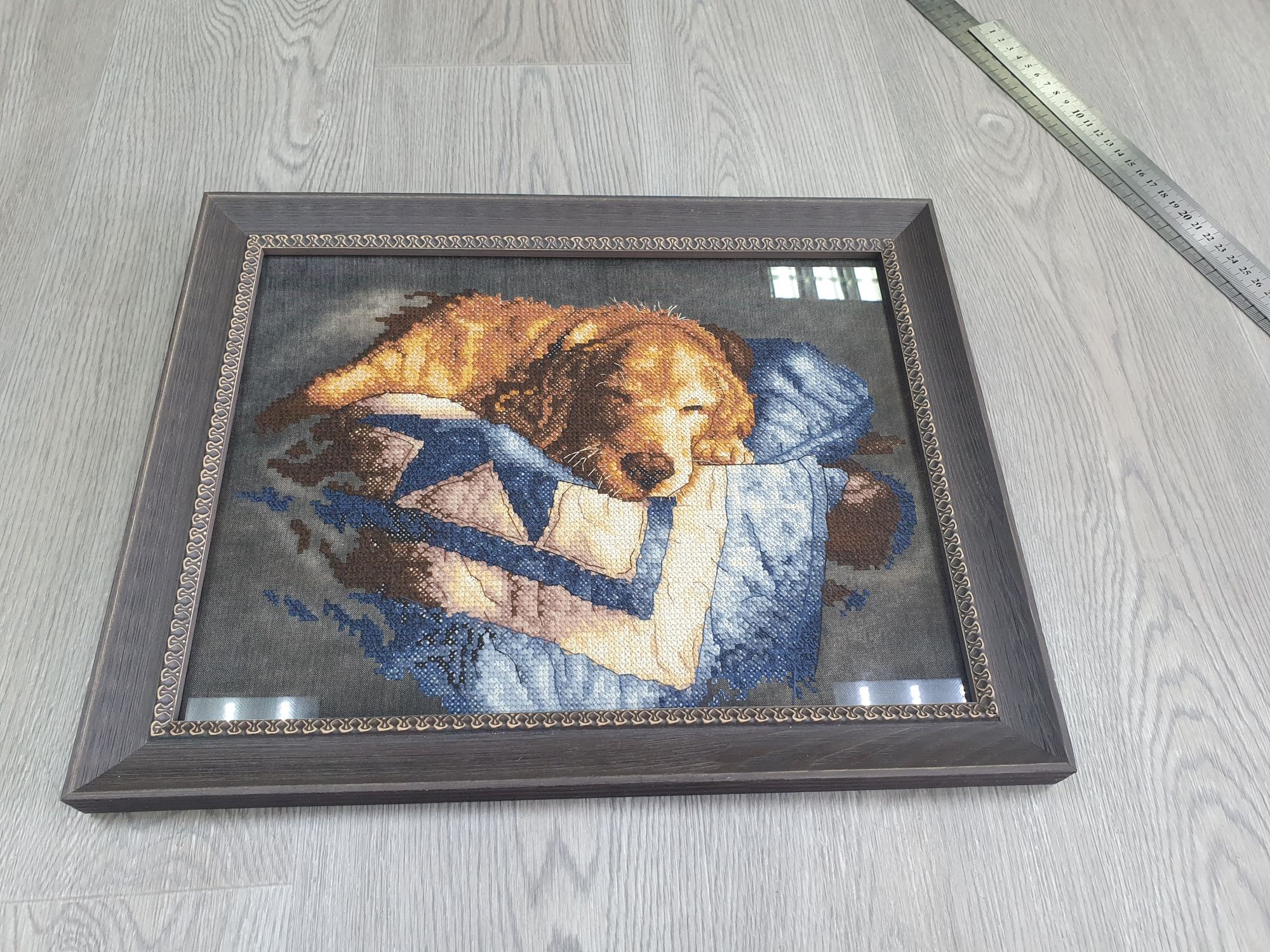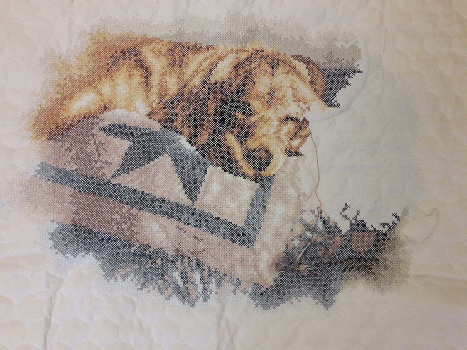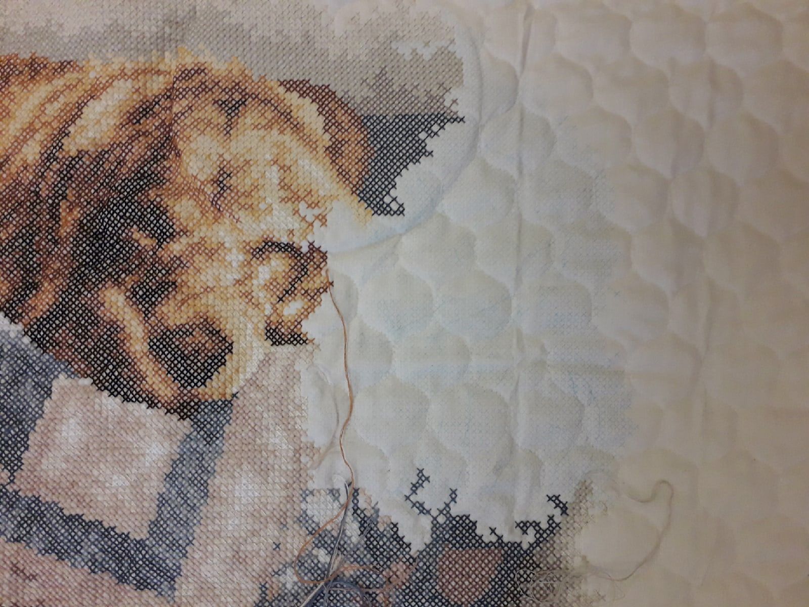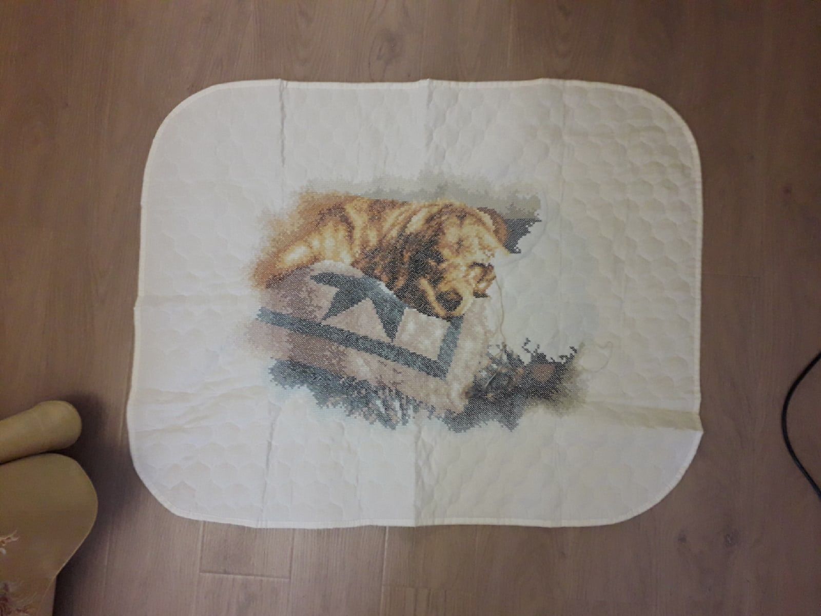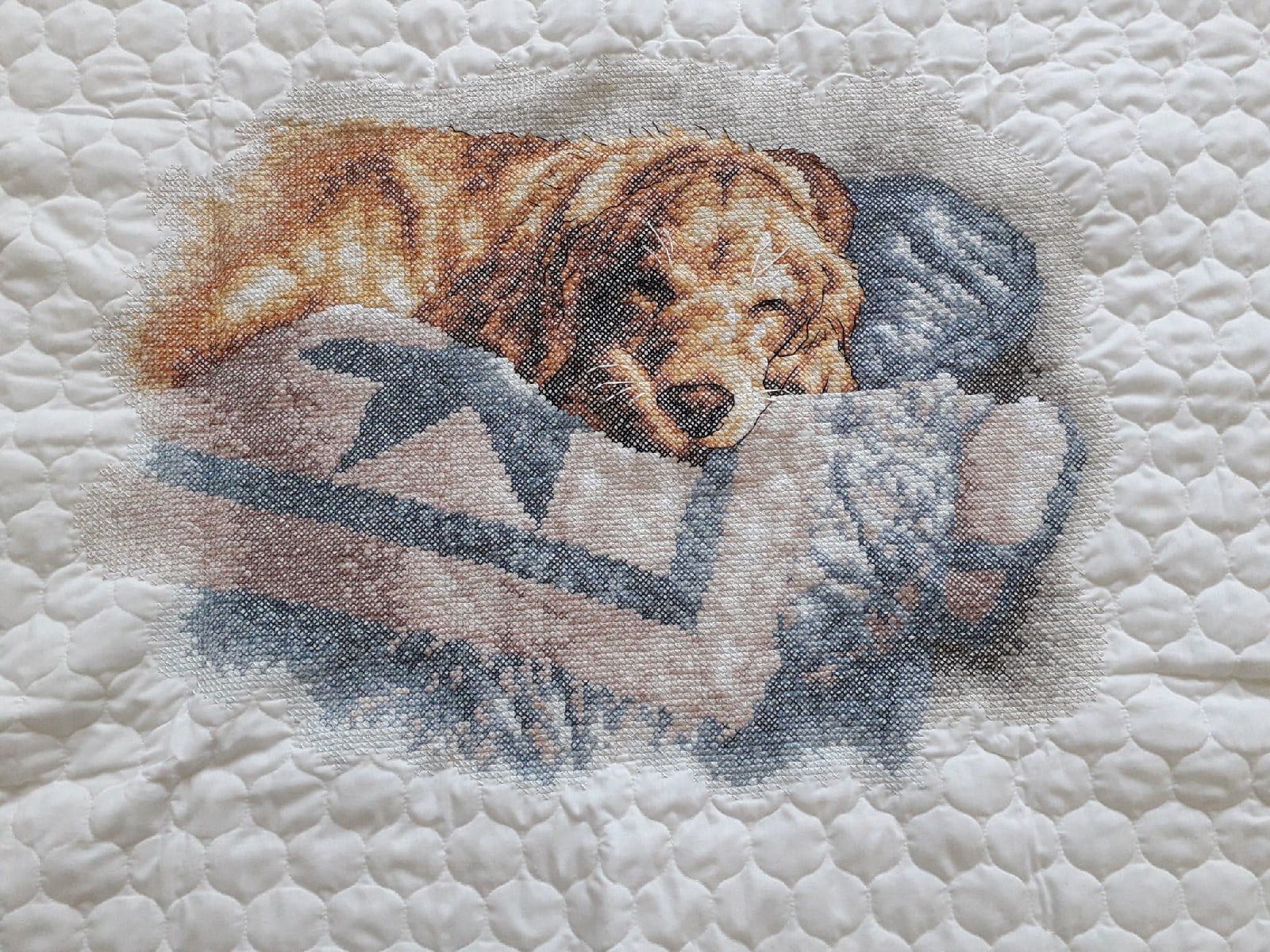 18 февраля 2023 Детское одеяло от Dimensions. Печатный крест. Тот же дизайн что и у картиный печатным крестом. Видимо от того что долго лежал, ждал пока его купят, краска на крестиках рассохлась и от неосторожного движения стералась. В итоге некоторые крестики на ощупь вышивала. Поделиться сообщением Ссылка на сообщение