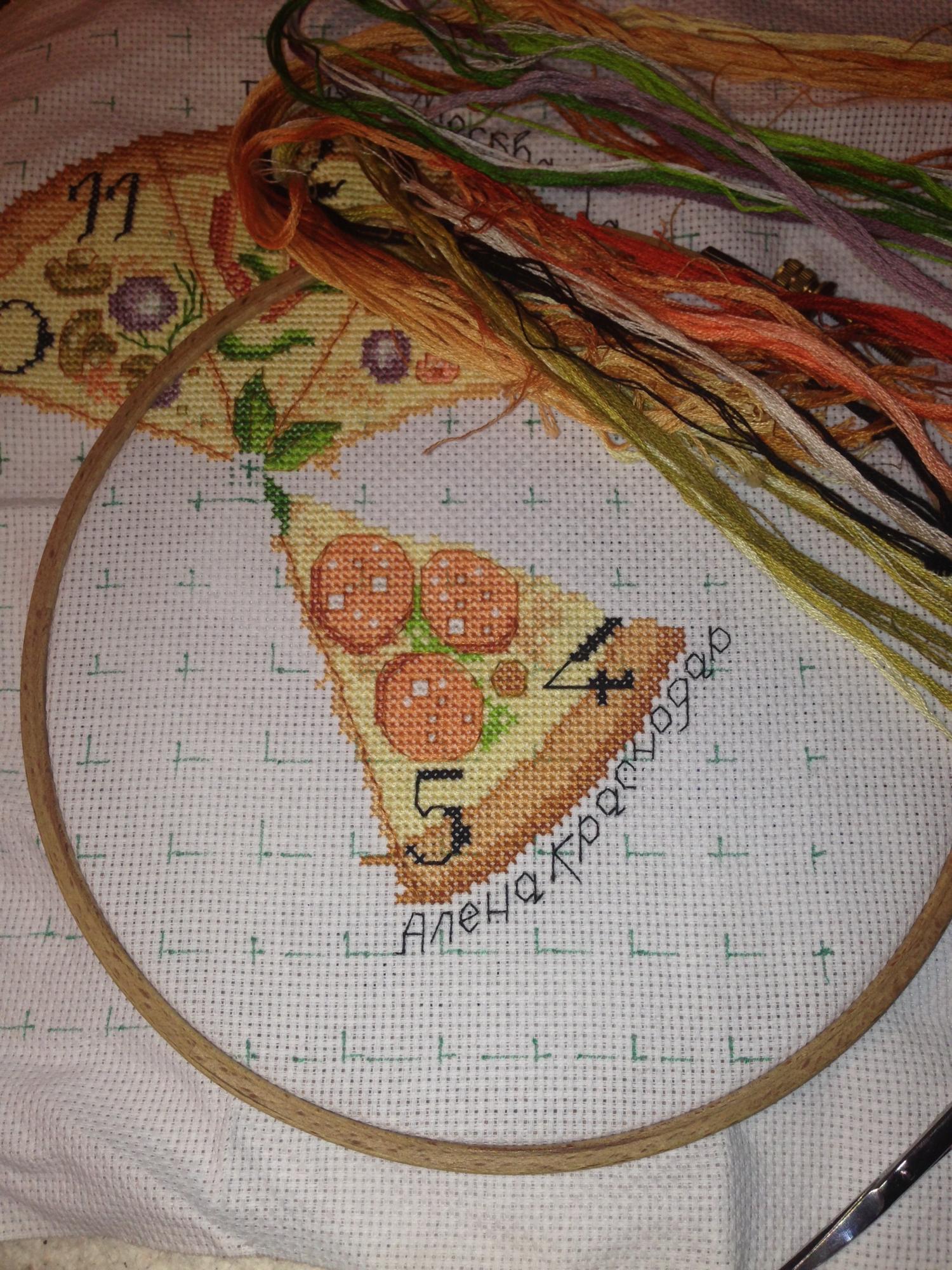 16 октября 2015 Девочки, Оксана!!))) Принимайте ещё один аппетитный кусочек пиццы!)) У нас такая называется "4 мяса"!!))) Мммм, я слышу её запах!)) Что-то я с подписью мудрила, мудрила и вот, что намудрила.... Мне не особо она нравится, но это лучшее, что получилось... Я уже хотела вместо города написать Кубань!))) Девчат, советуйте... Как быть? Так оставить или помудрить ещё?? А, вообще, сам кусок вышила и не заметила как...!!!! Теперь точно знаю, что РТО люблю!) Marina_19, натулёк, Meri Poppins и 5 других сказали спасибо Поделиться сообщением Ссылка на сообщение